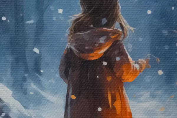 Bild Mädchen im nächtlichen Winterwald zwischen Bäumen und Laternen Nr r41277