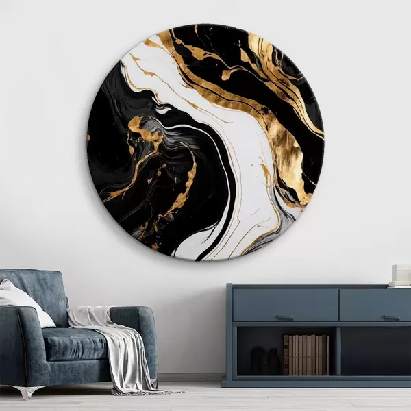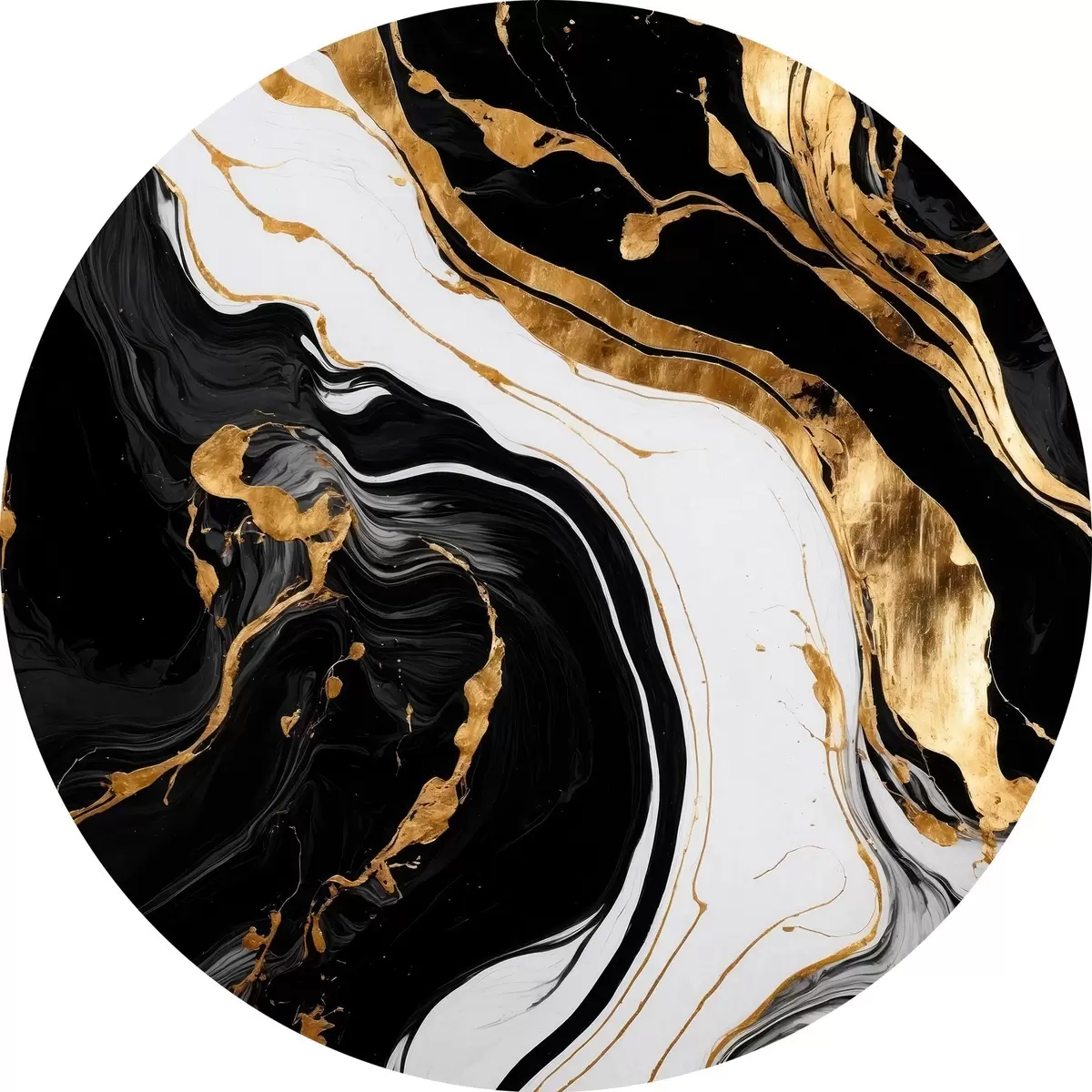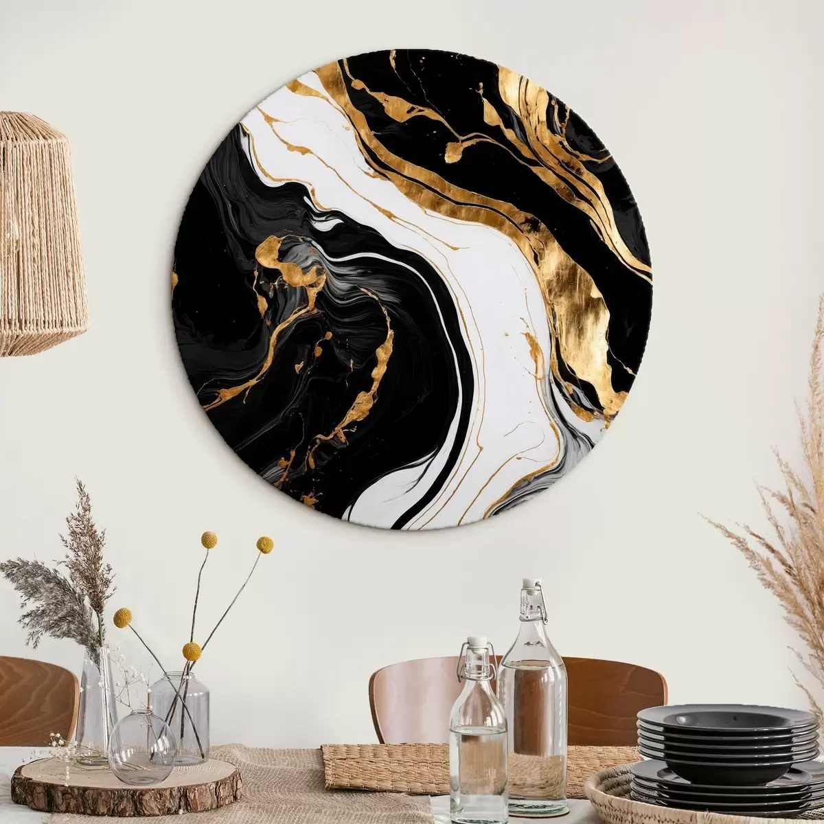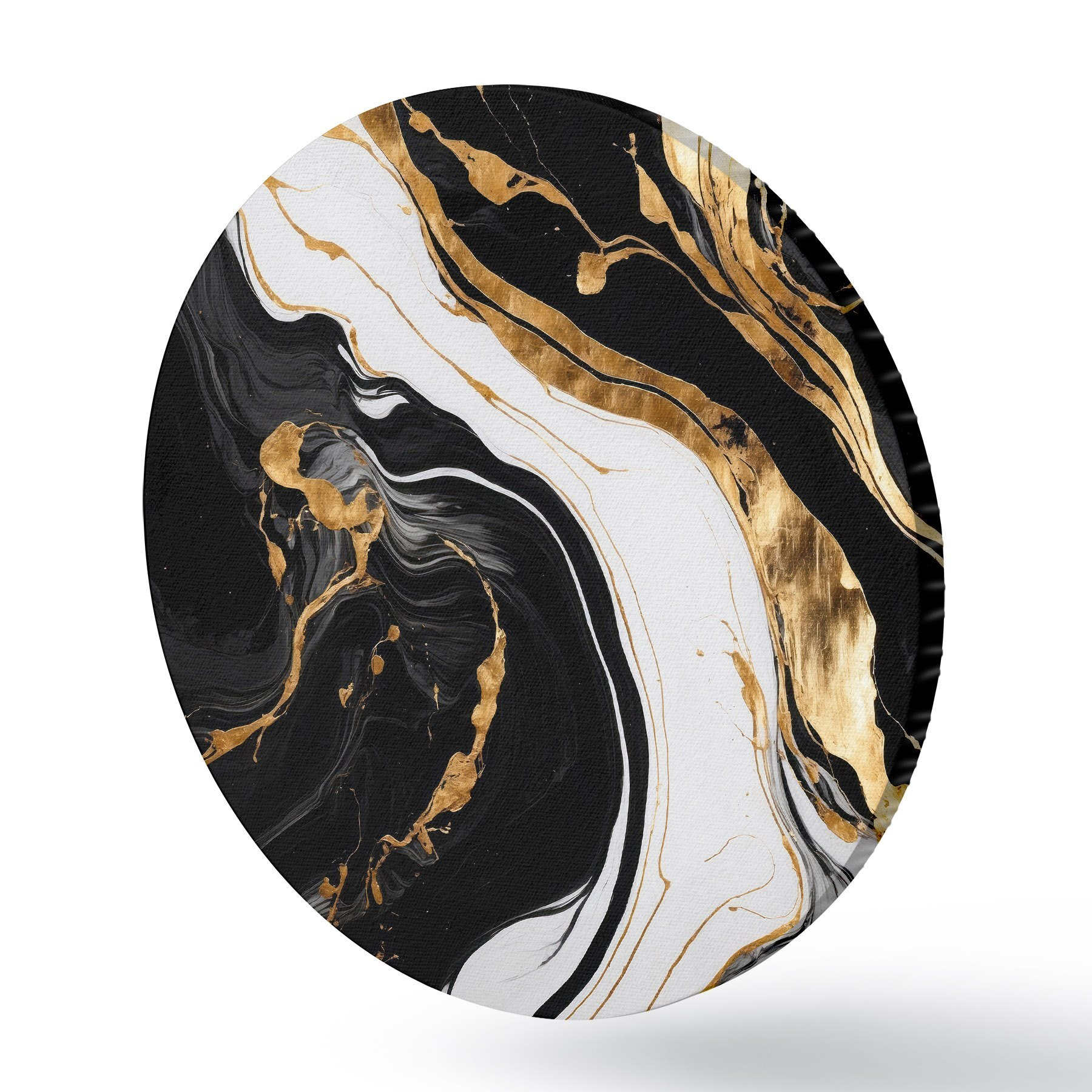 Runde Gemälde Schwarz-weißes abstraktes Bild mit gelben Flecken r41292