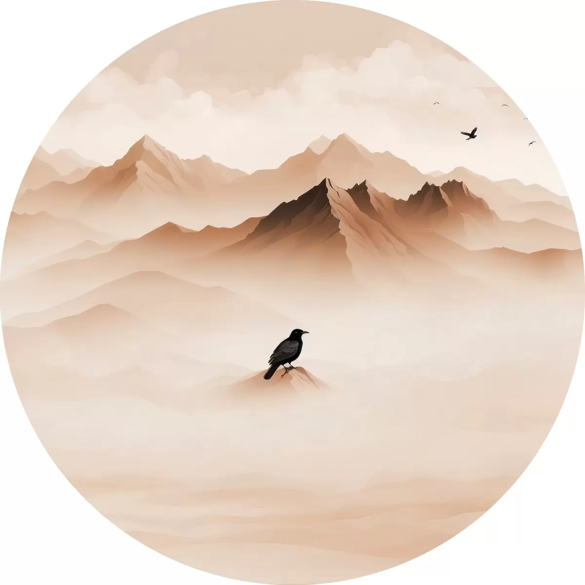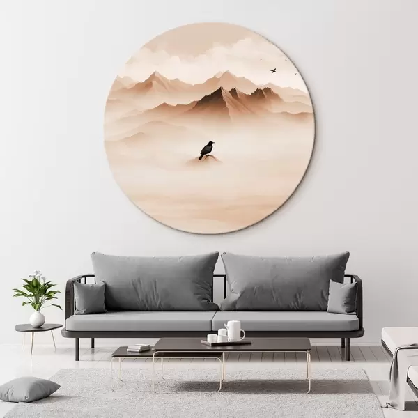Runde Gemälde Berge im Nebel in Vektorgrafik r41295