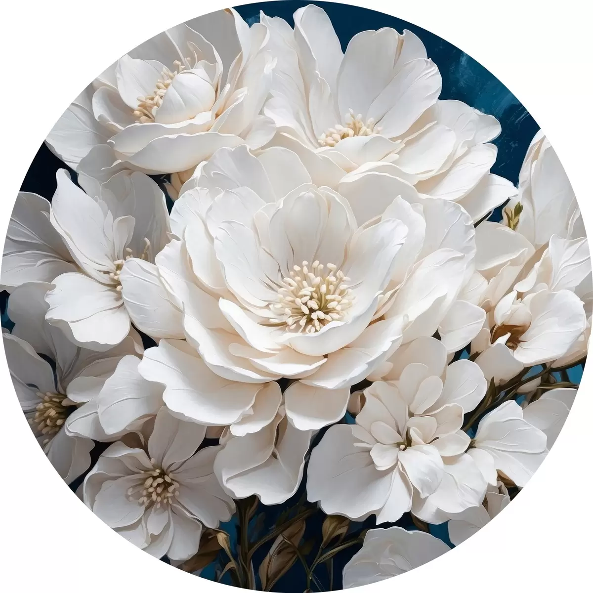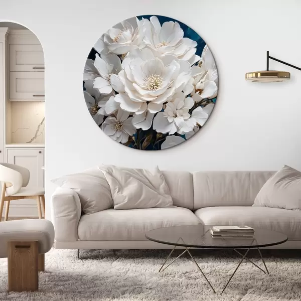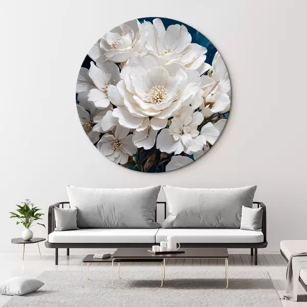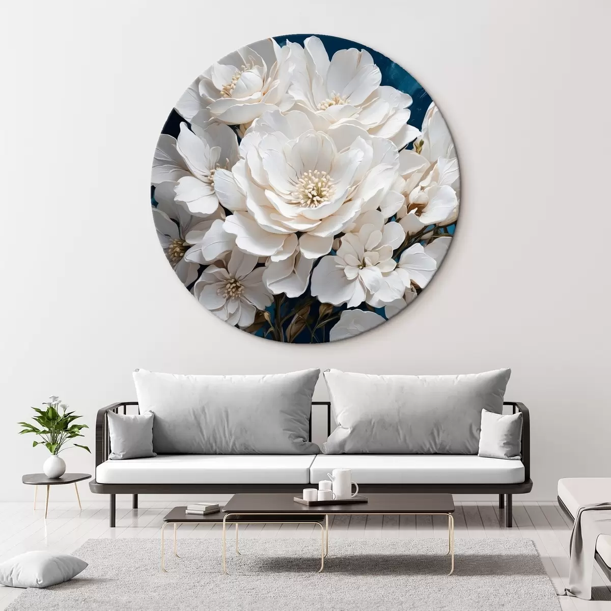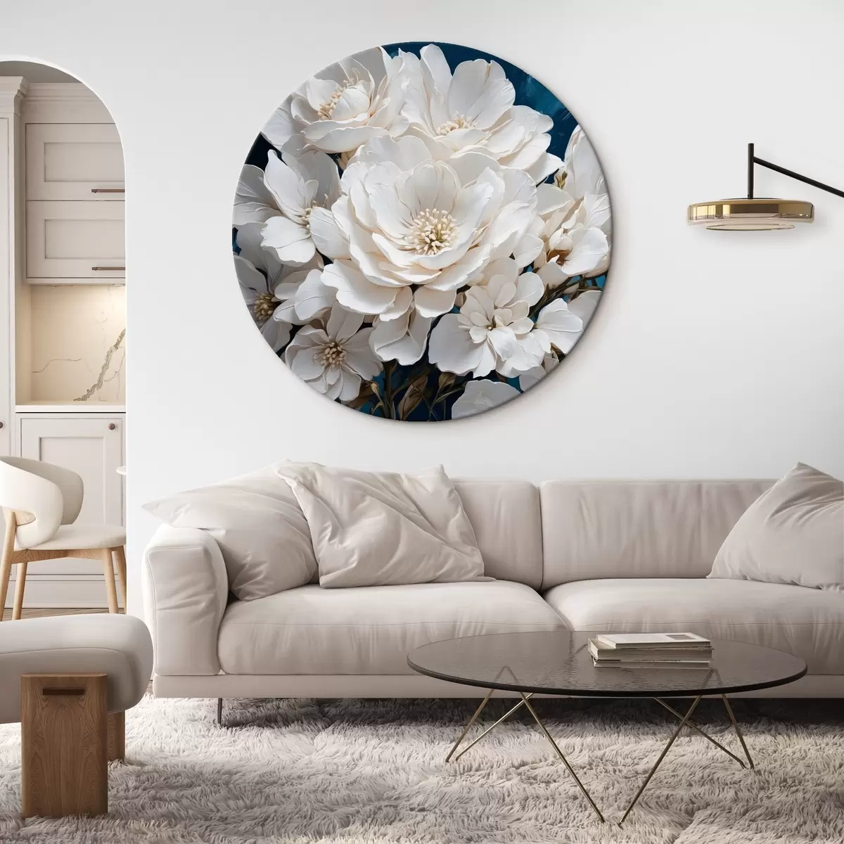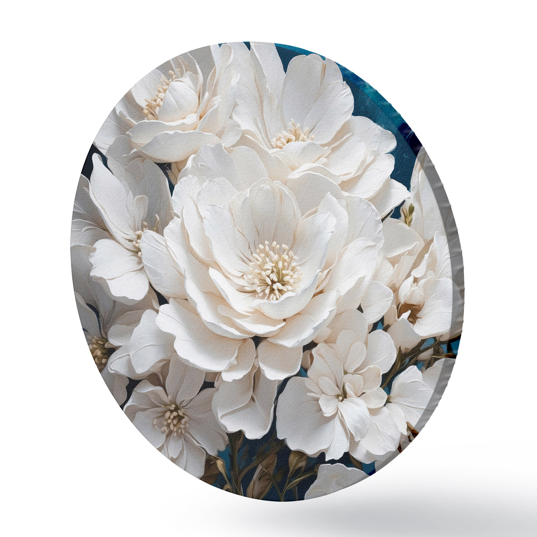 Runde Gemälde Weiße Blumen auf einem Acryl-Hintergrund r41314