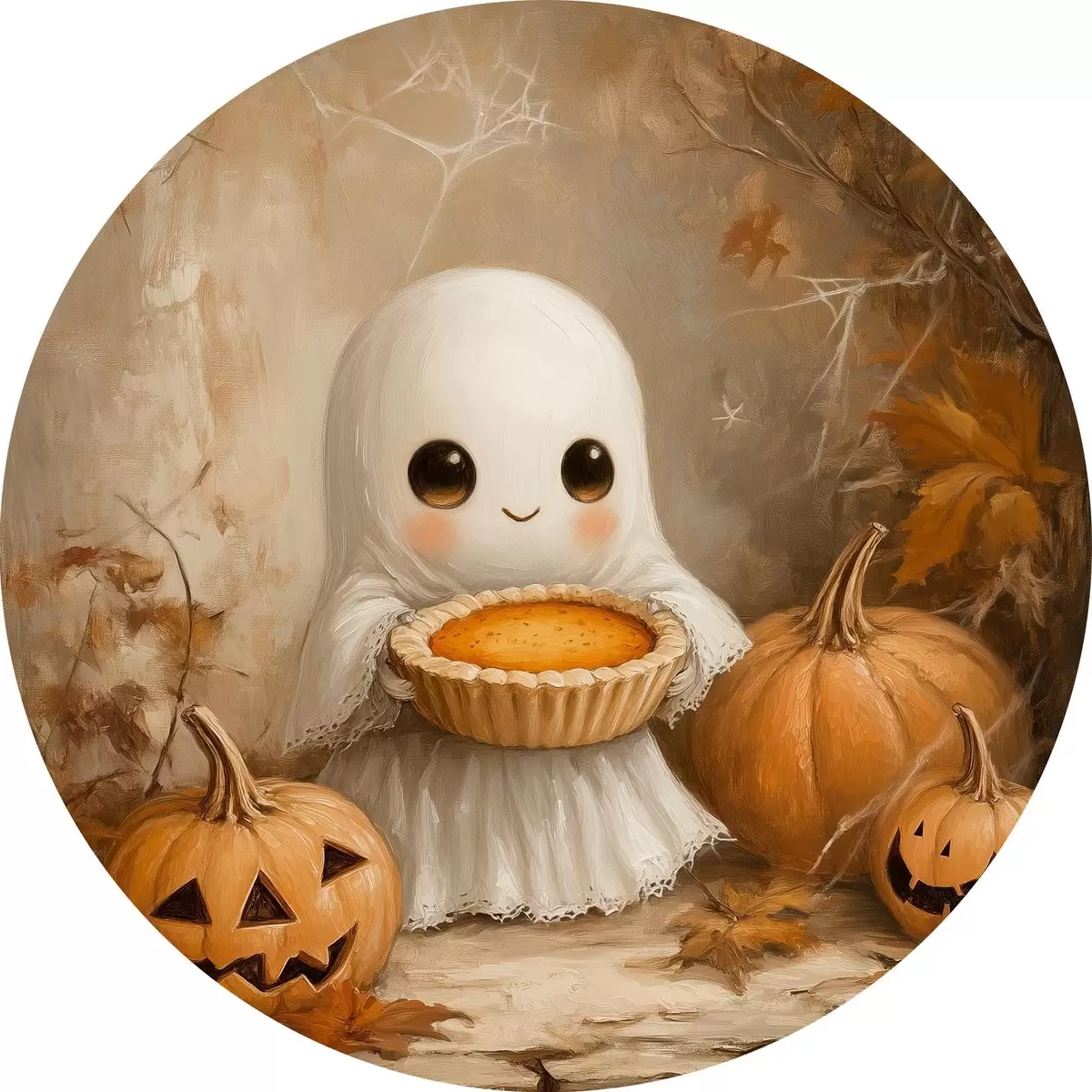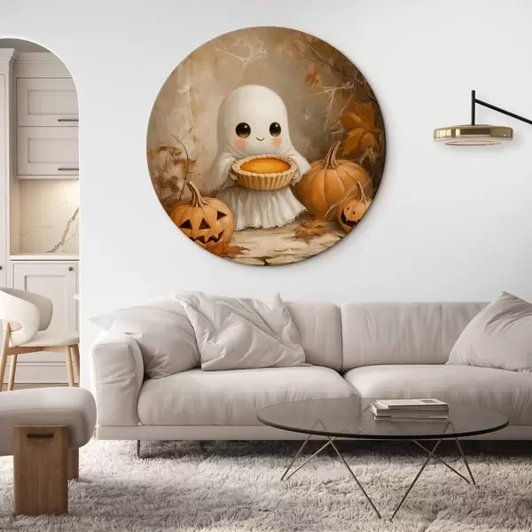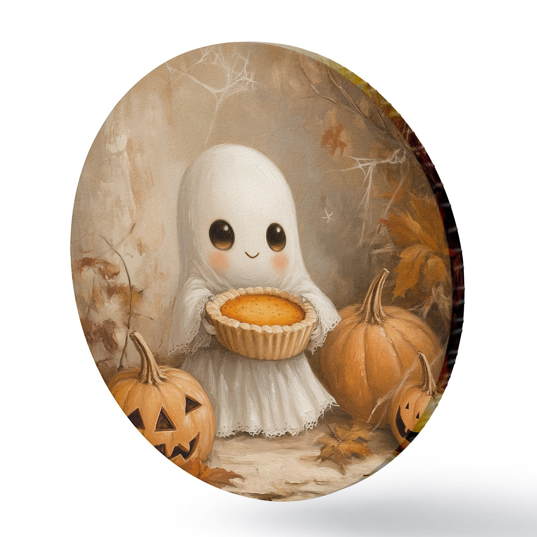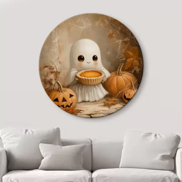 Runde Gemälde Geist mit Kürbiskuchen in der Hand r41340