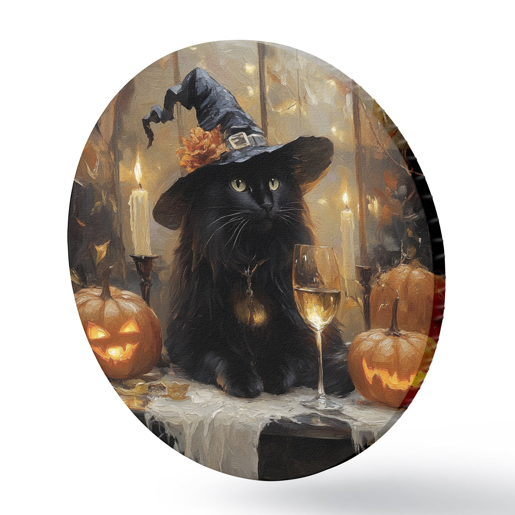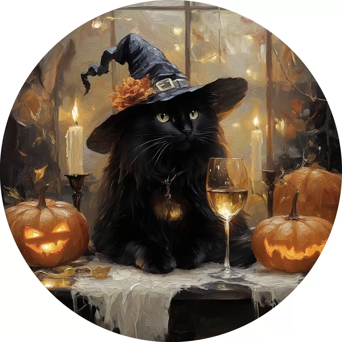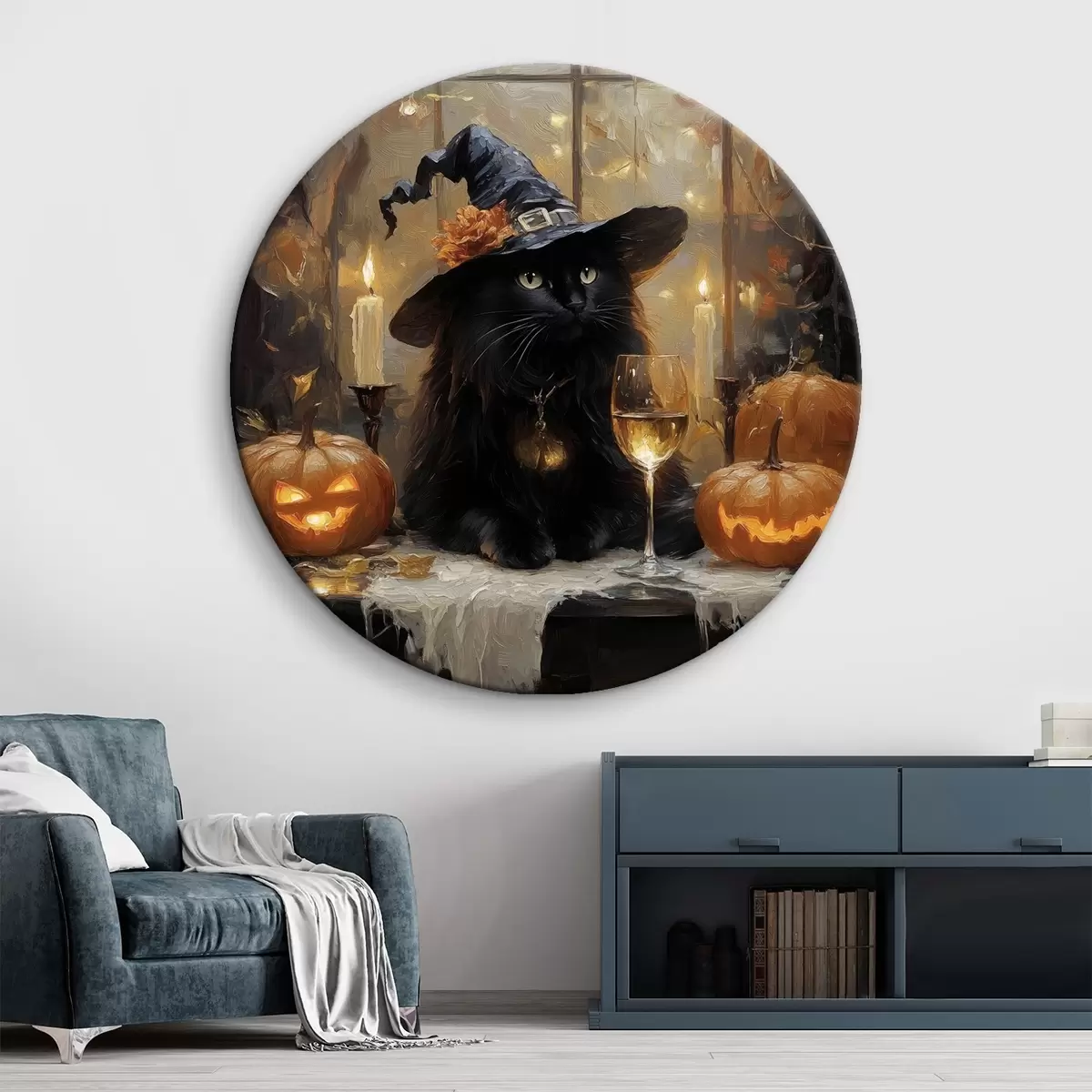 Runde Gemälde Schwarze Katze mit Kürbissen r41349