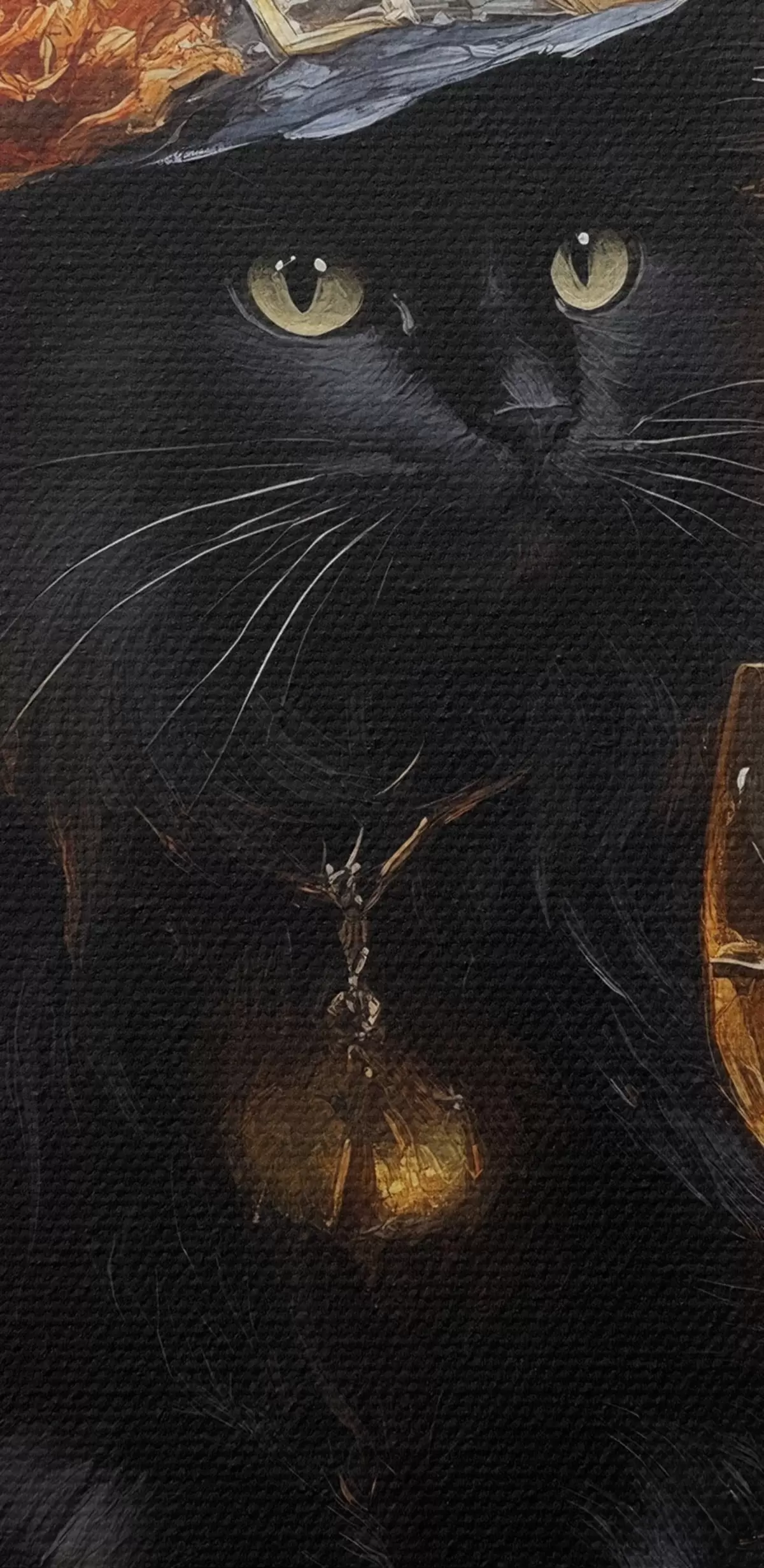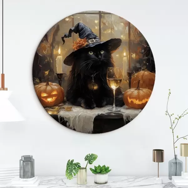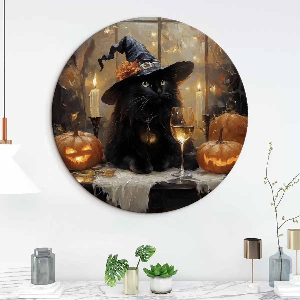 Runde Gemälde Schwarze Katze mit Kürbissen r41349