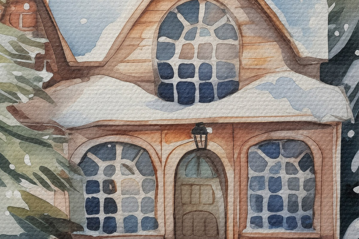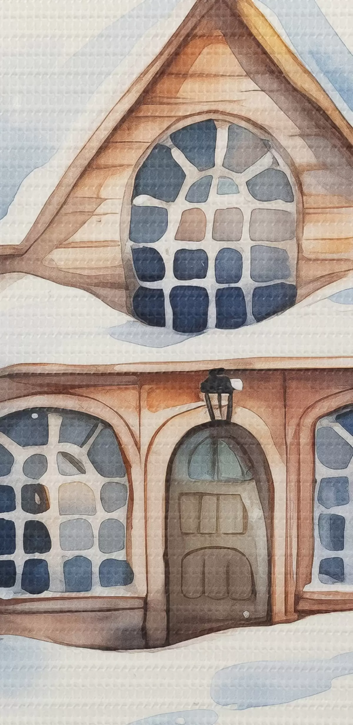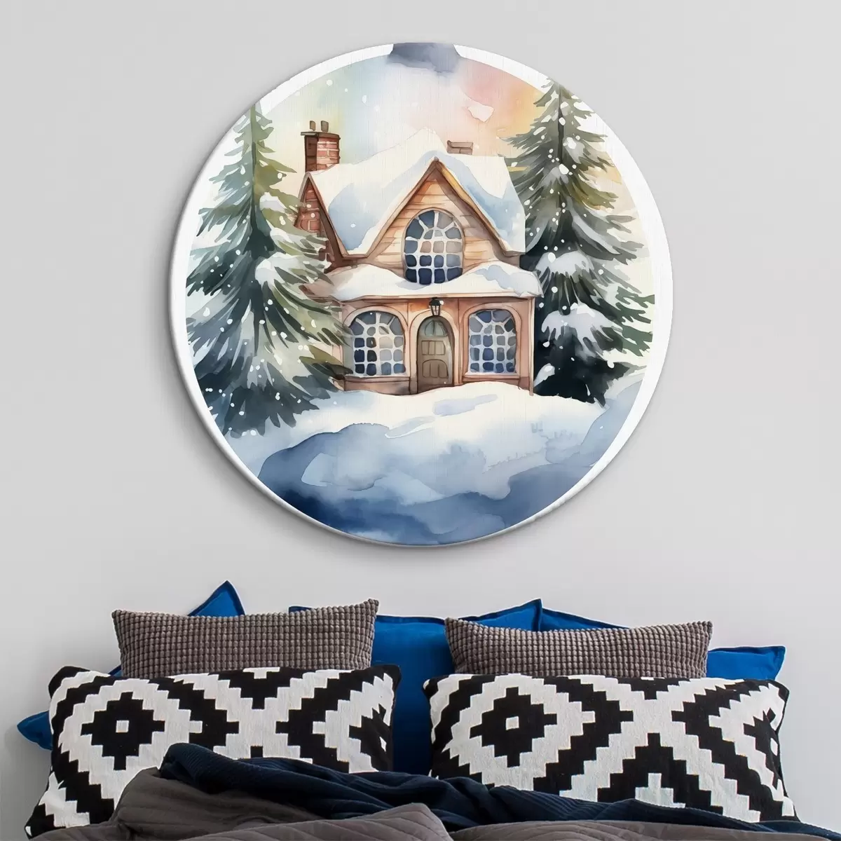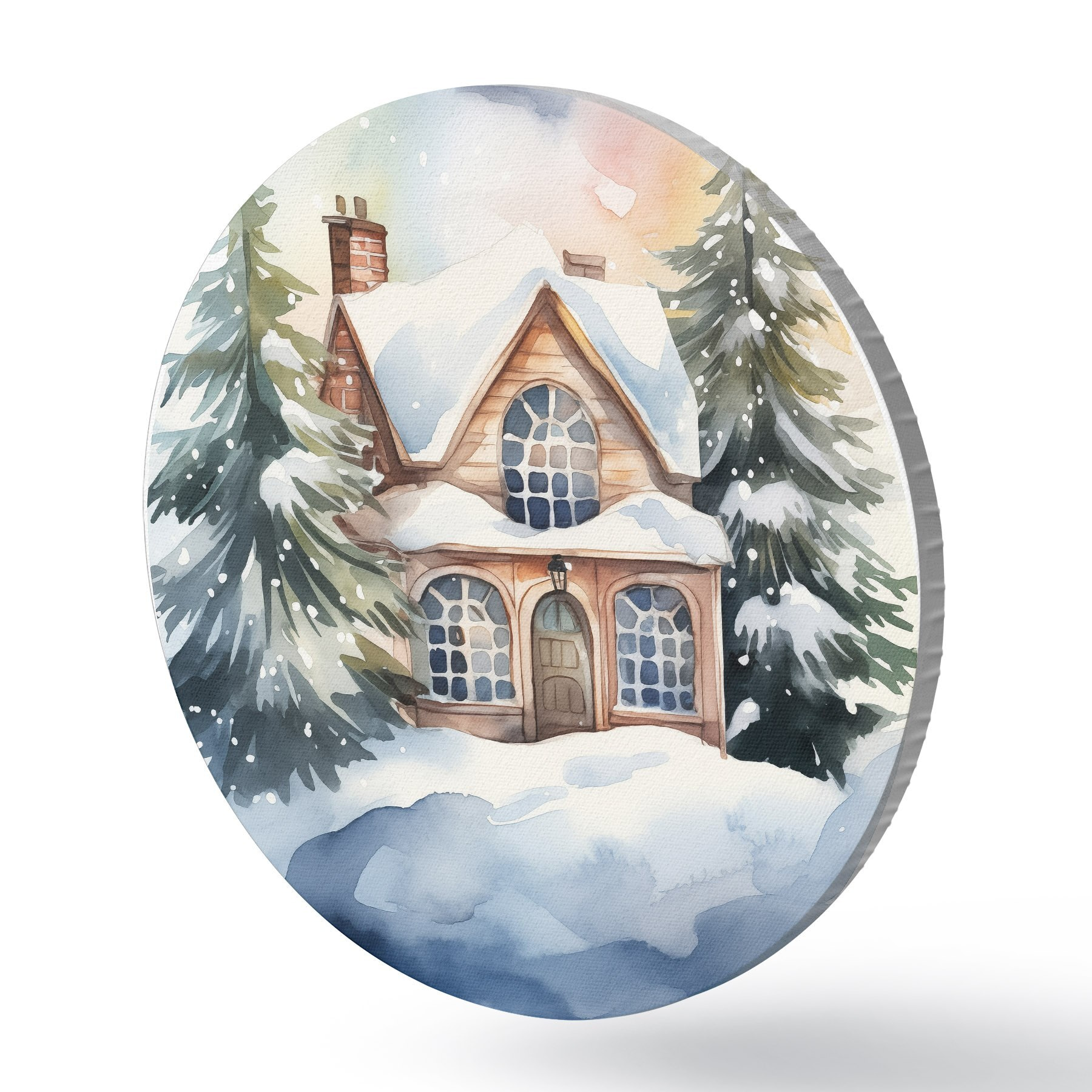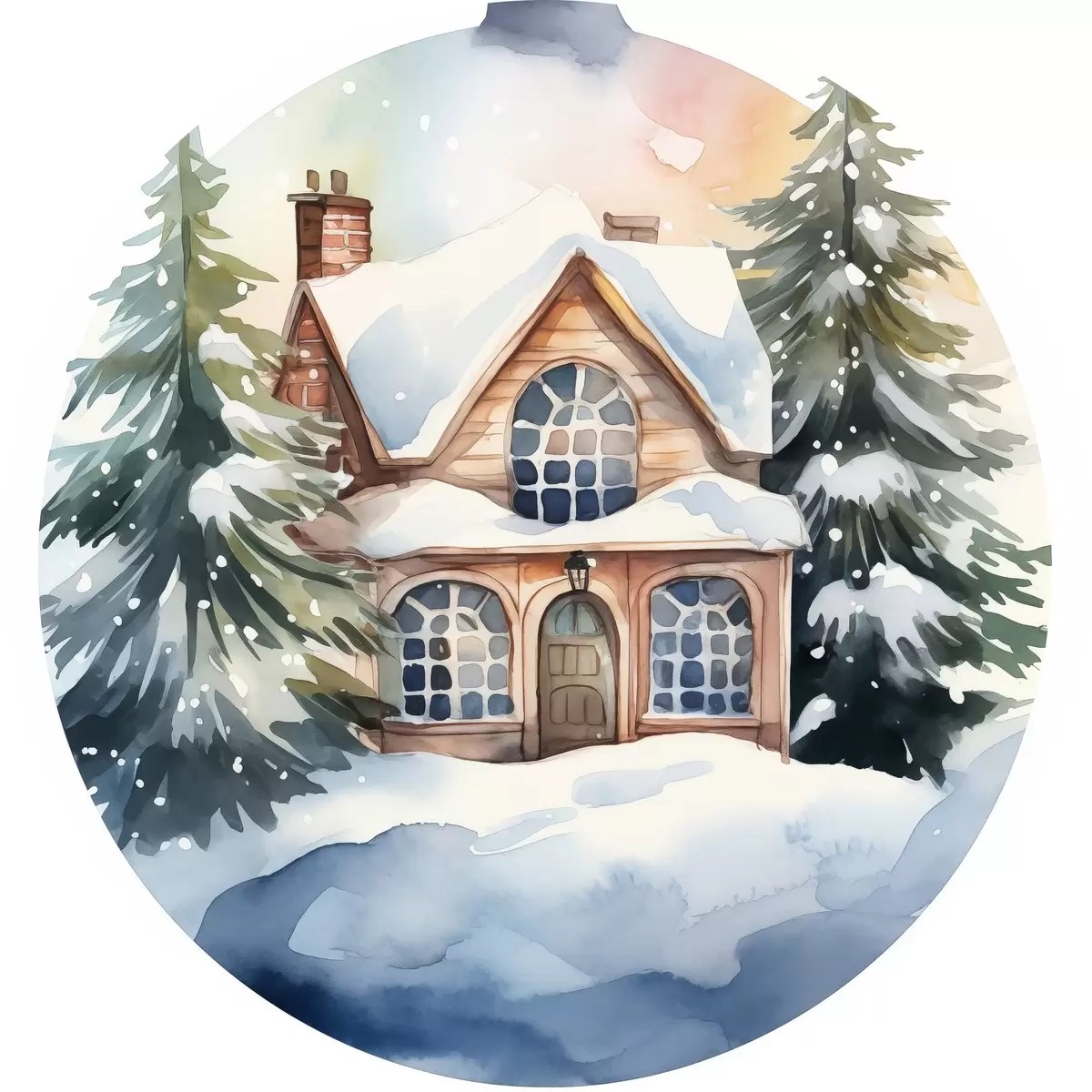 Runde Gemälde Weihnachtliche Dekokugel mit Aquarell-Schneehaus und Tannenbäumen r41363