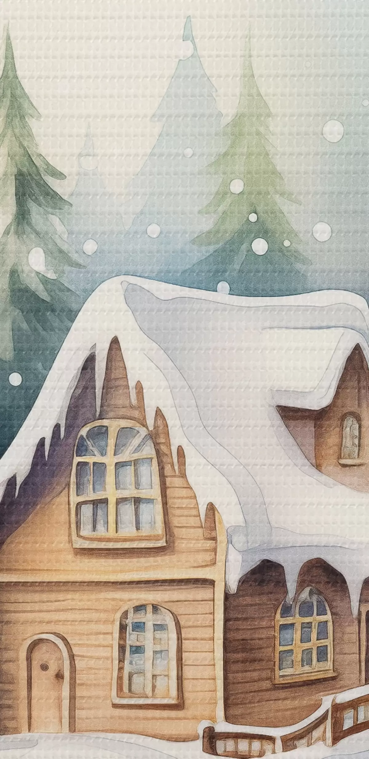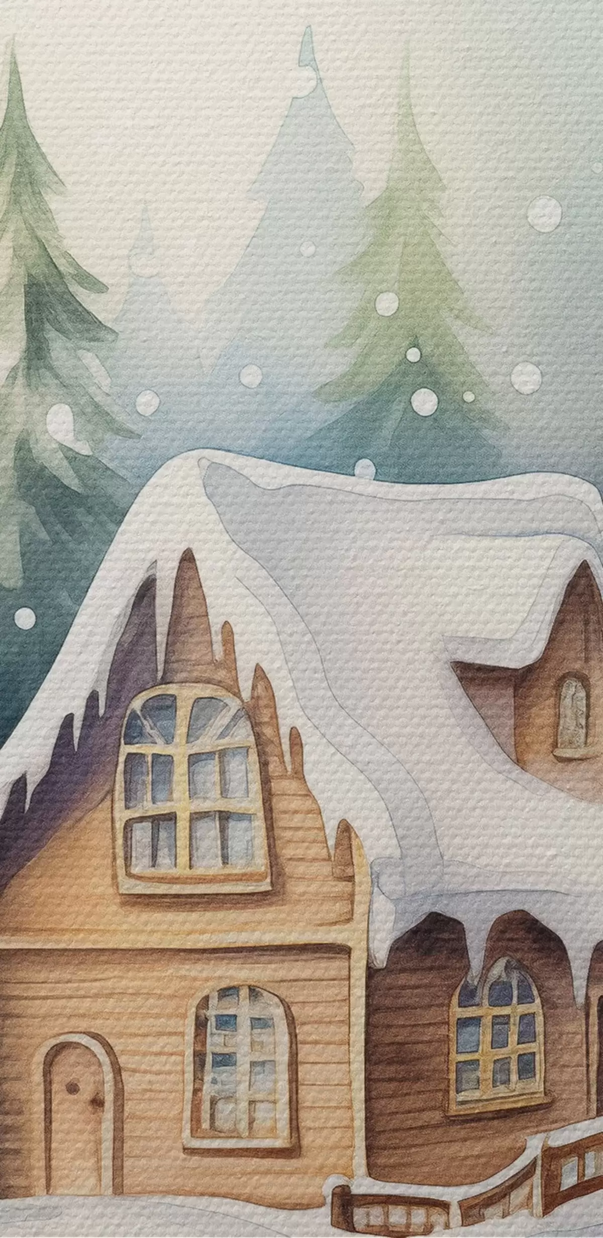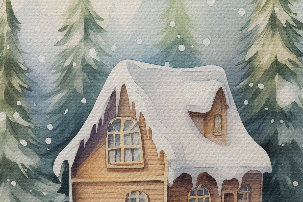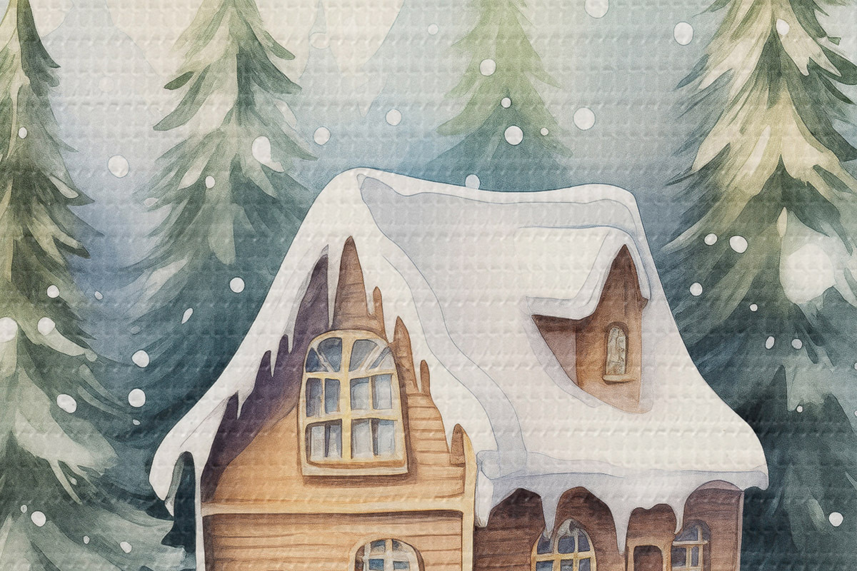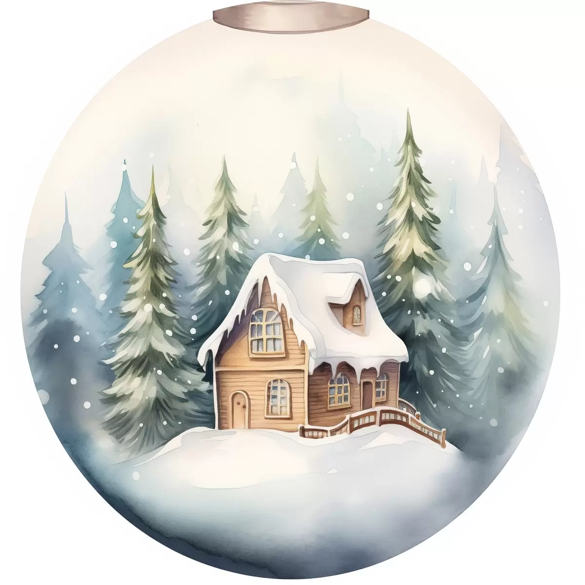 Bild Aquarell Kristallkugel mit Winterlandschaft, Haus im Wald, Schnee Nr r41366