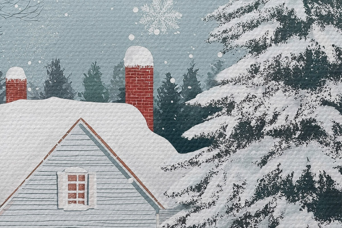 Bild Winterszene mit Haus mit Schnee bedeckt, Wald, Kiefern Nr r41369