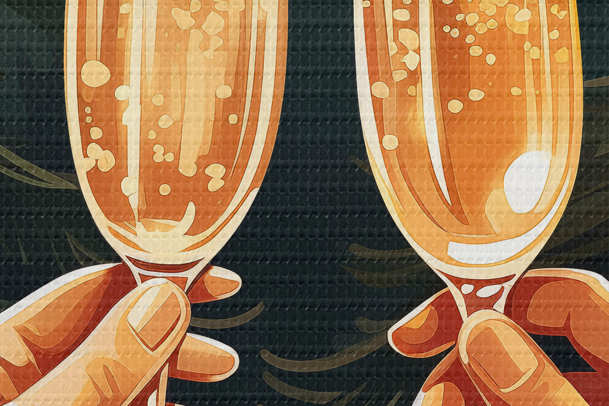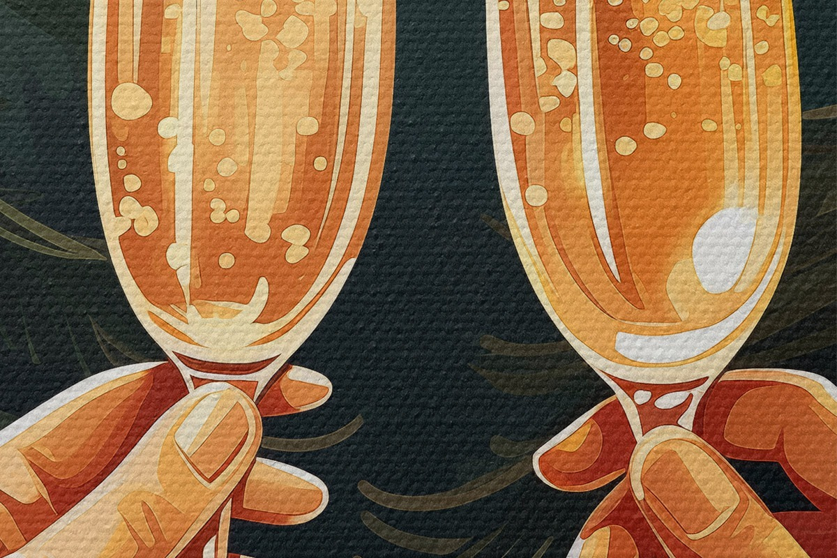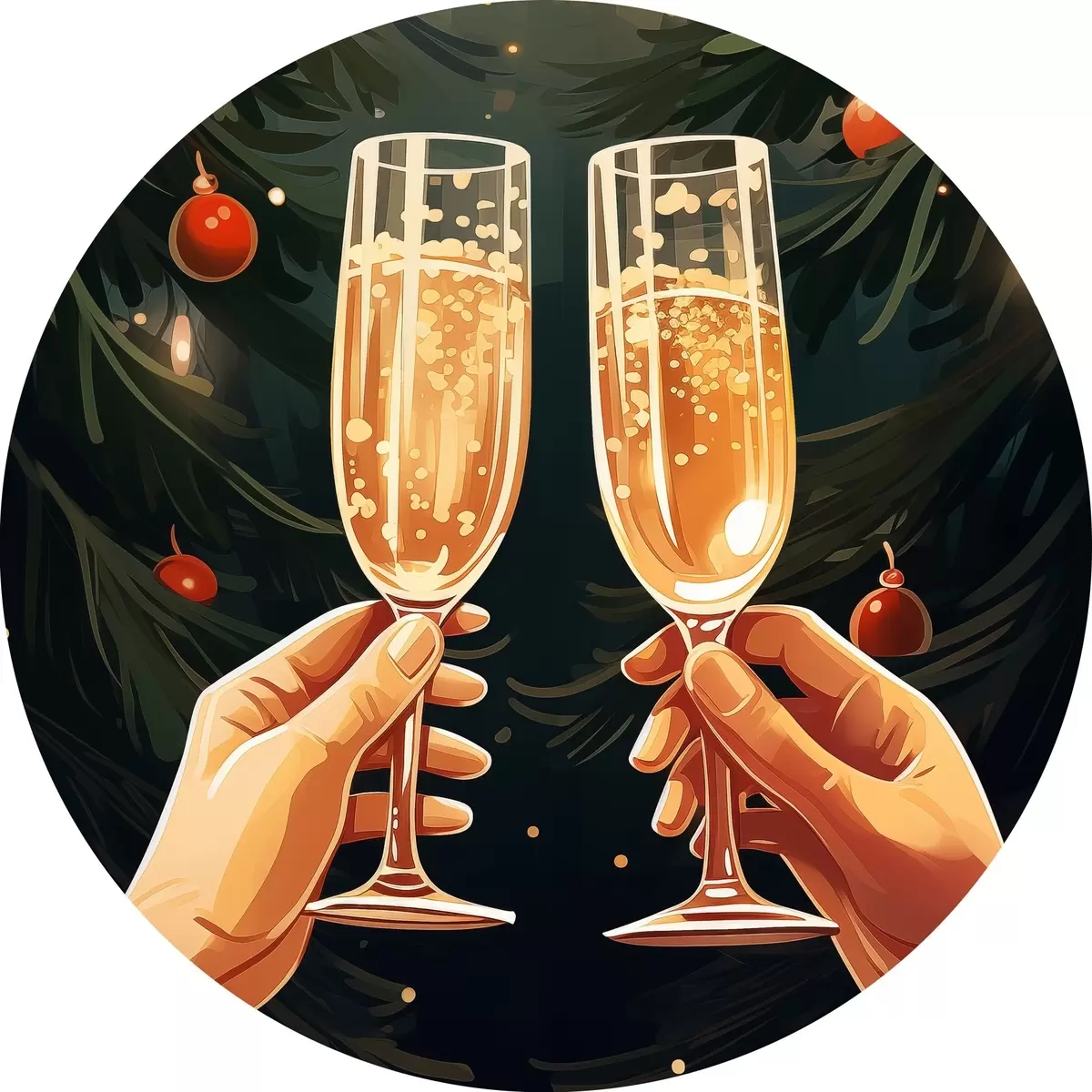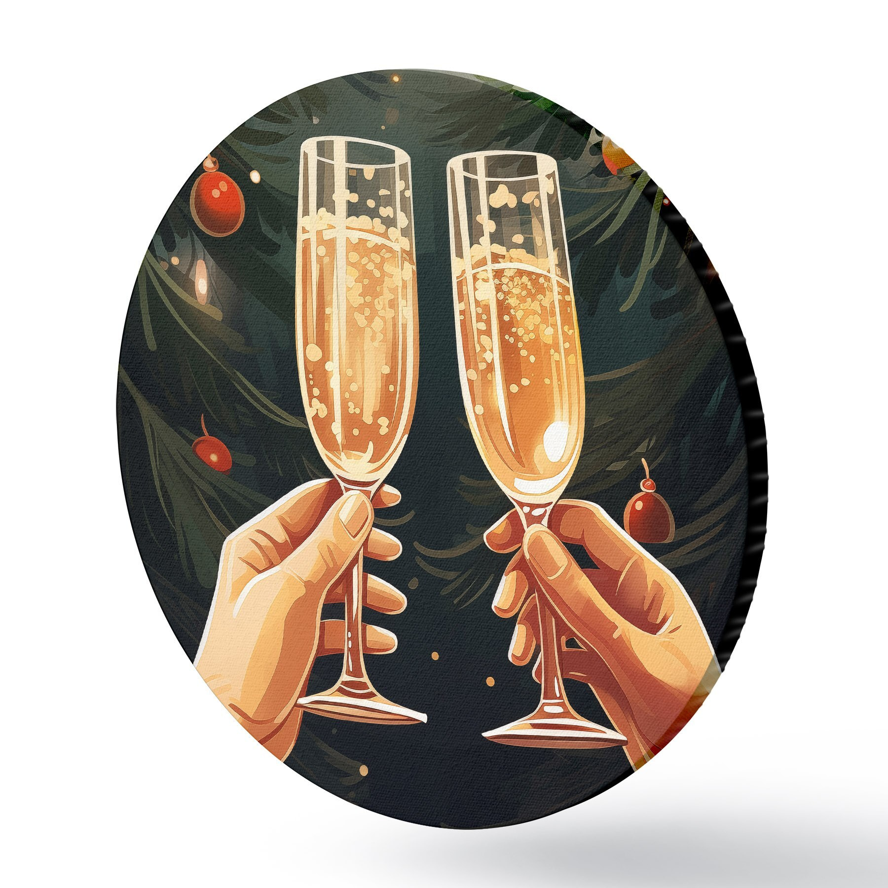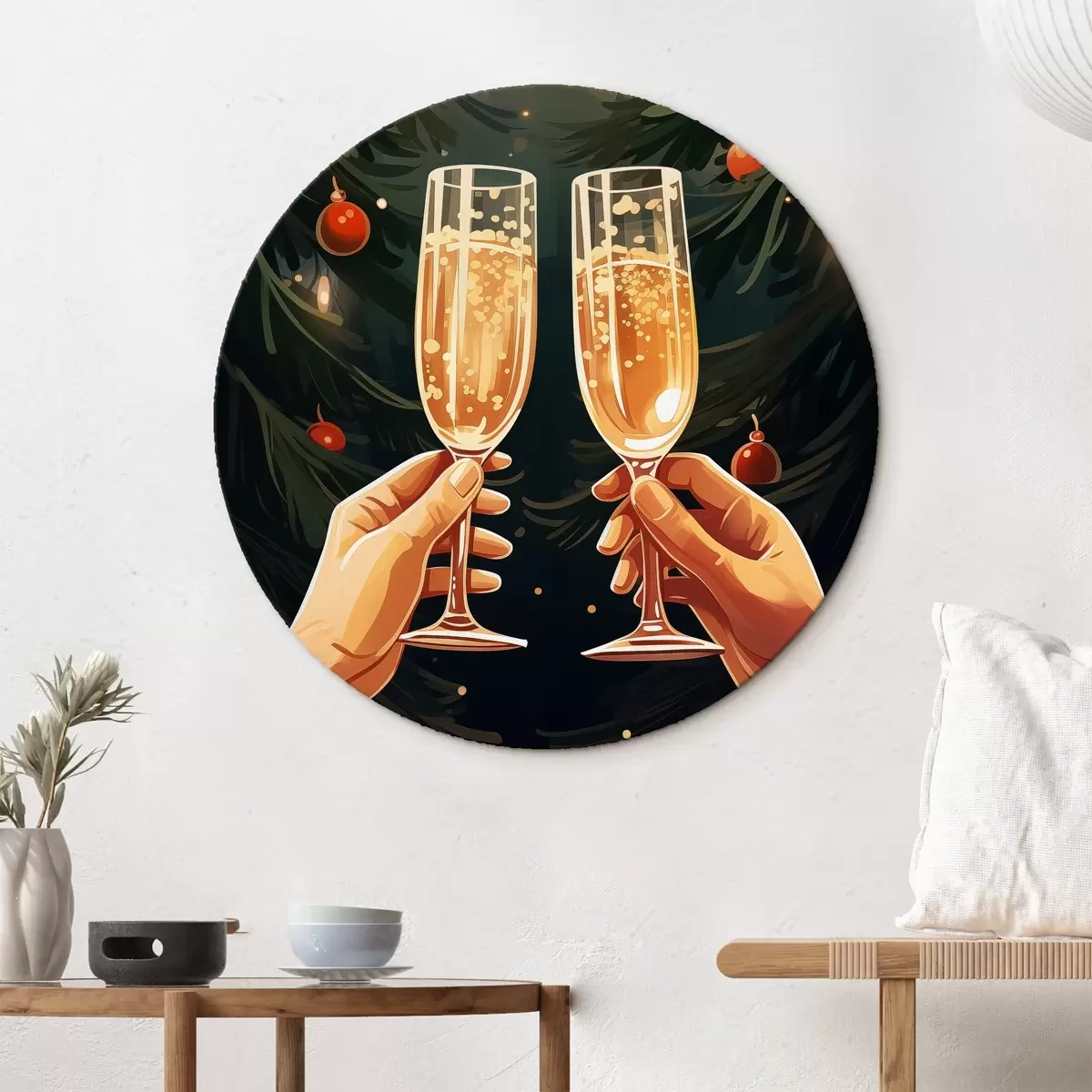 Runde Gemälde Feier, Sektgläser, Weihnachten, Tannenbaum, Kerzen, Weihnachtsbeleuchtung r41373