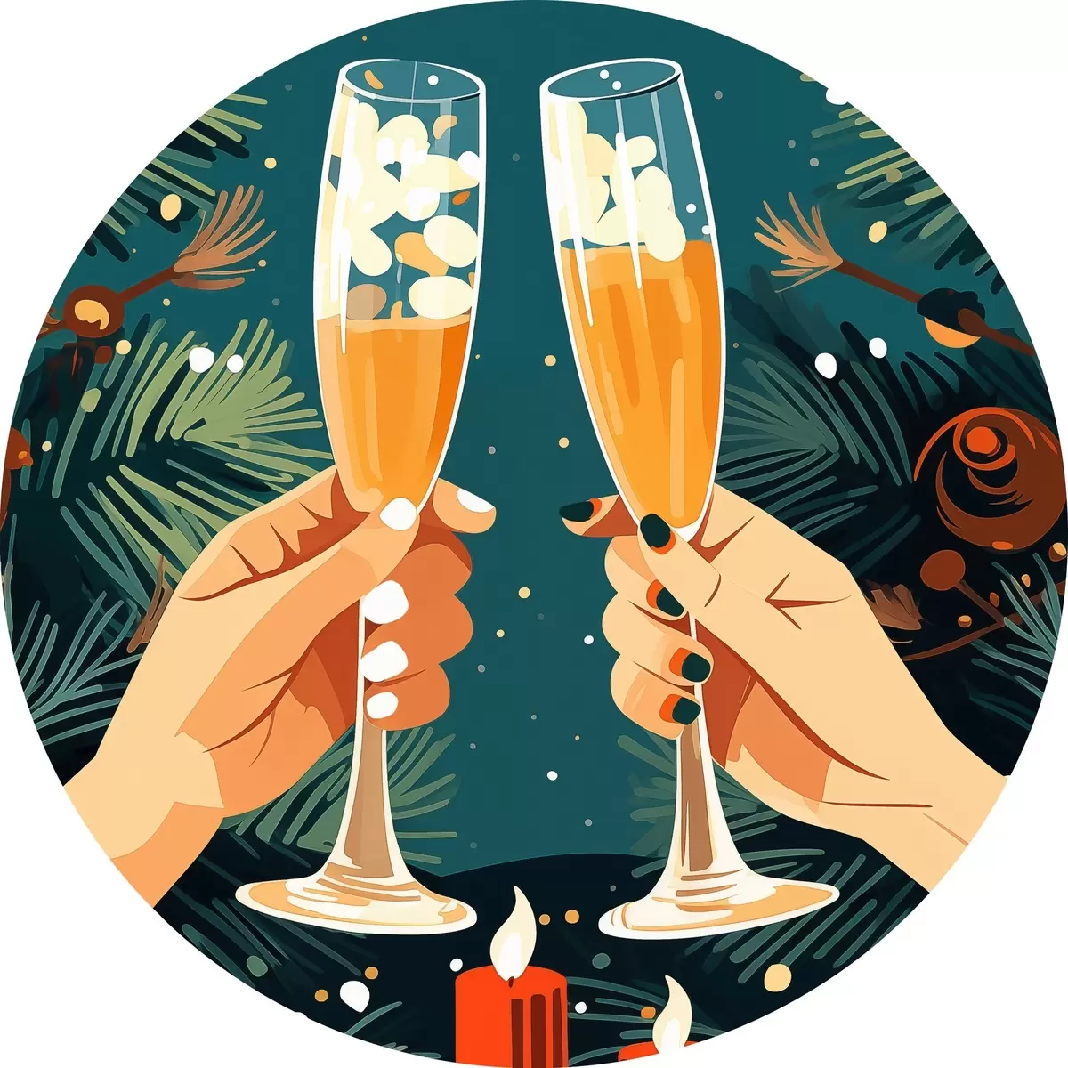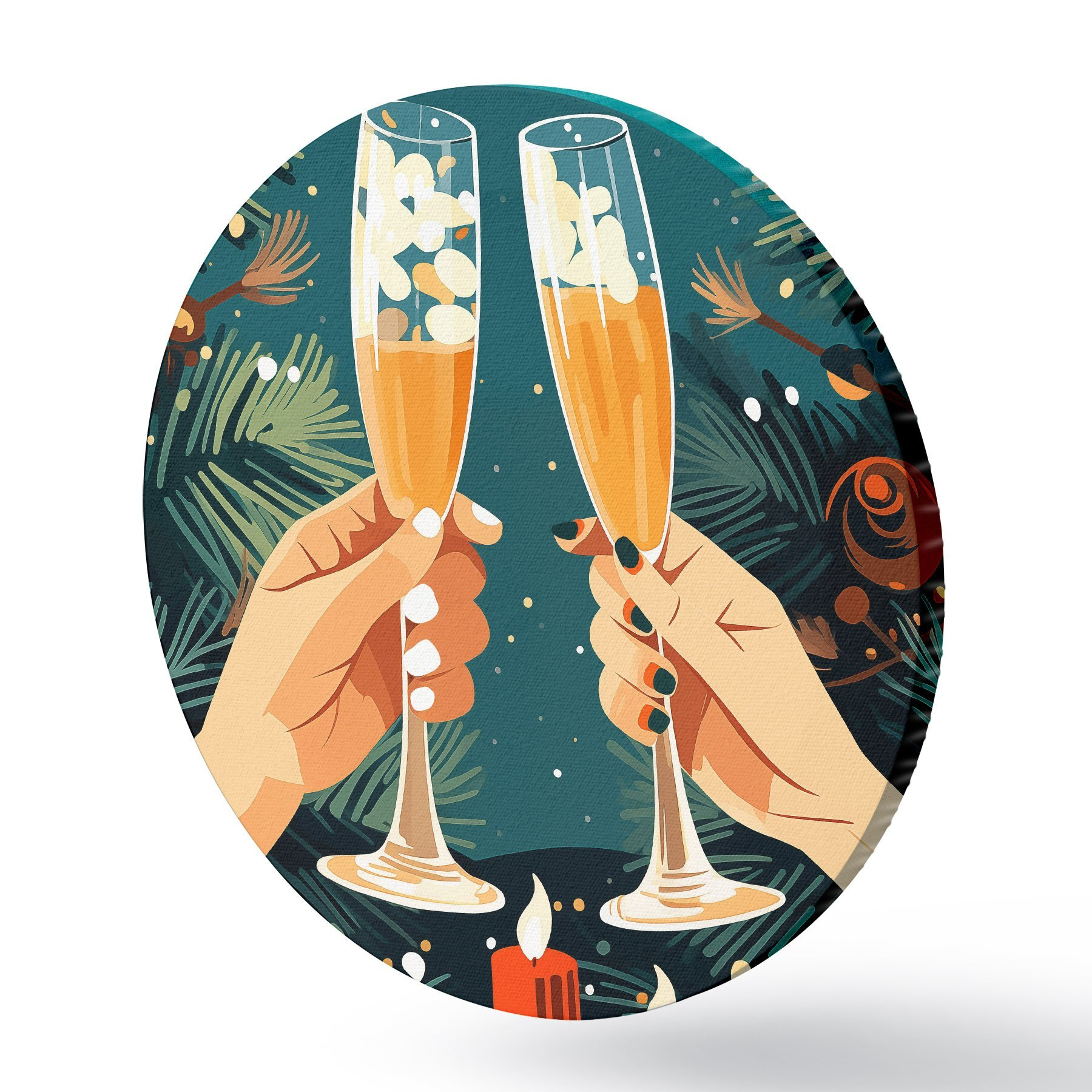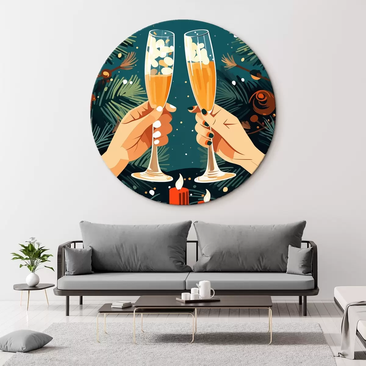 Runde Gemälde Feiern, Gläser, Lichterketten, Blumen, Zimt, Kerzen, Pop Art r41376