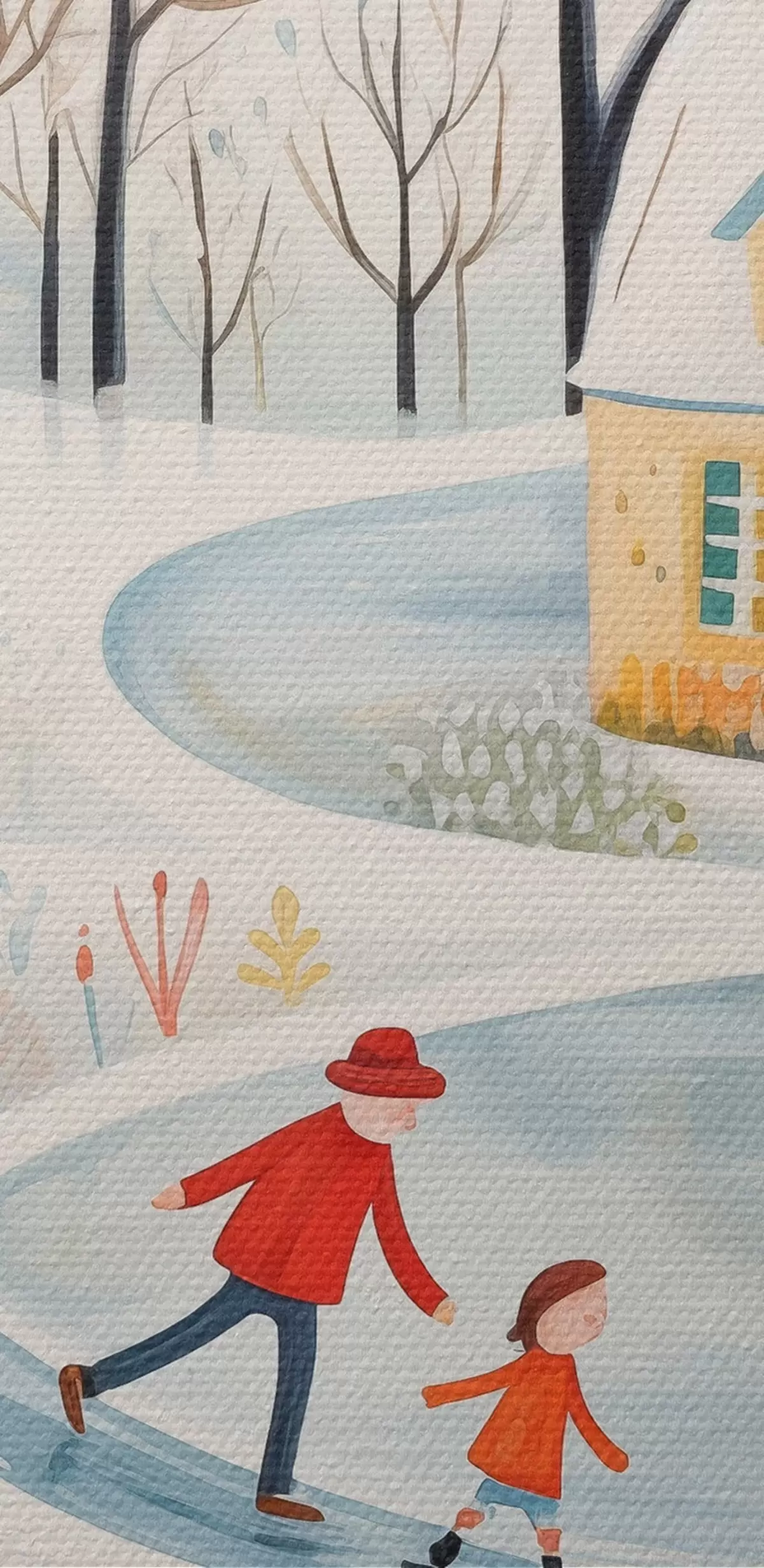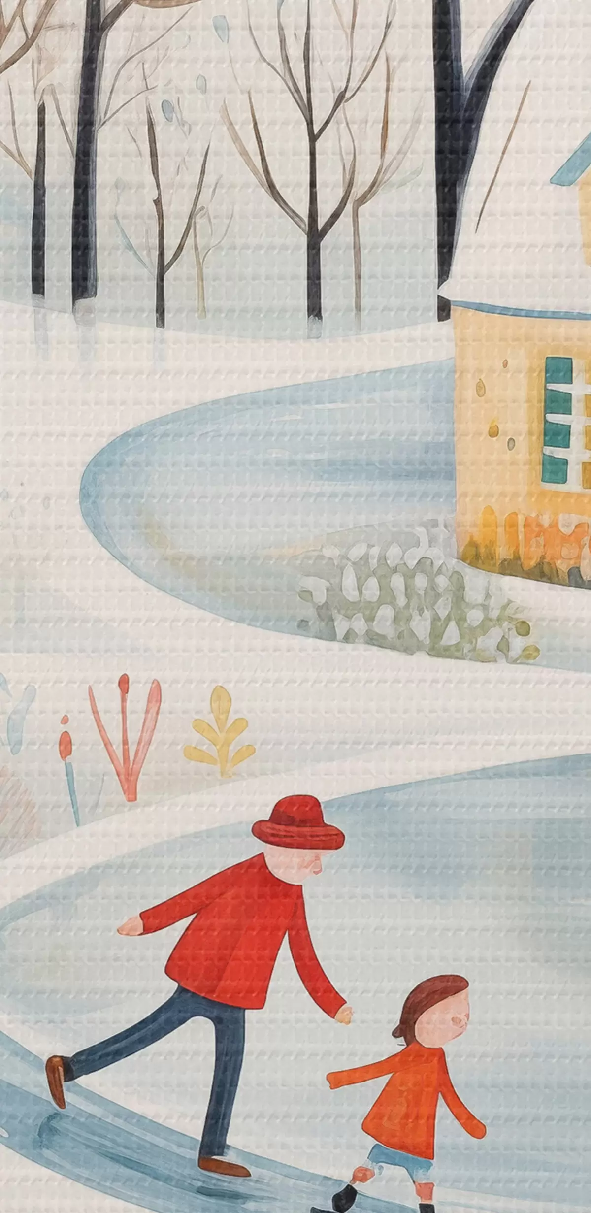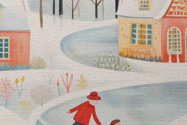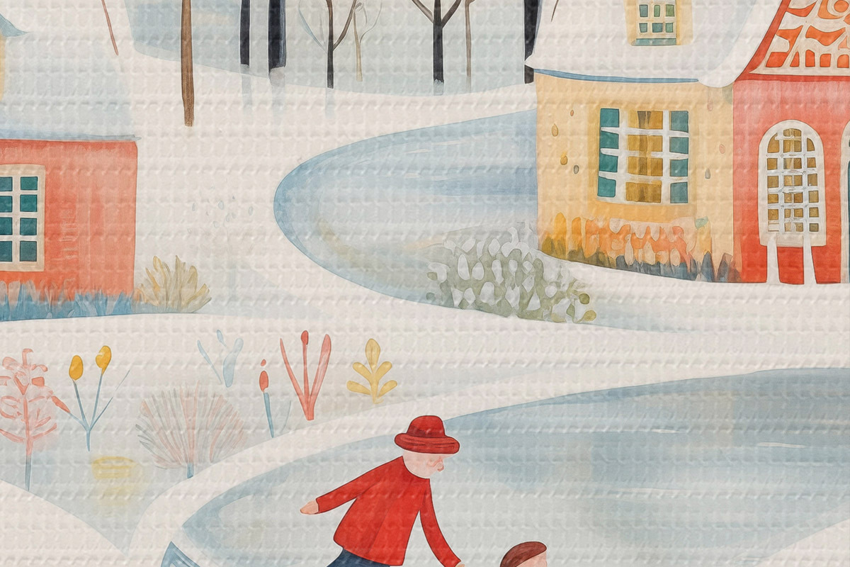Bild Winterdorf, Wald, Blumen, Schlittschuhe, bunte Häuser Nr r41378