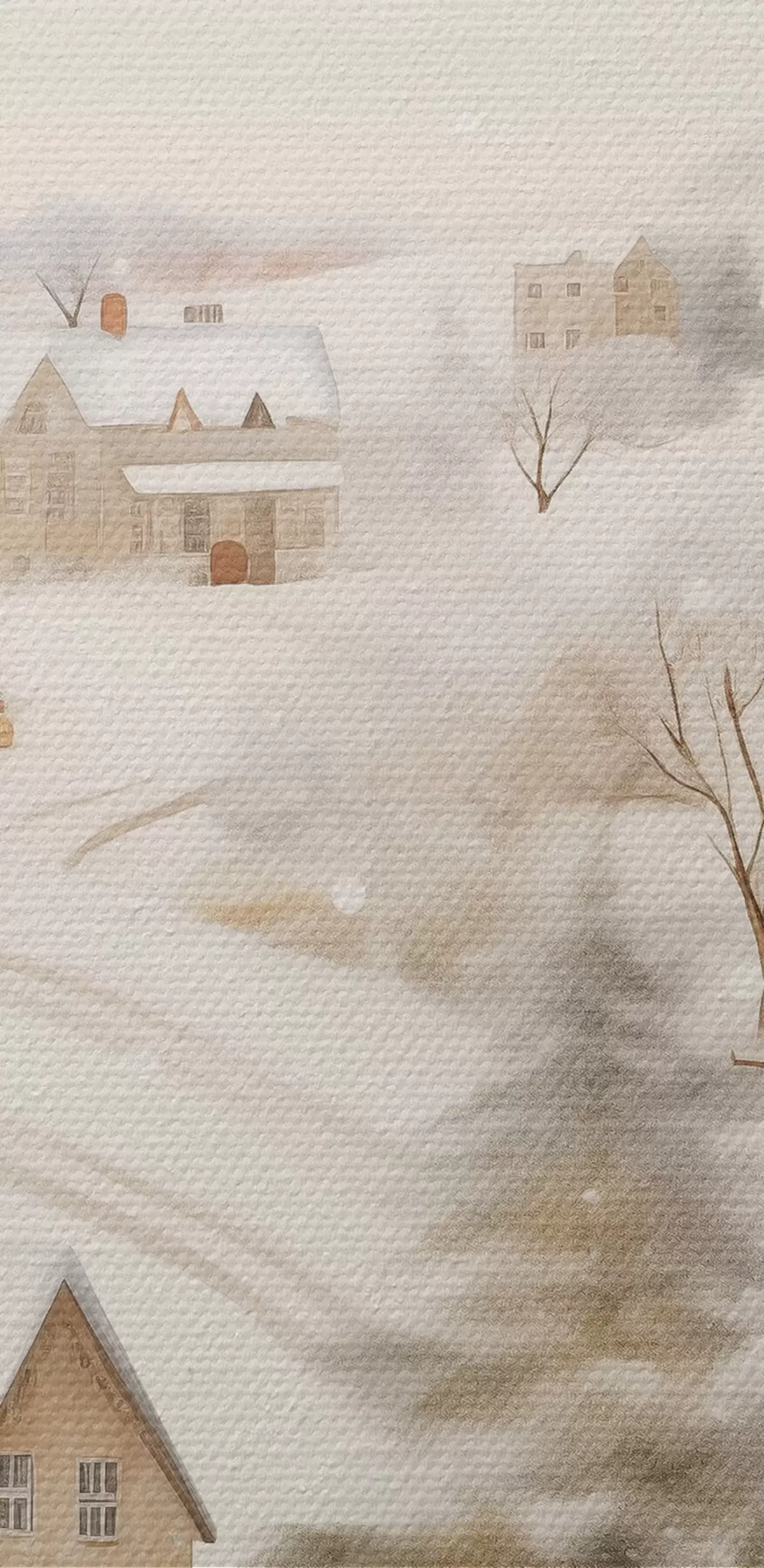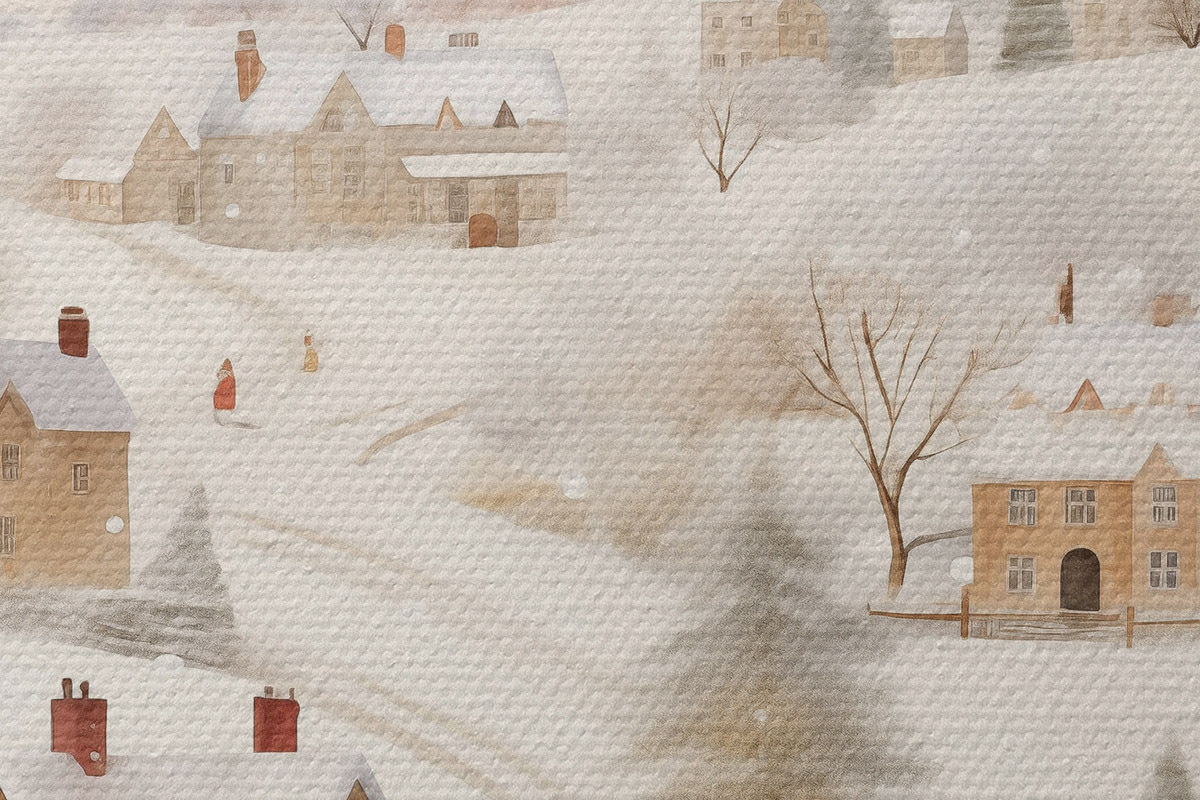 Bild Winterdorf, Aquarell, Schneeflocken, weiche Farben, Bäume, Landschaft Nr r41381