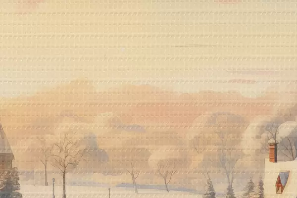 Bild Winterwunderland, Häuser, Sonnenuntergang Himmel, Bäume, Aquarell Nr r41383