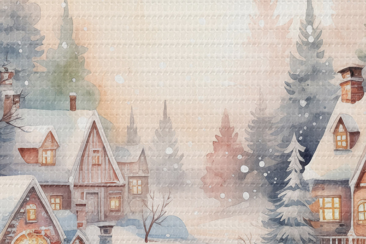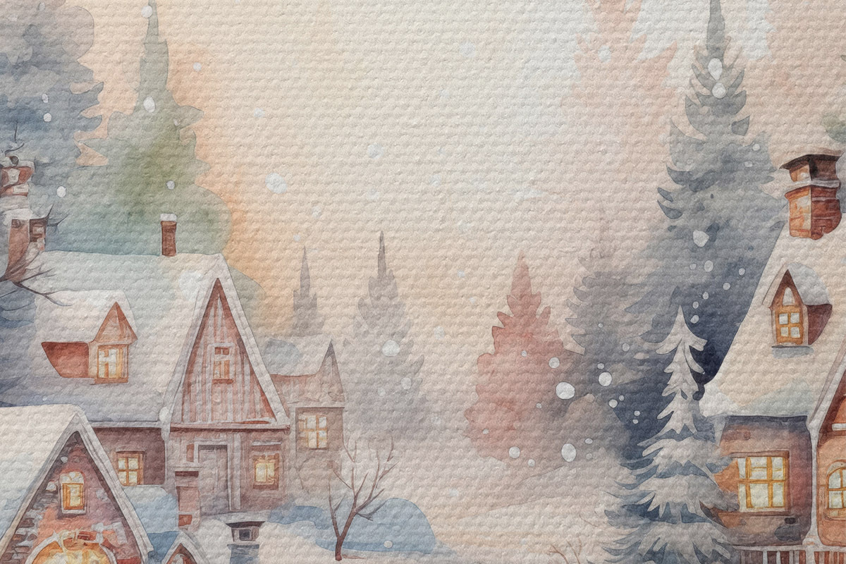 Bild Winterlandschaft, Kiefernwald, schöne Häuser, Aquarell, Susnet Nr r41390