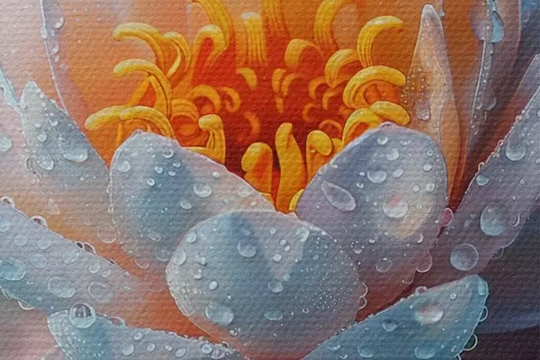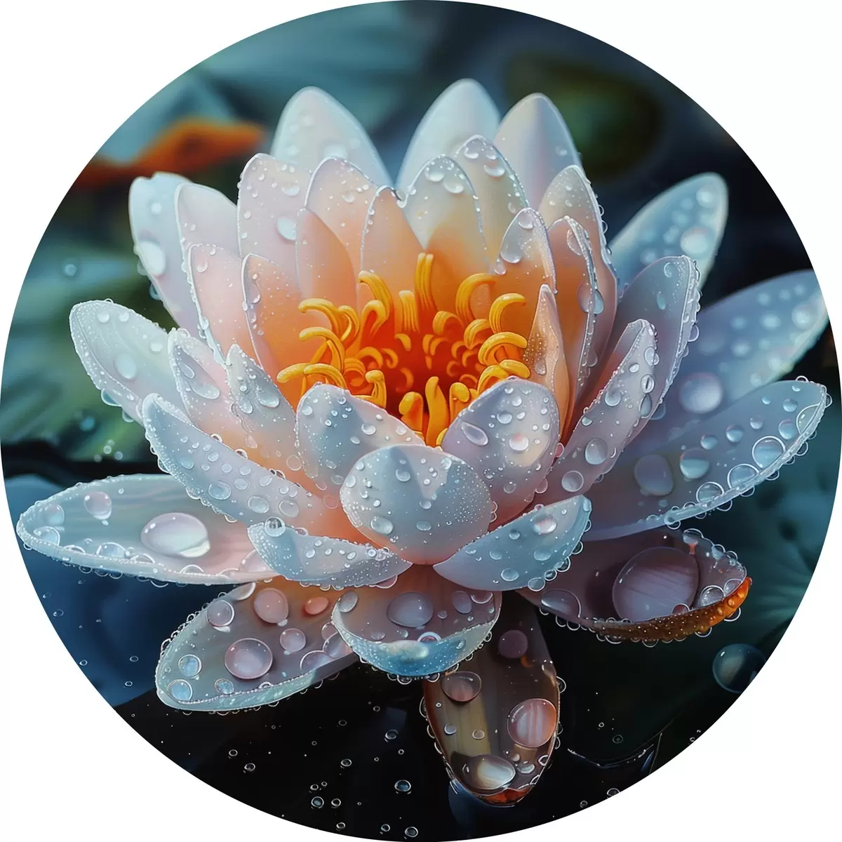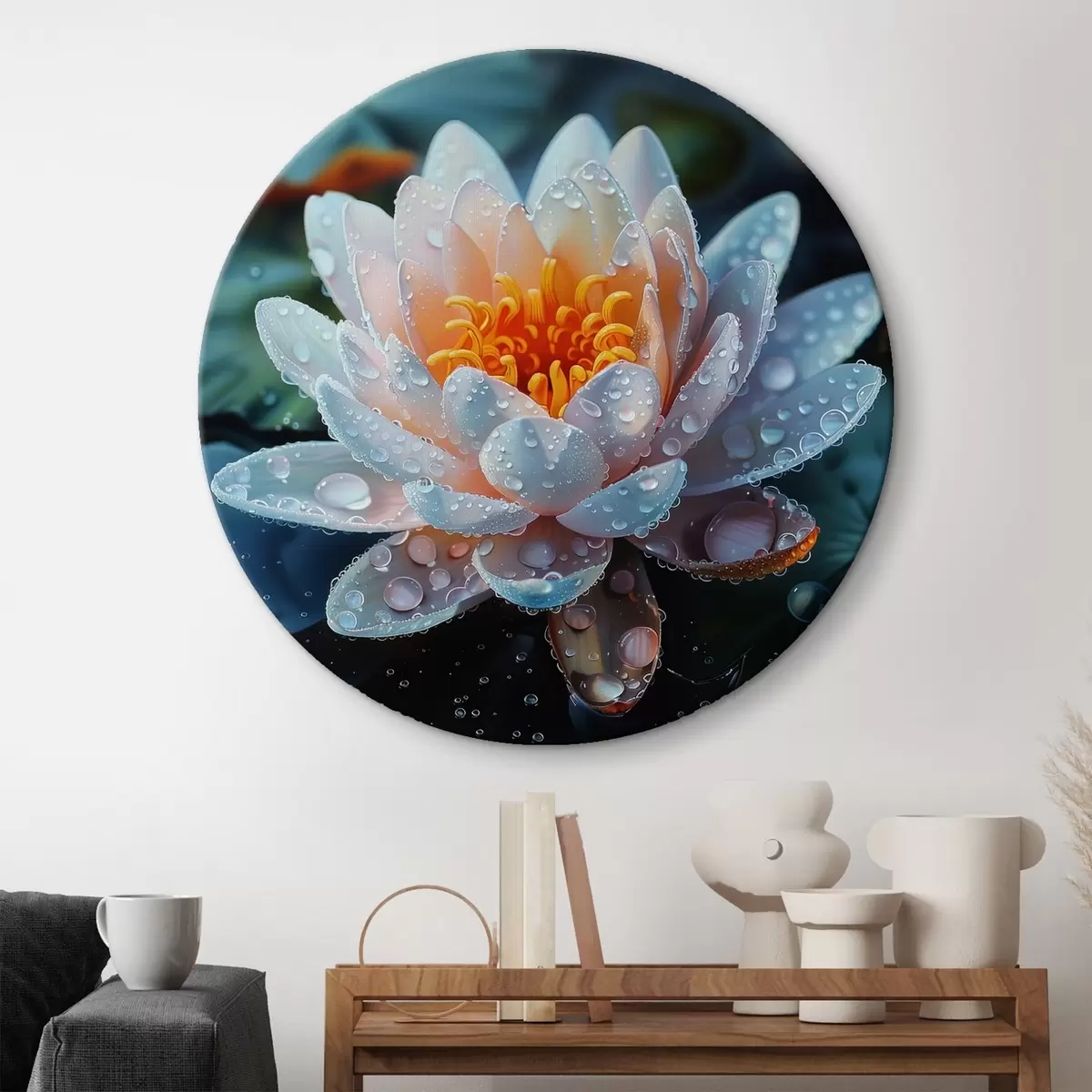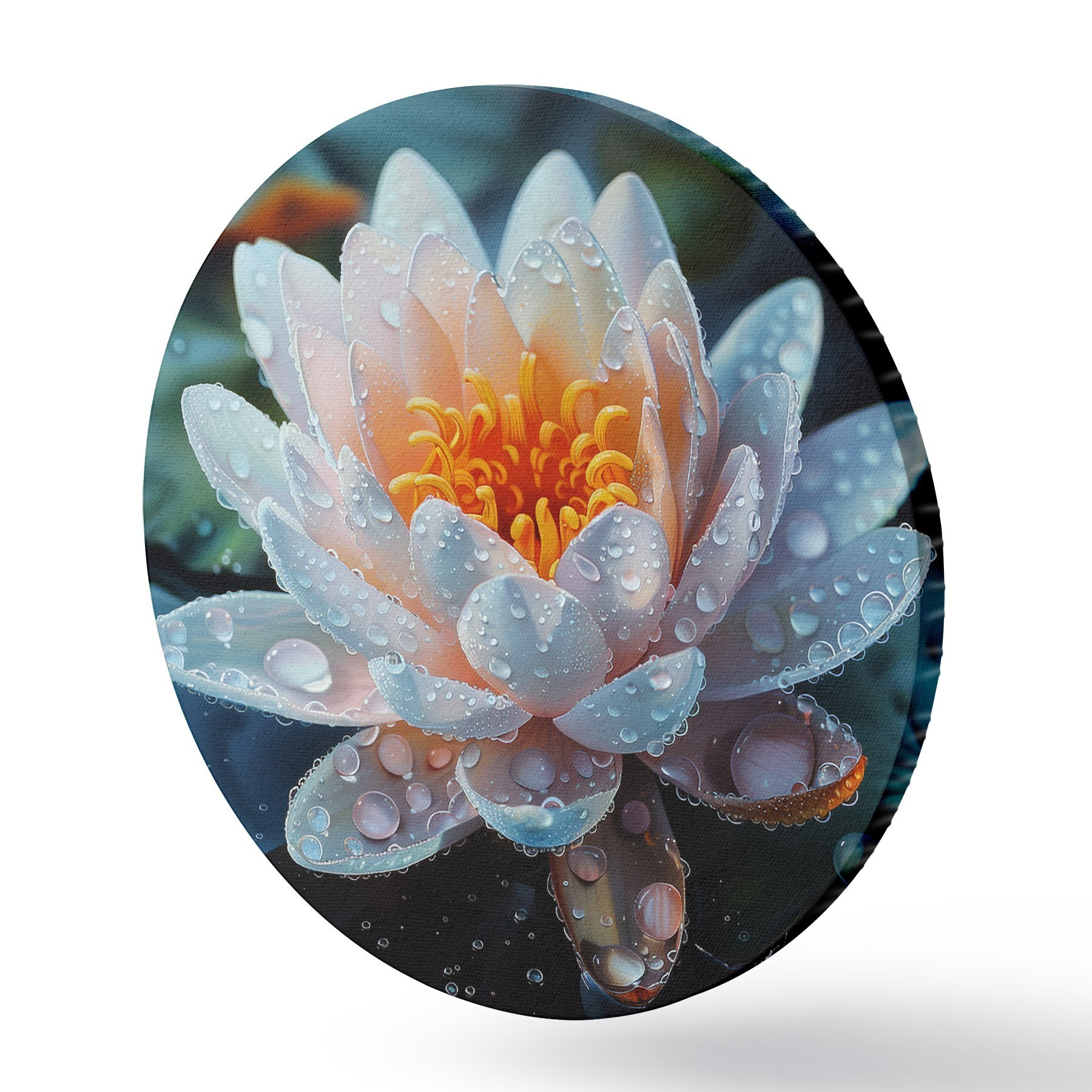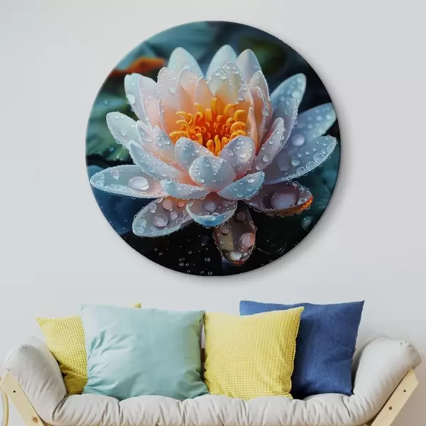 Runde Gemälde Lotusblume mit Tautropfen r41433