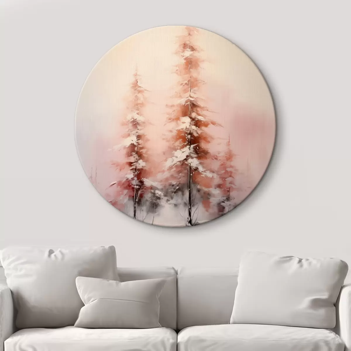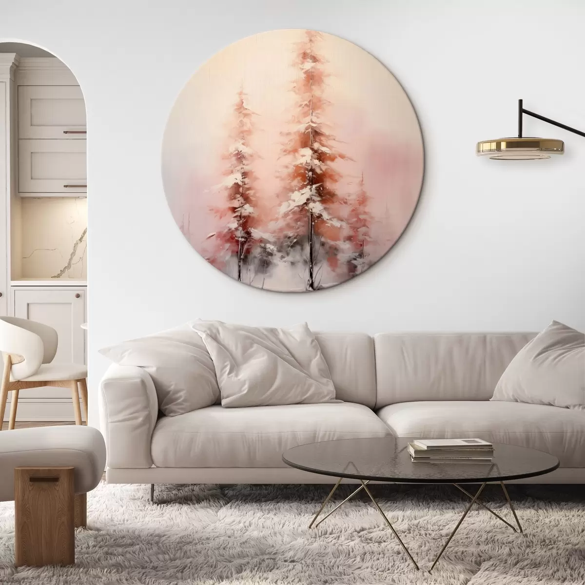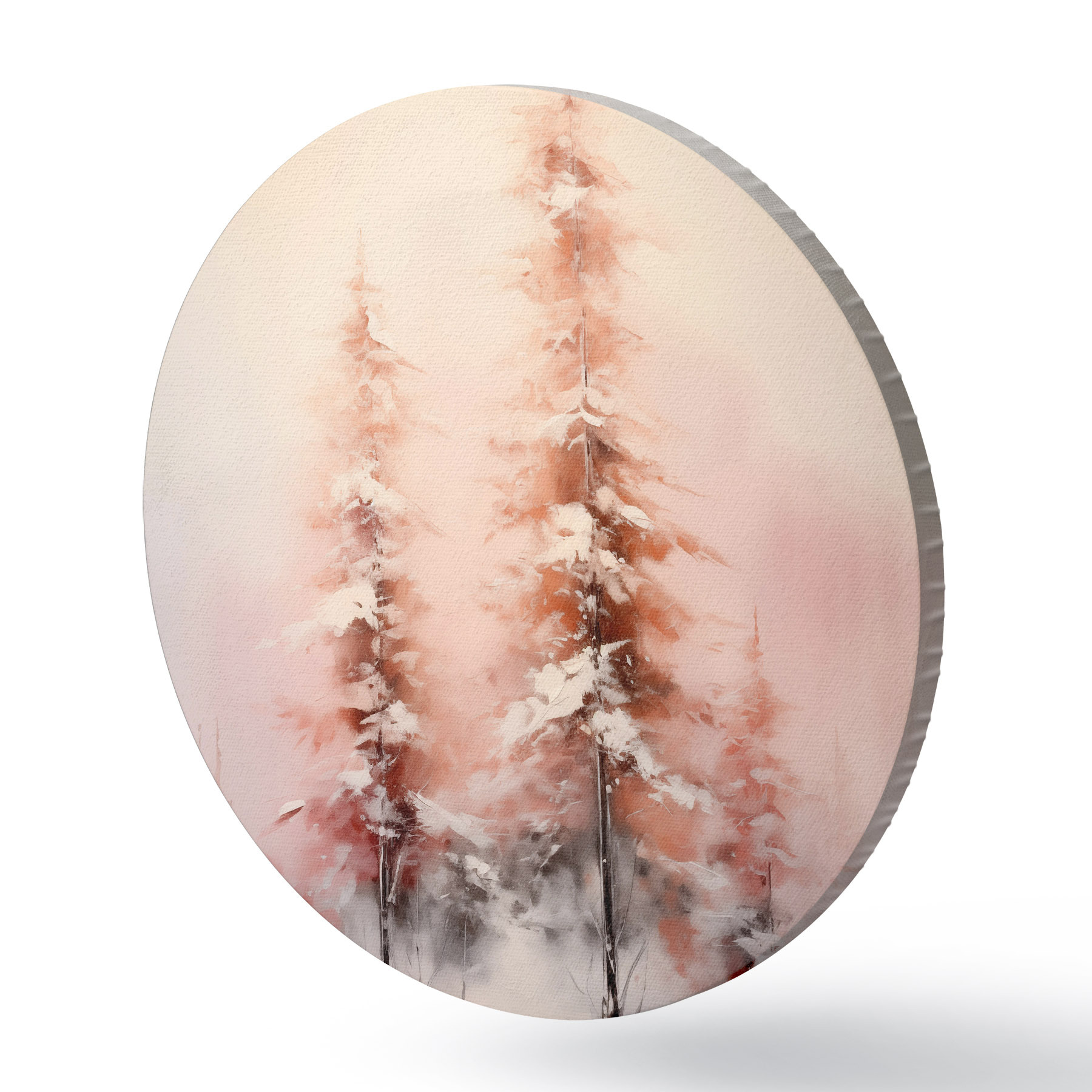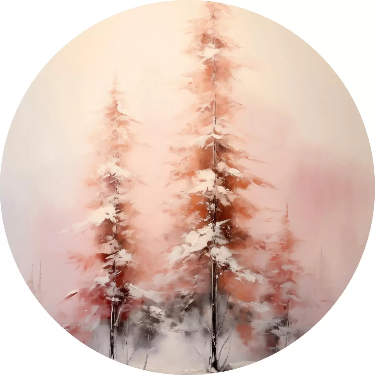 Runde Gemälde Wintertannen in der Morgendämmerung im Nebel r41470