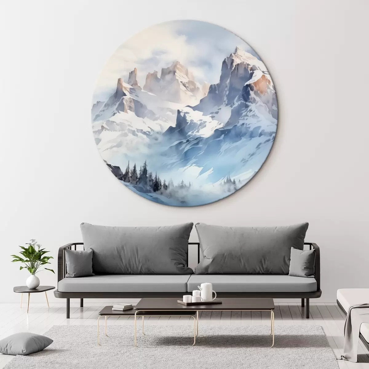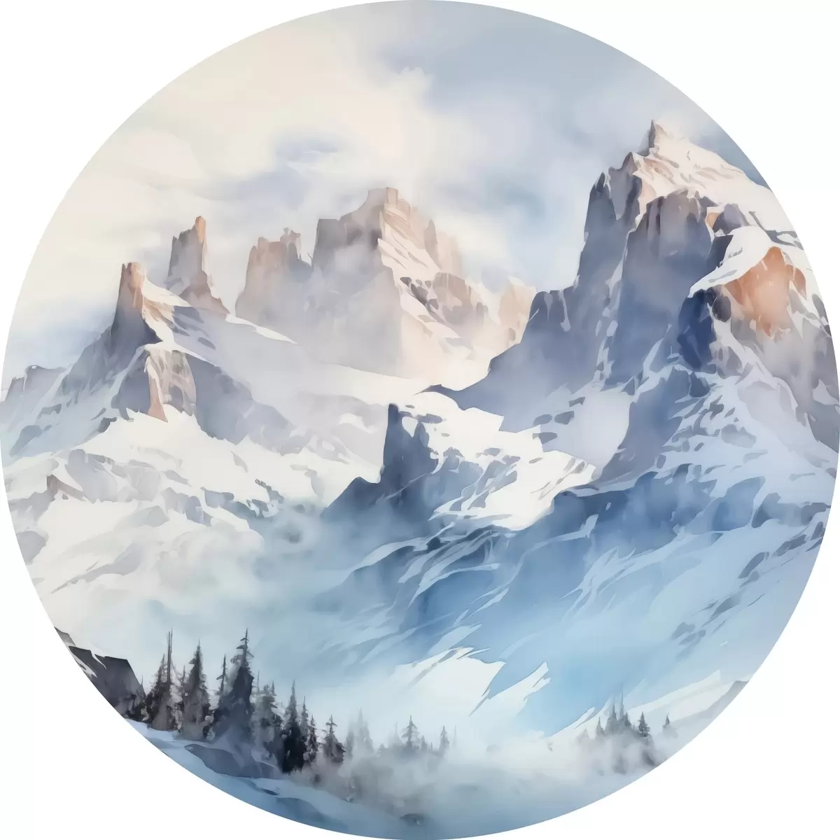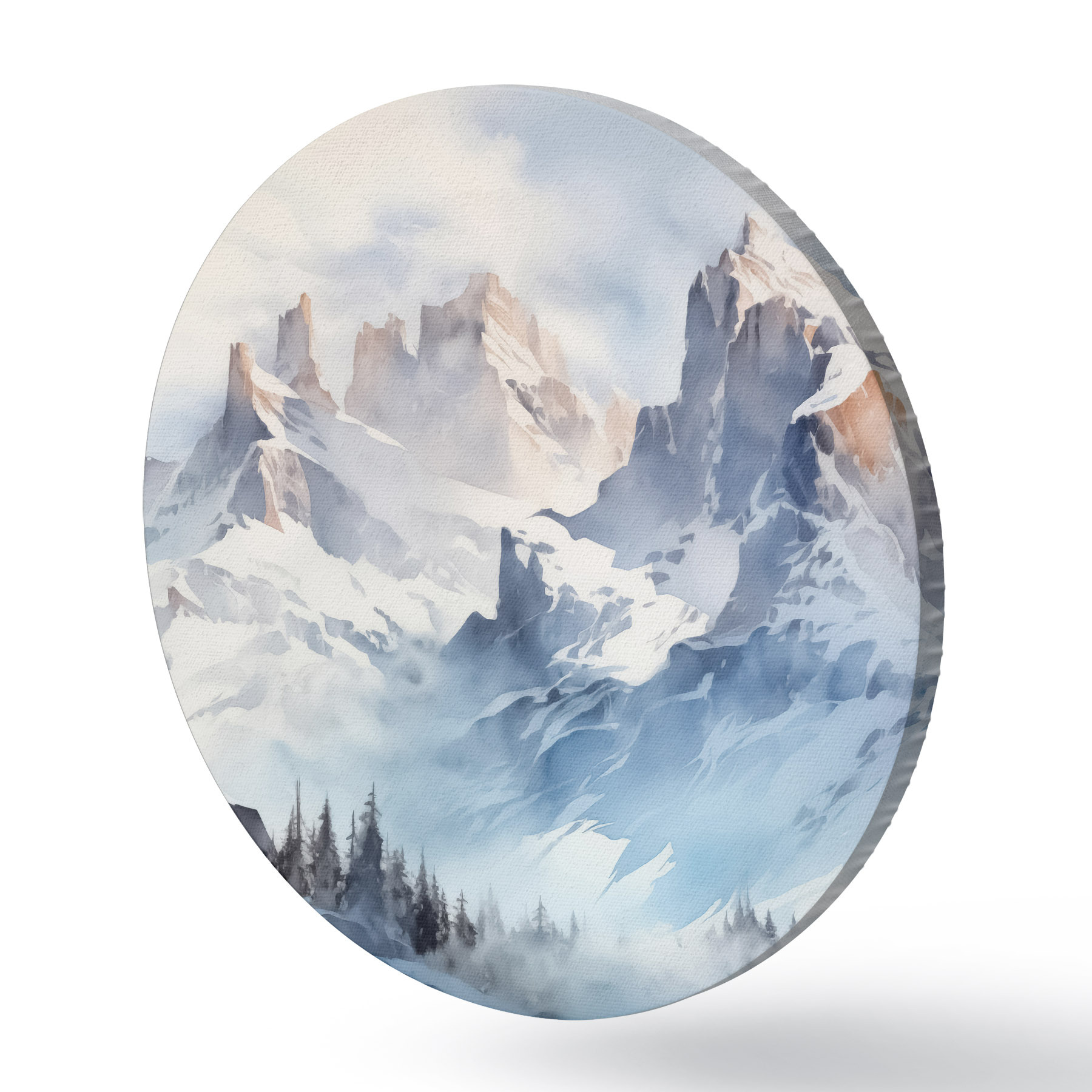 Runde Gemälde Verschneite Berge Aquarell r41471