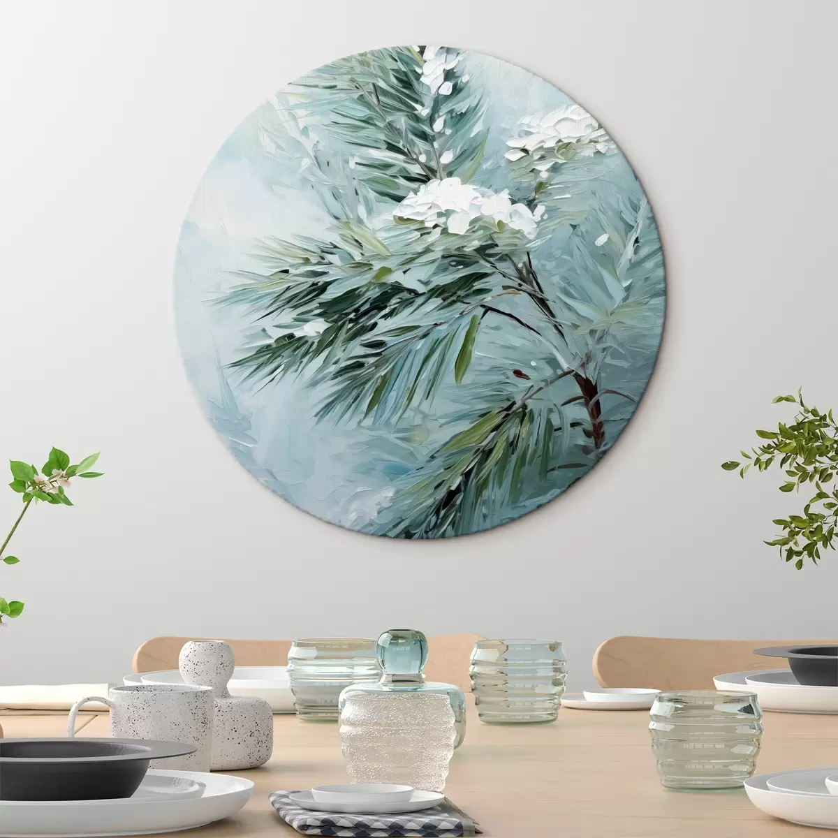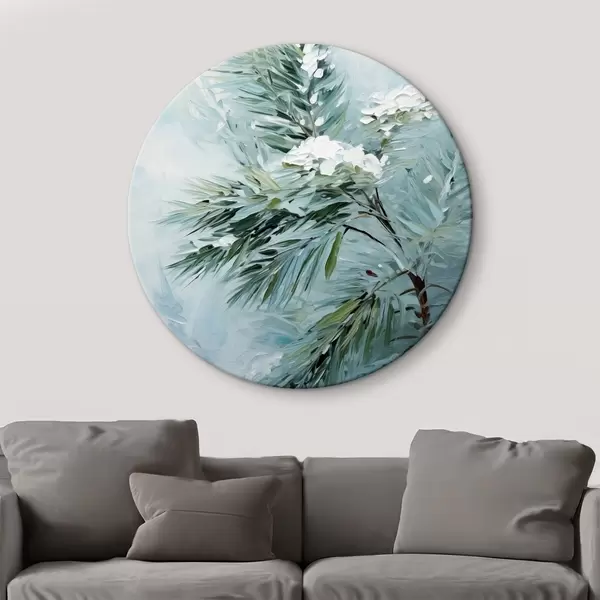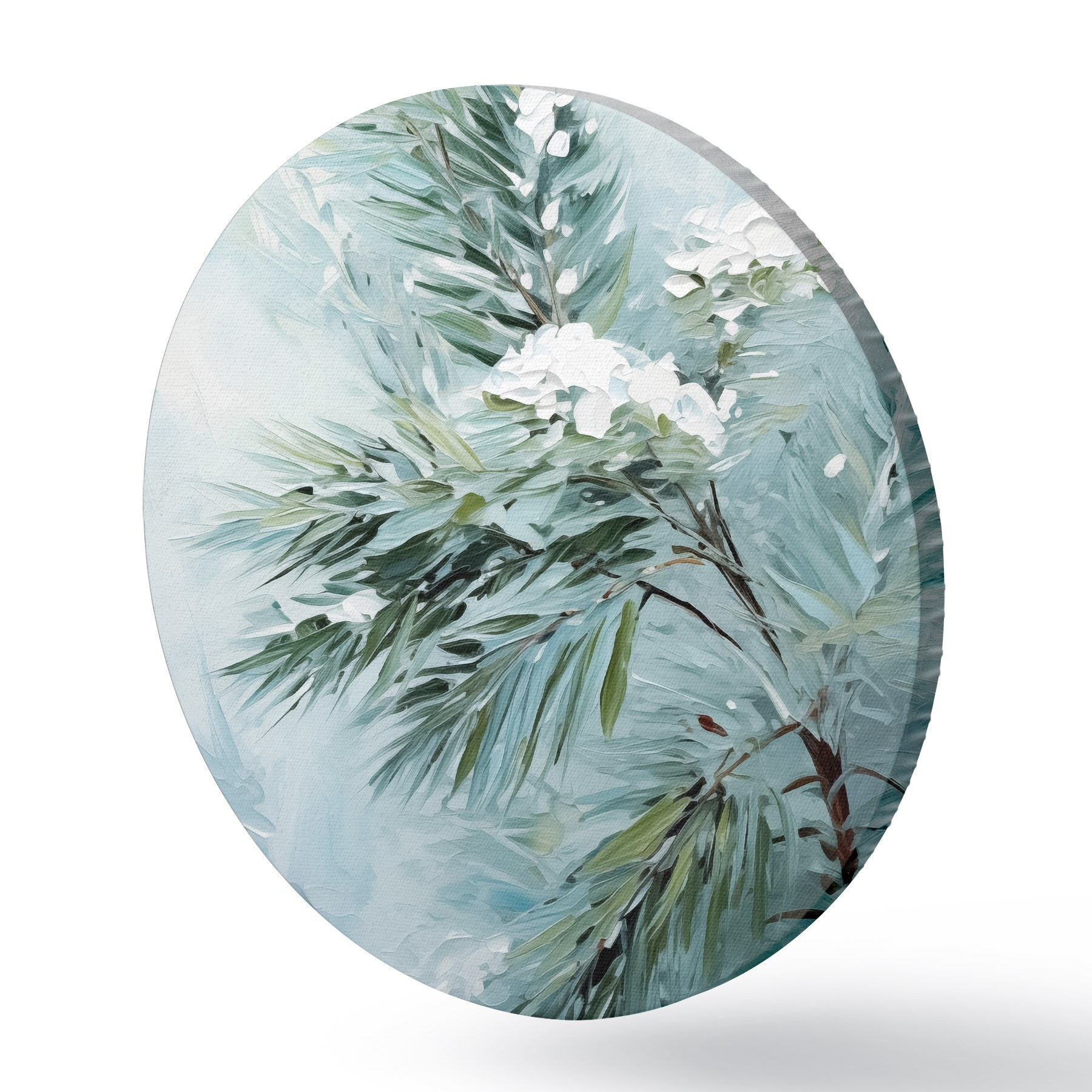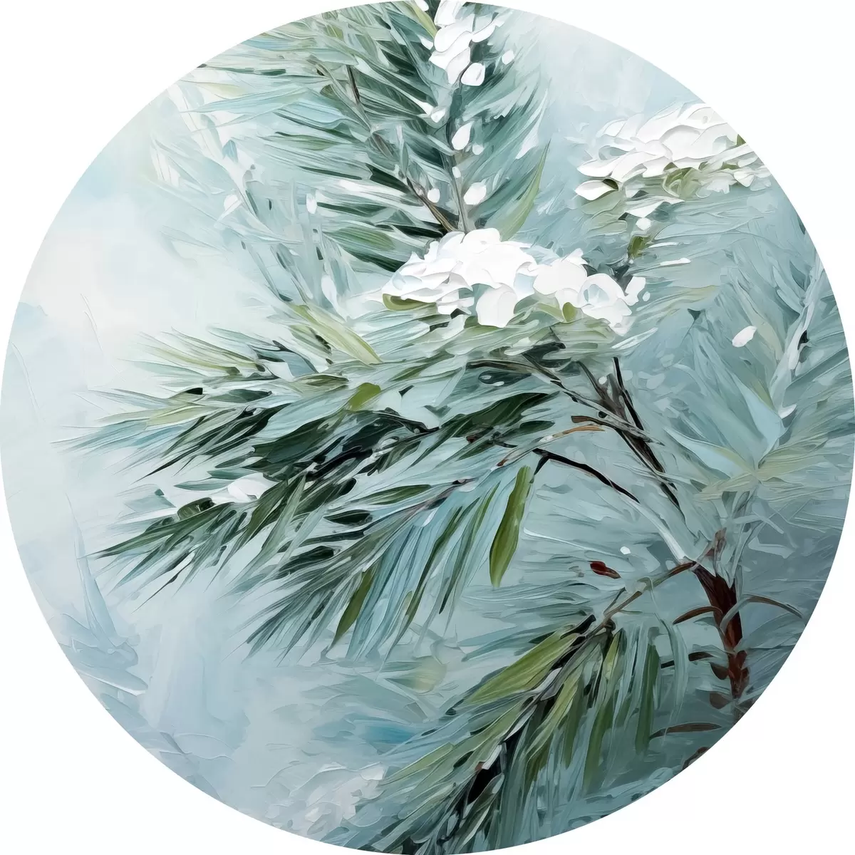 Runde Gemälde Fichtenzweig in einer verschneiten Imitation des Gemäldes r41474
