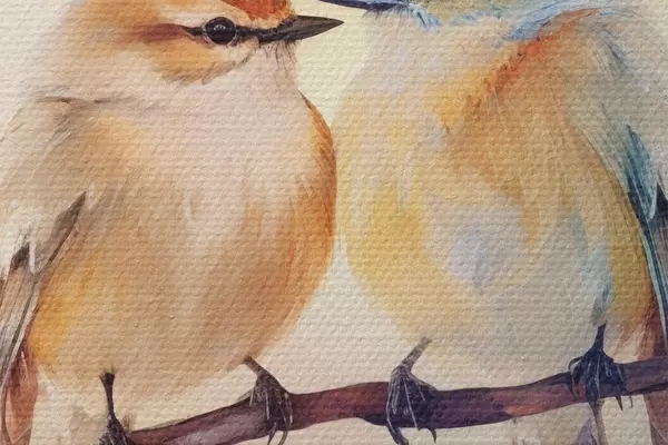 Bild Ein Vogelpaar sitzt auf einem blühenden Zweig Nr r41476