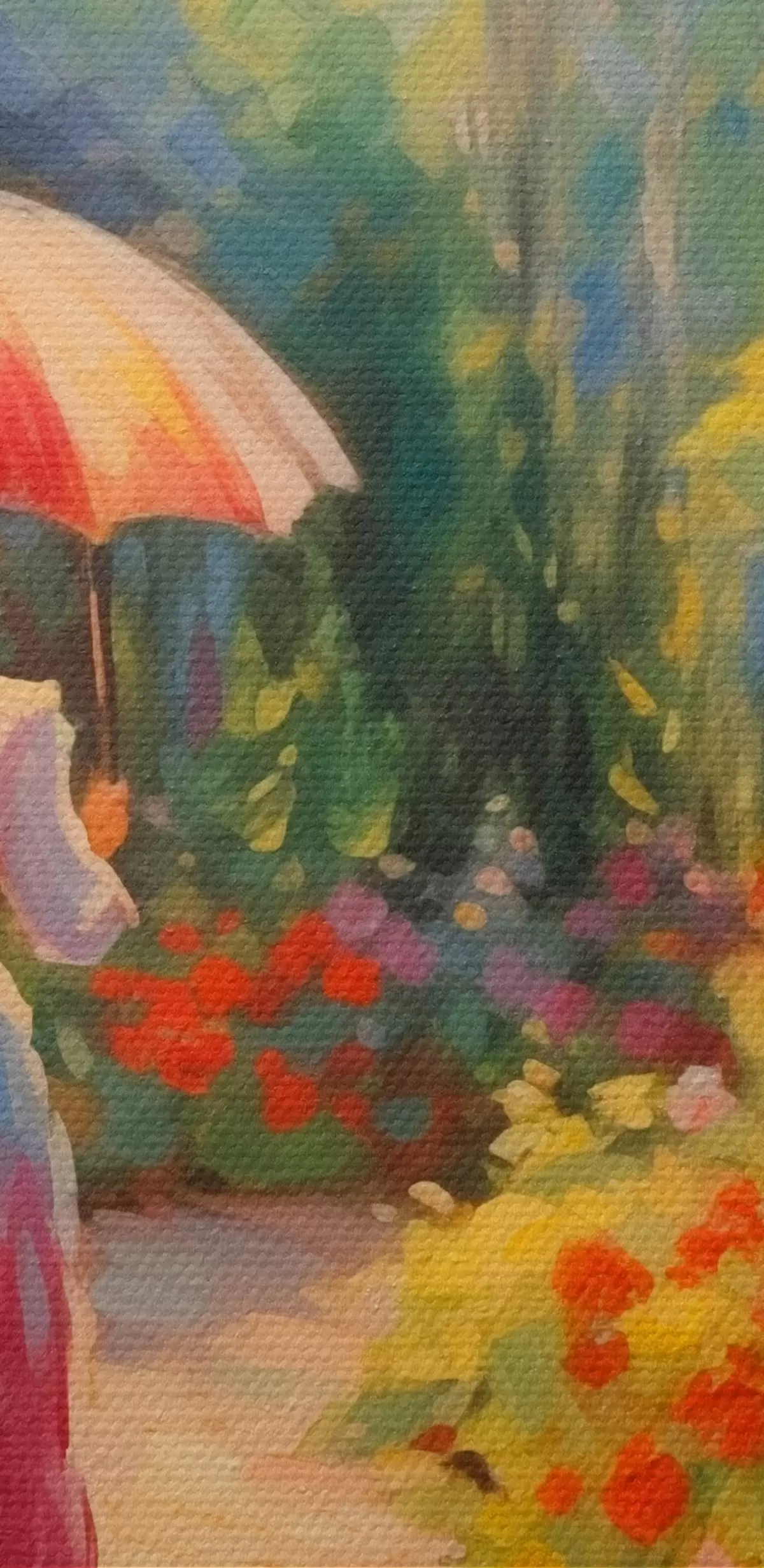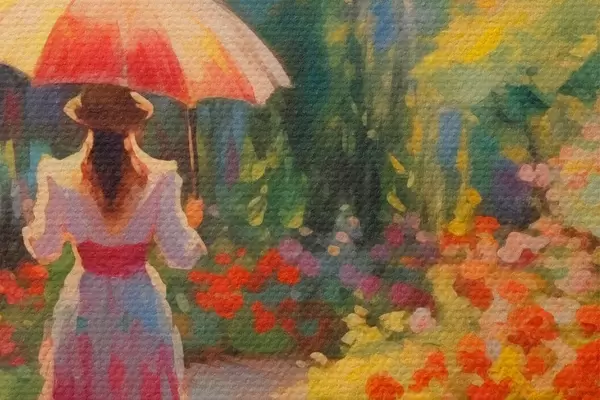 Bild Dame mit Regenschirm in einem blühenden Garten Nr r41495