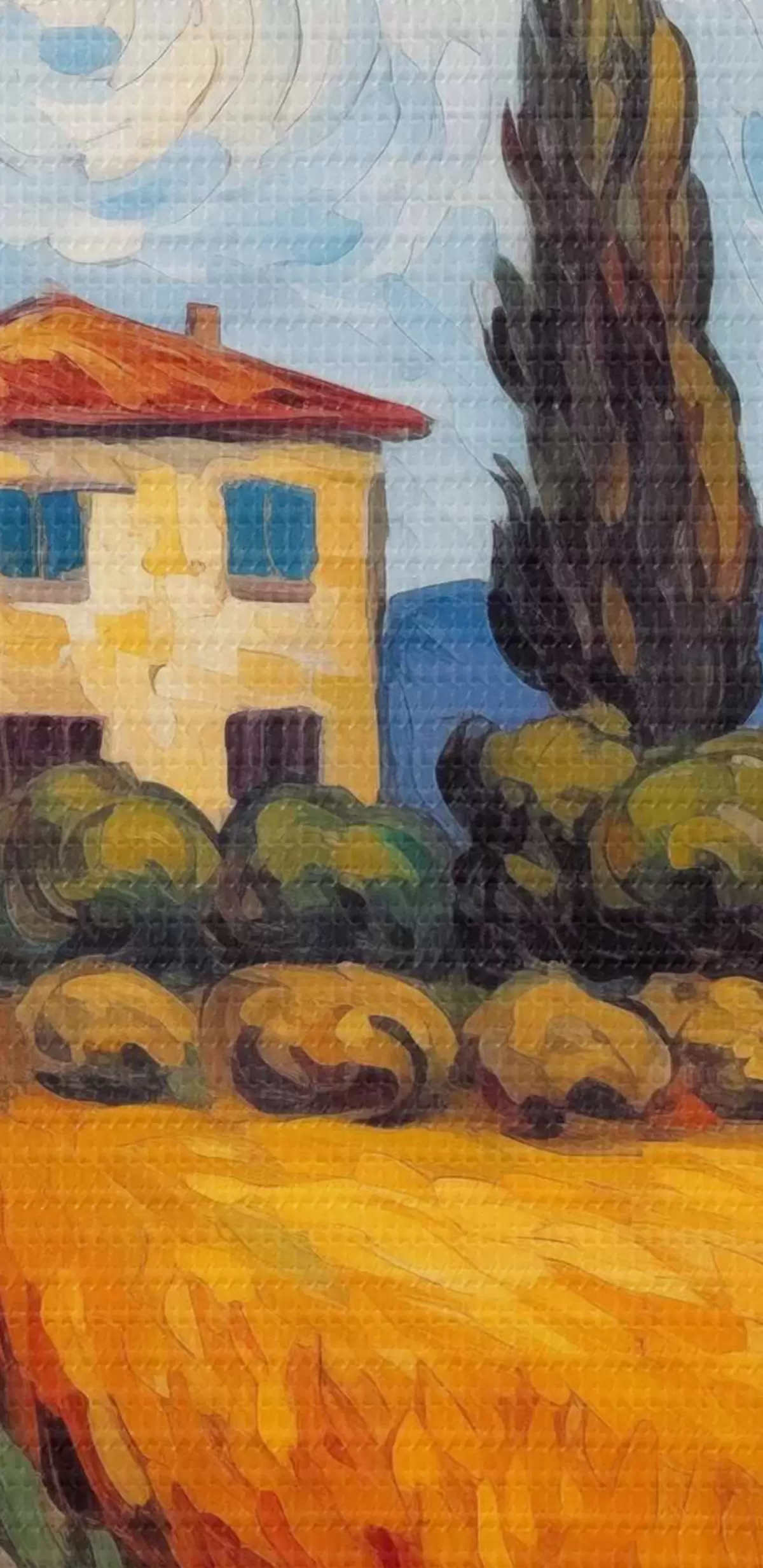 Drei Materialtypen stehen zur Verfügung: Economic Canvas - ein dichtes und haltbares Material für den Digitaldruck, identisch mit Malerleinwand, wasserfeste Oberfläche, realistische Wiedergabe von Details, mittelkörniges Material. Premium Canvas - die Textur ähnelt der einer Malerleinwand (verwobene kleine Fäden). Weiche, detaillierte Wiedergabe des Bildes auf einer matten Oberfläche. Eco-Premium - hochwertiges Gewebe aus 100% Baumwolle. Dank der natürlichen Baumwollfasern ist das Material langlebig und verschleißfest. Hervorragende Farbwiedergabe und Detailtreue.