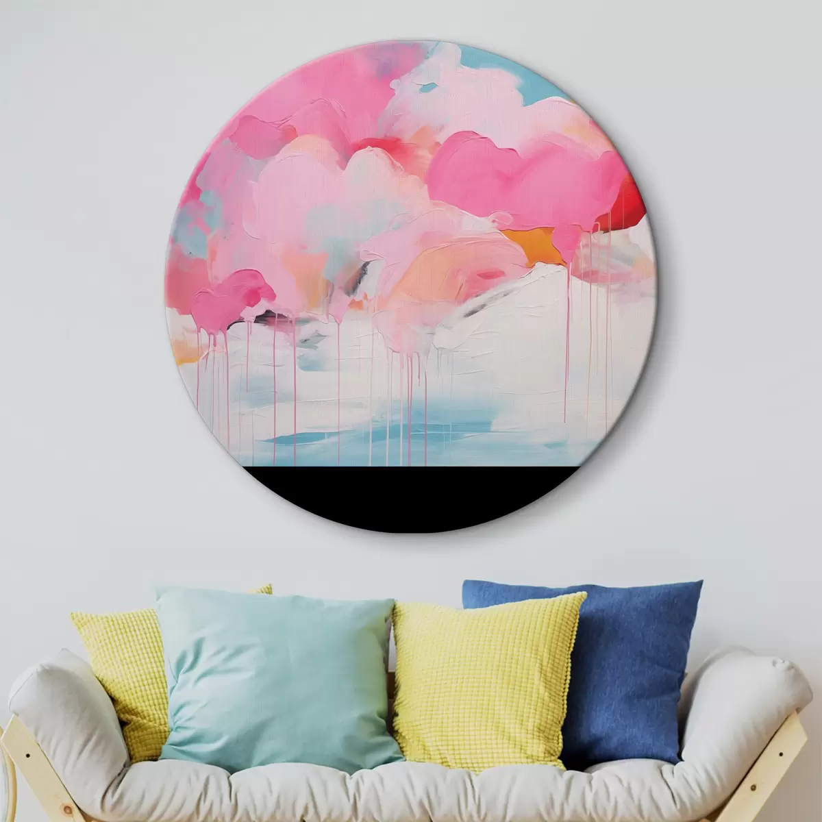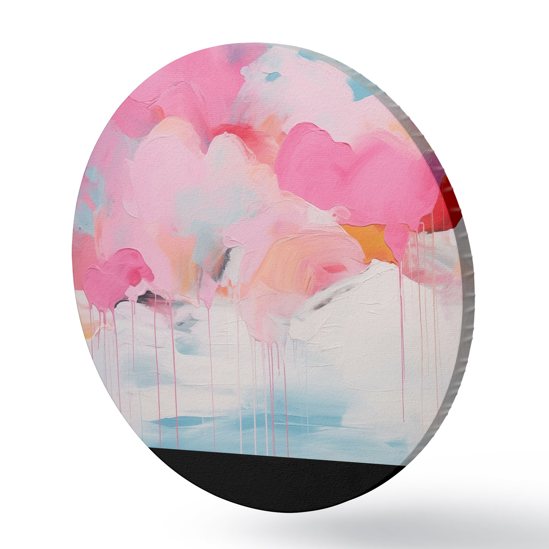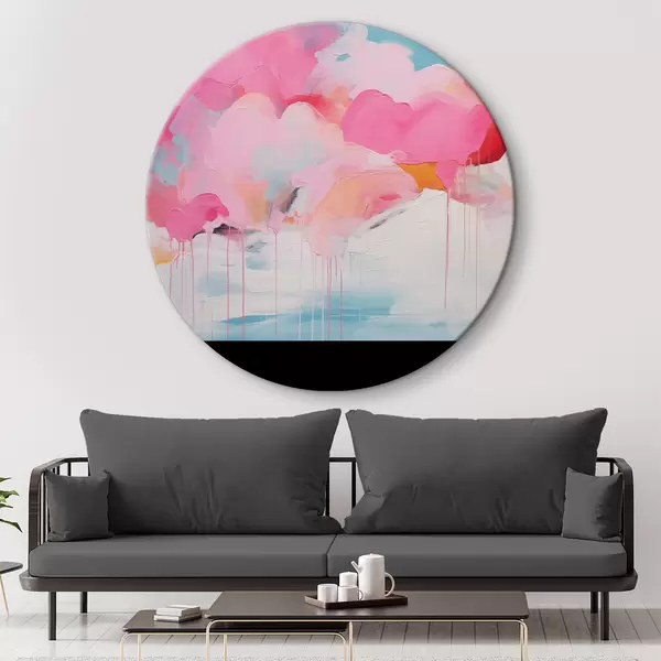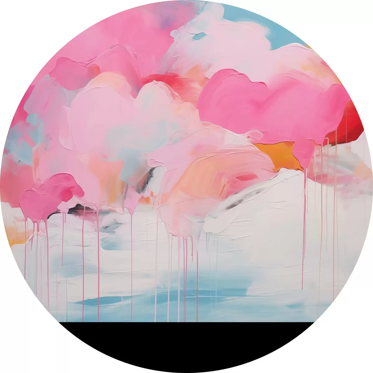 Runde Gemälde Rosa Wolken, helle Abstraktion mit weichen Linien r41502