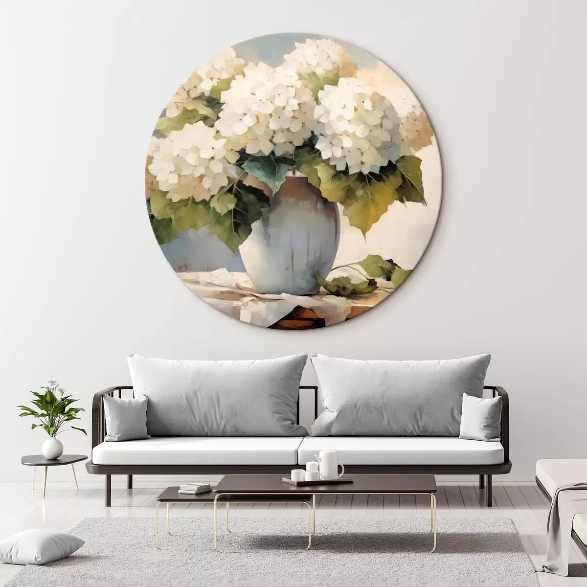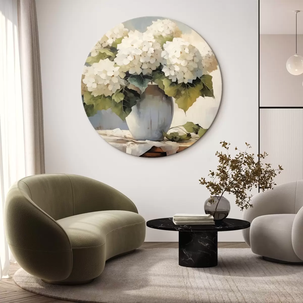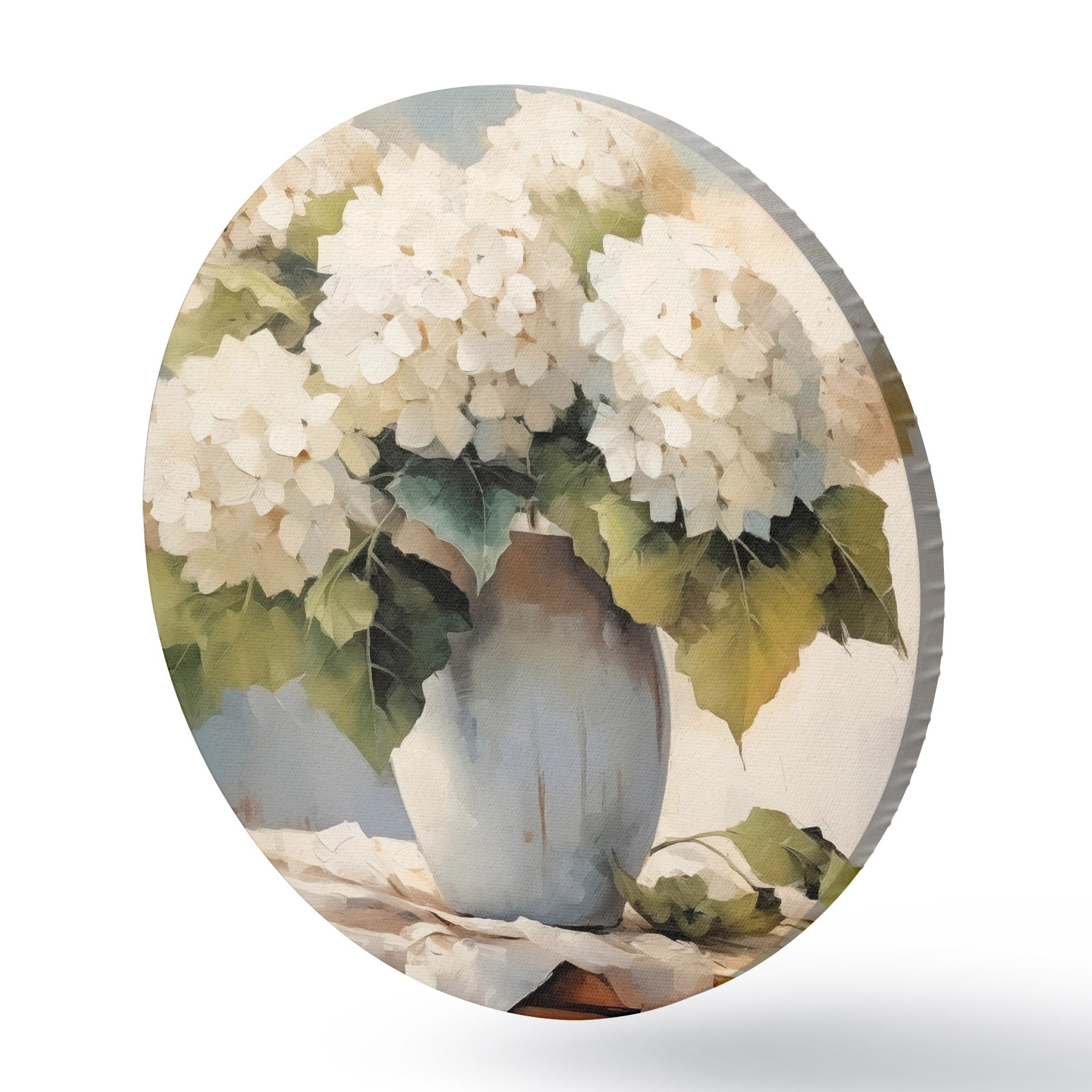 Runde Gemälde Vase mit Blumen auf dem Tisch r41761