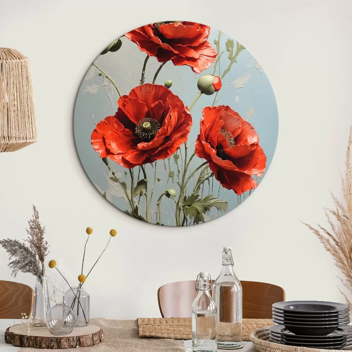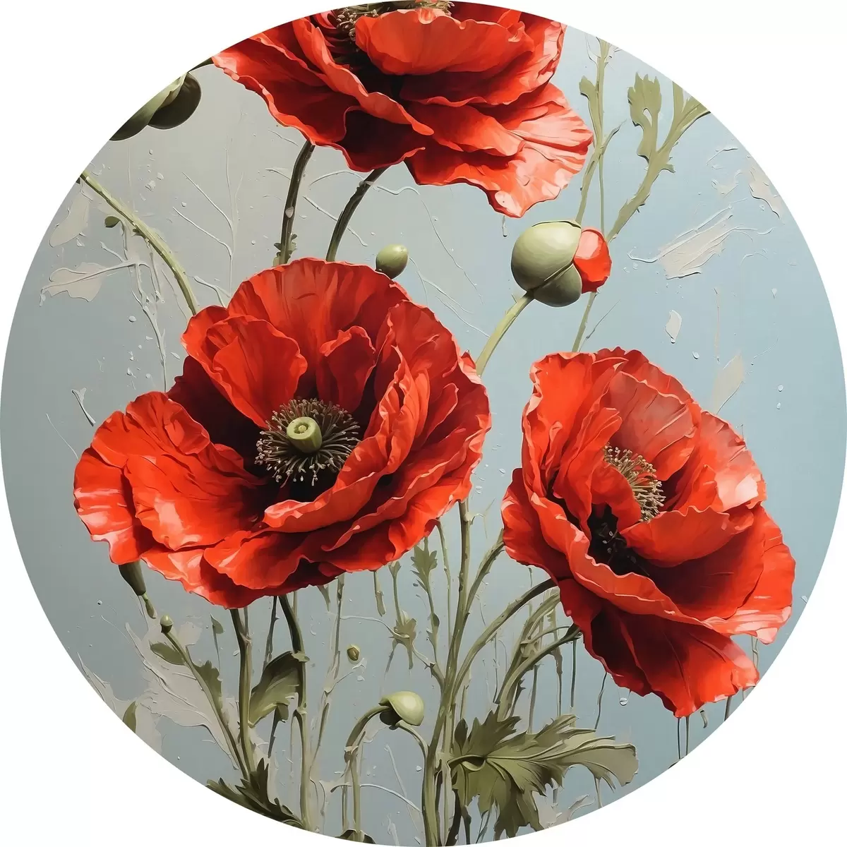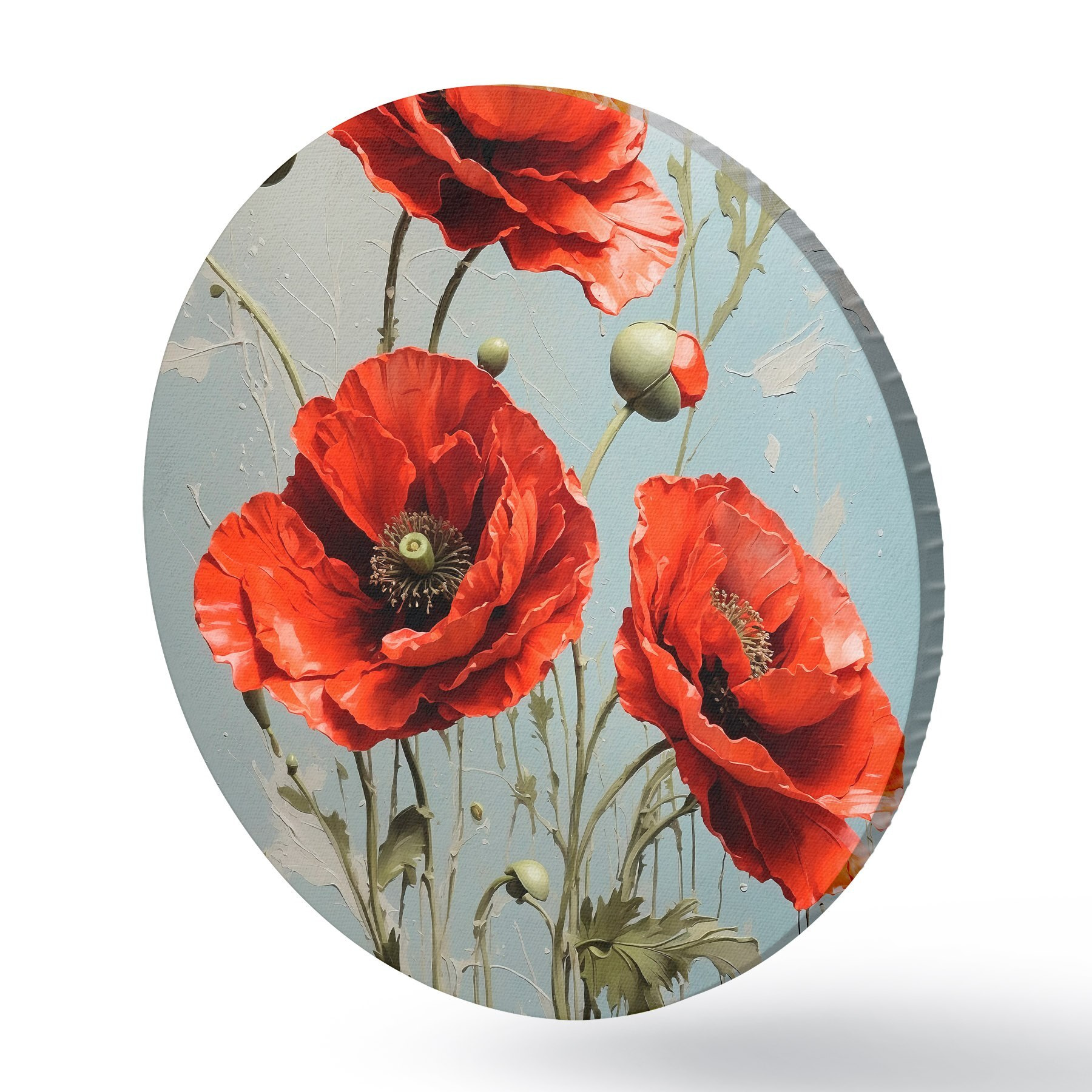 Runde Gemälde Mohnblumen auf blauem Hintergrund r41773