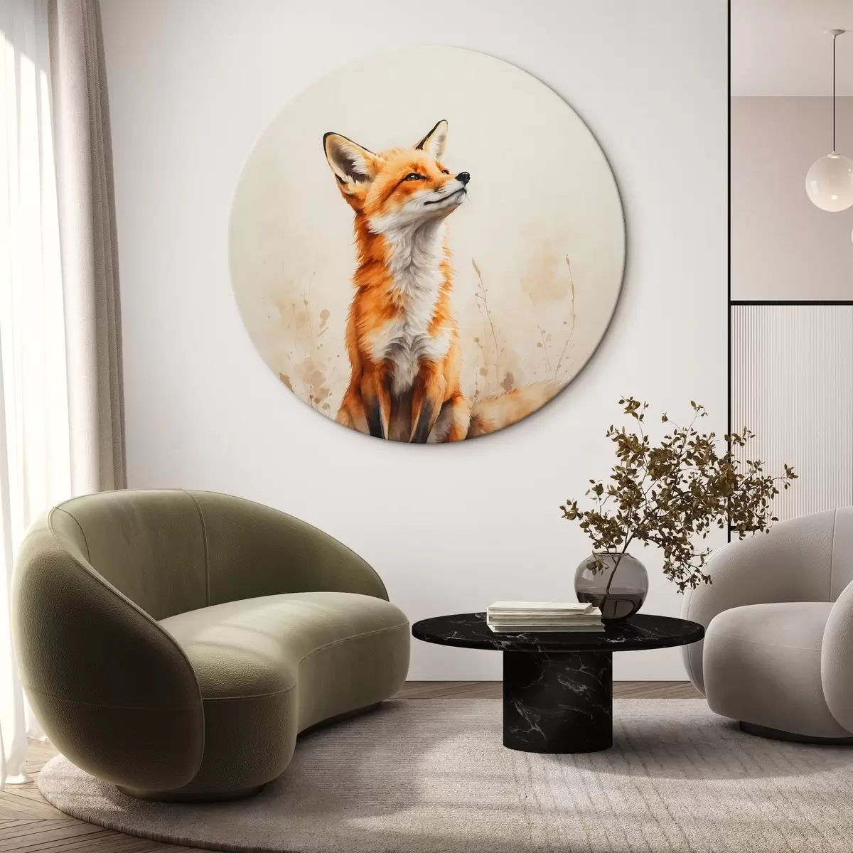 Runde Gemälde Fuchs auf beigem Hintergrund r41778