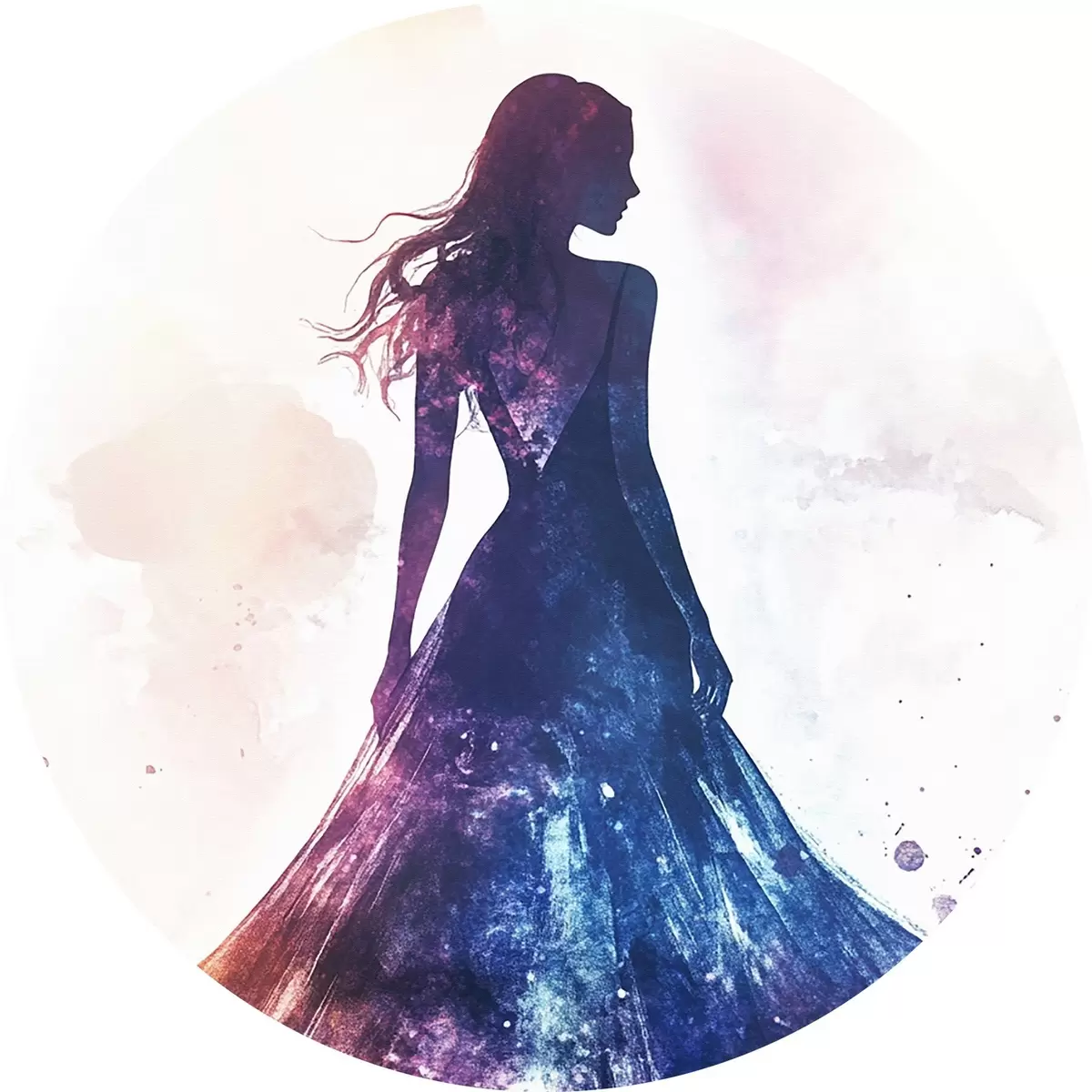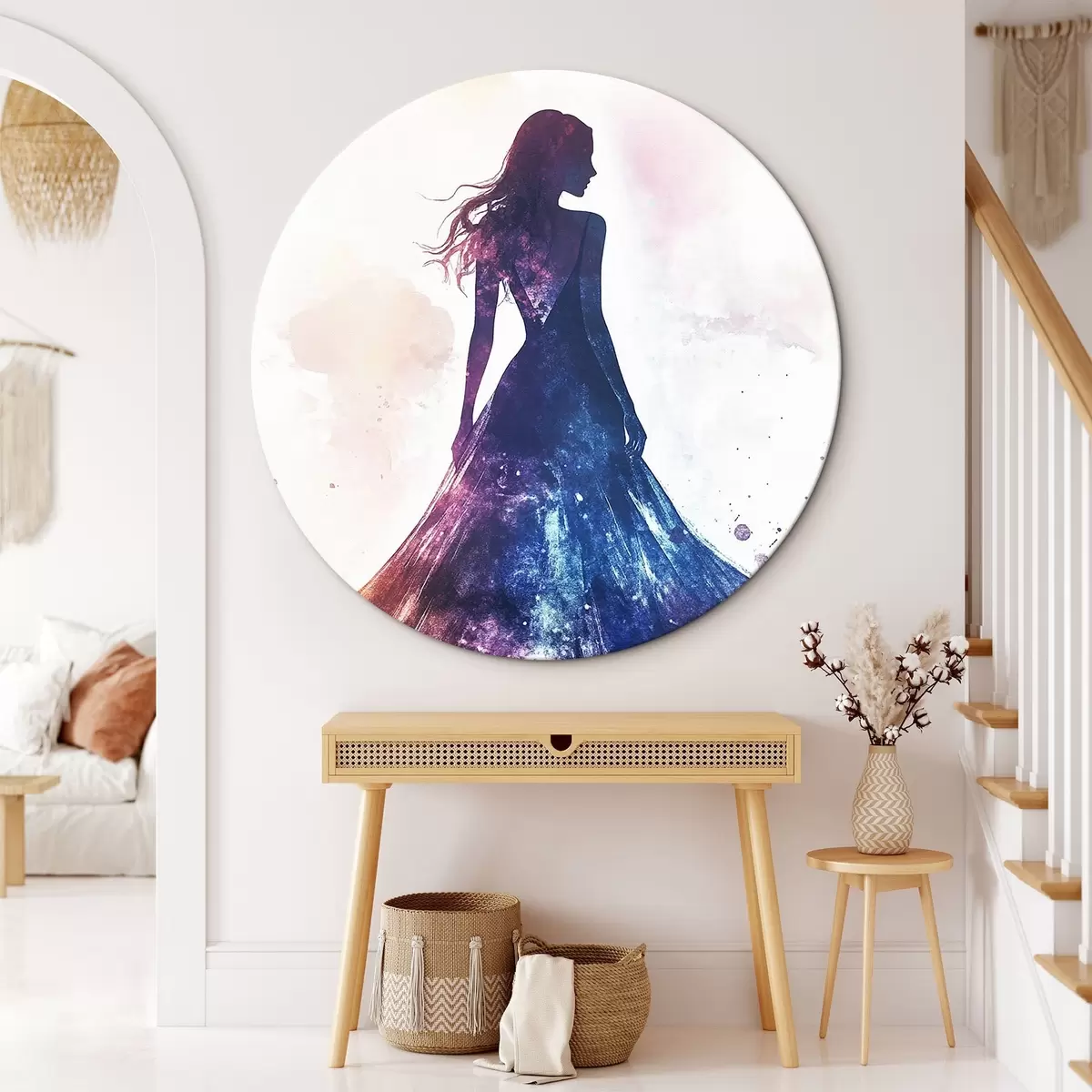 Runde Gemälde Silhouette eines Mädchens im Aquarellstil r42078