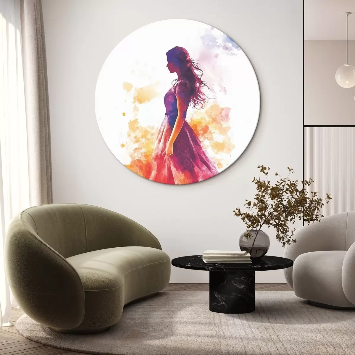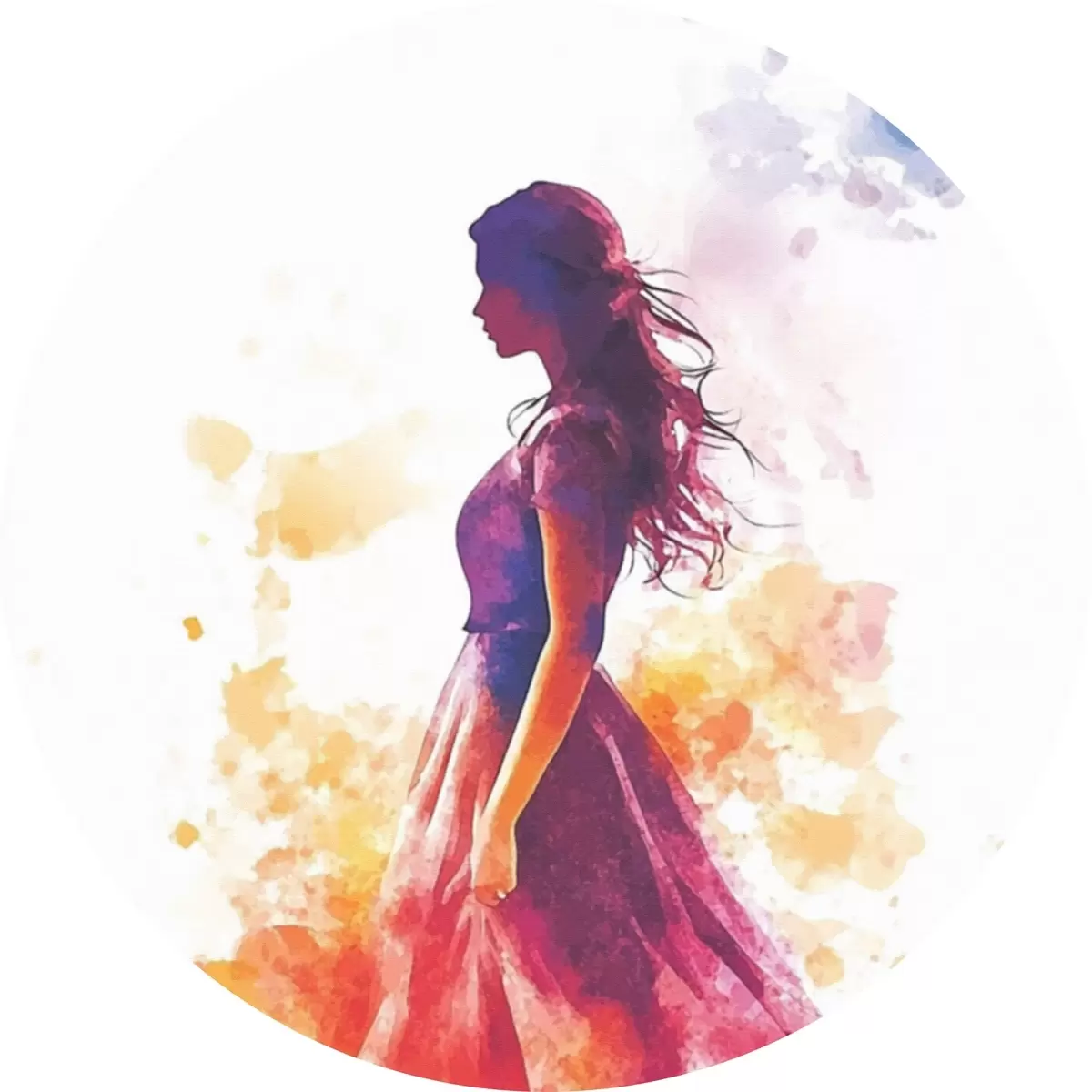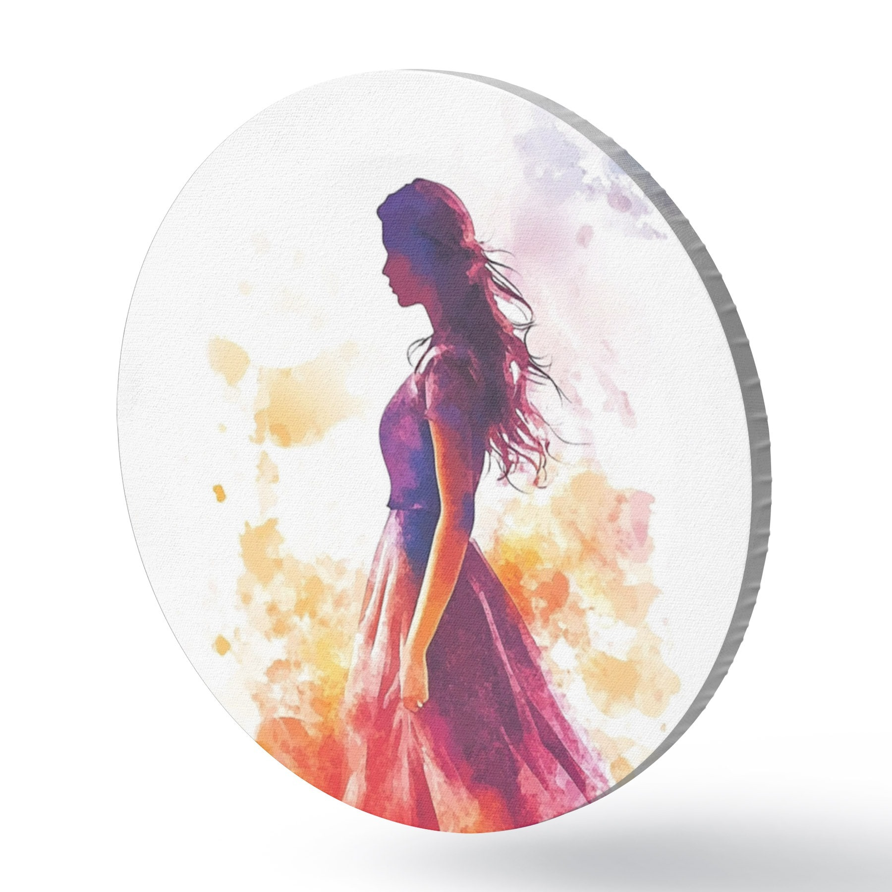 Runde Gemälde Porträt eines Mädchens im Aquarellstil r42080