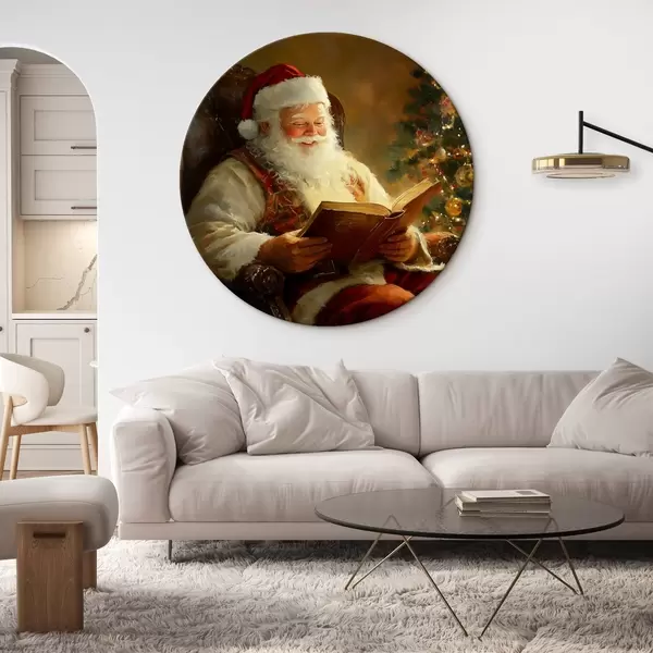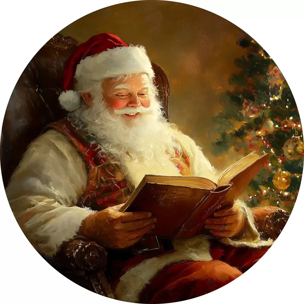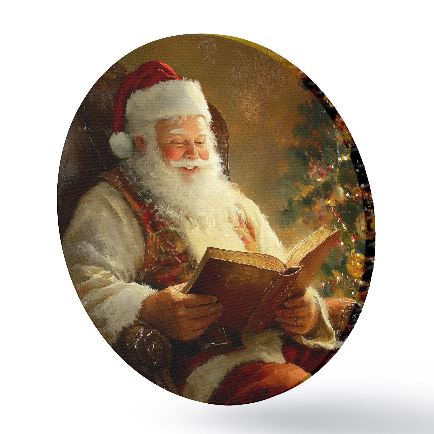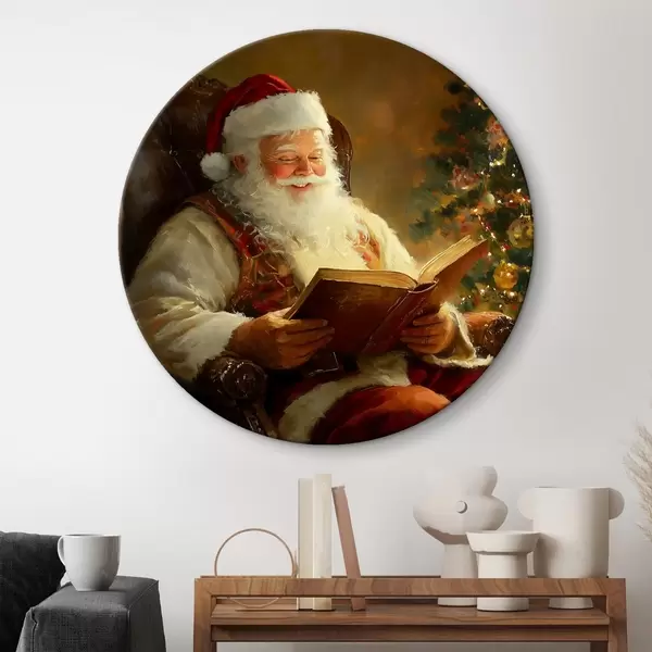 Runde Gemälde Der Weihnachtsmann liest ein Buch in der Nähe des Weihnachtsbaums r42100