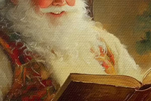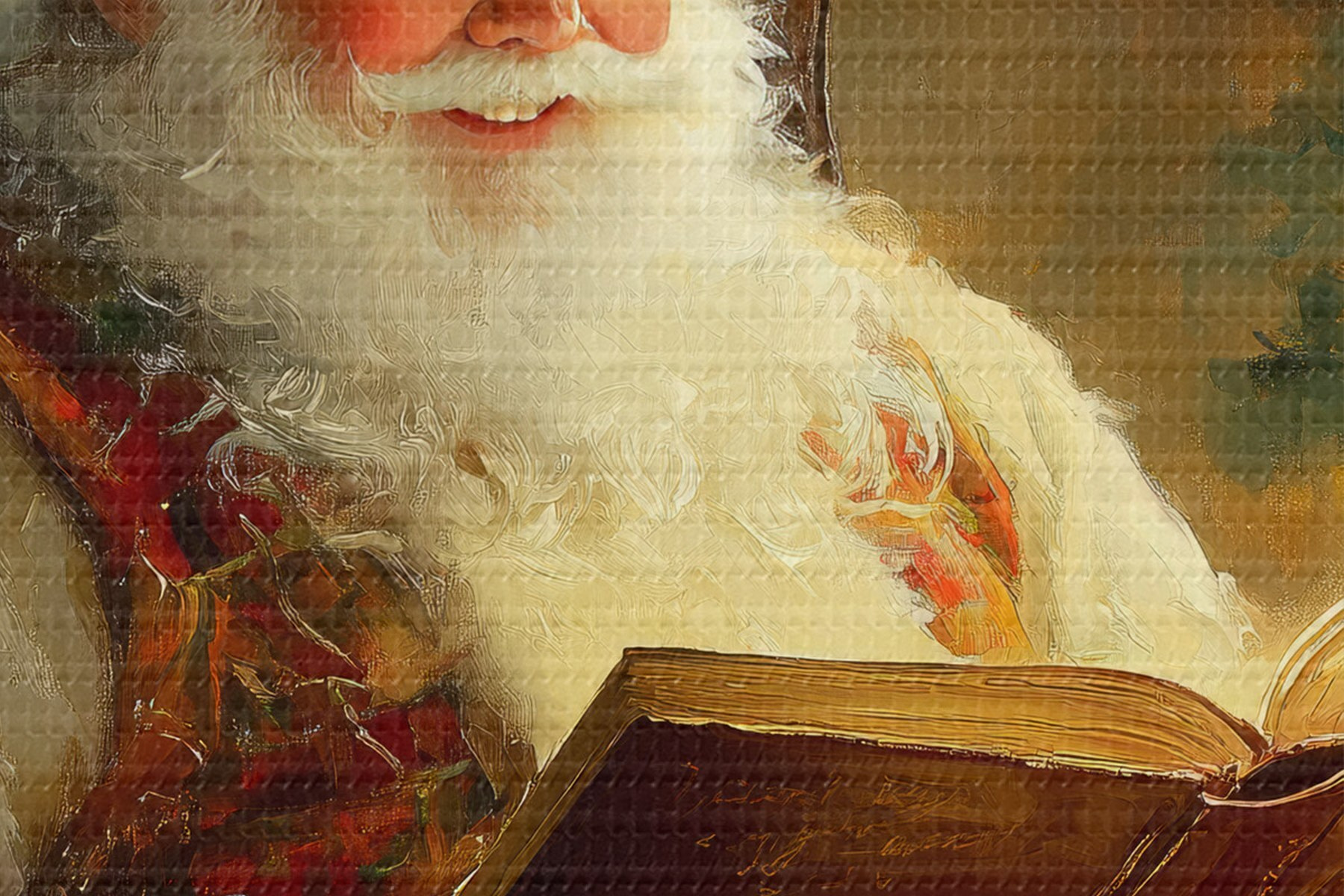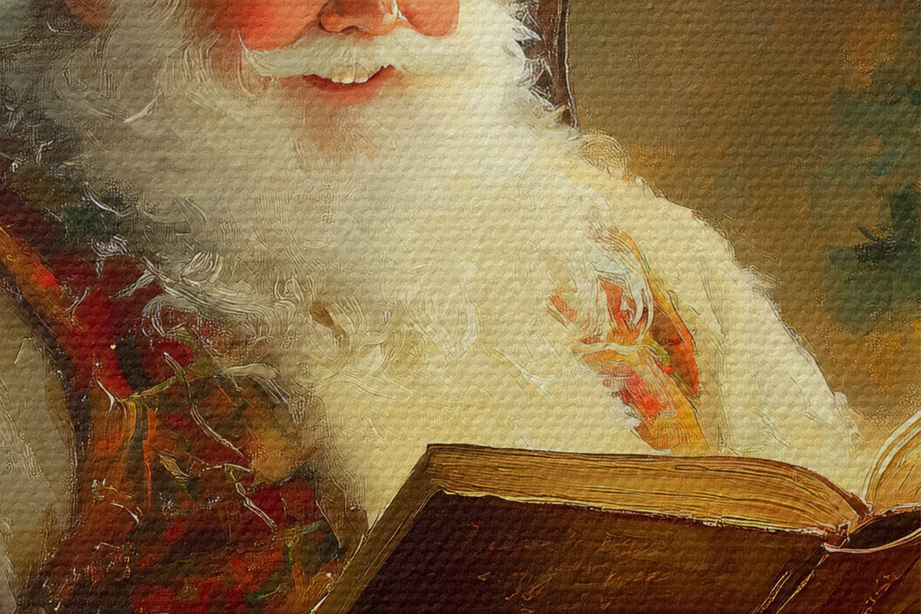 Bild Der Weihnachtsmann liest ein Buch in der Nähe des Weihnachtsbaums Nr r42100