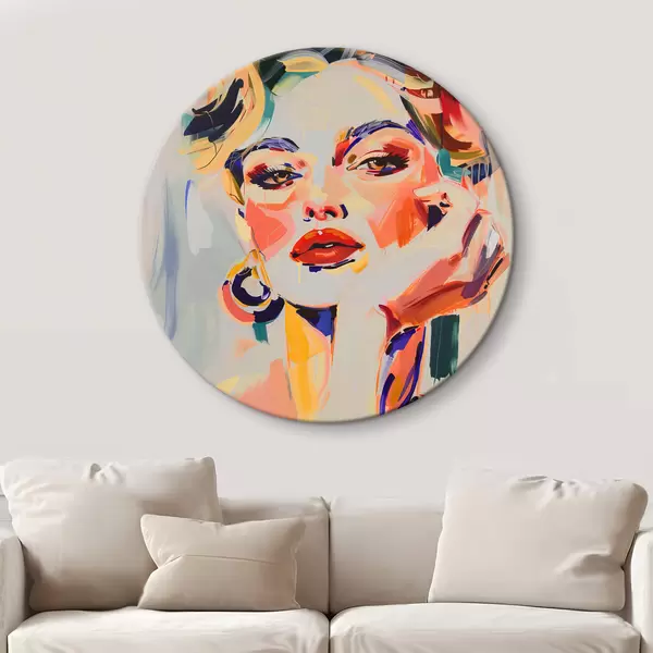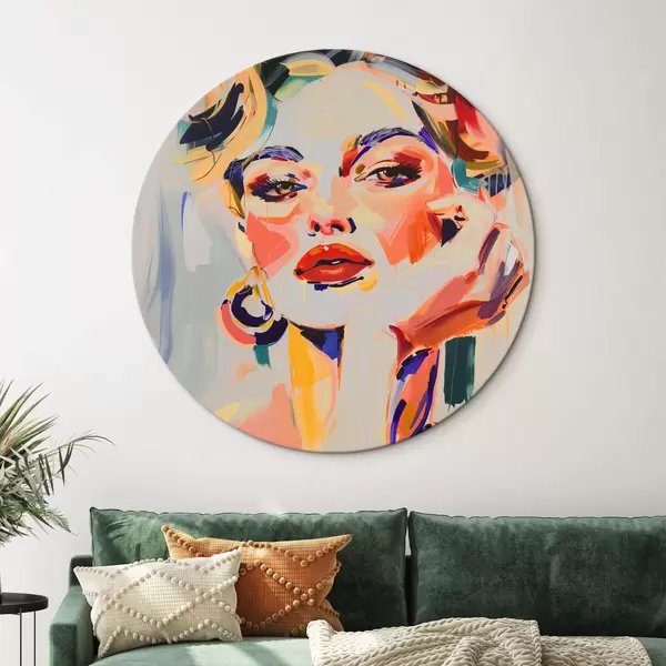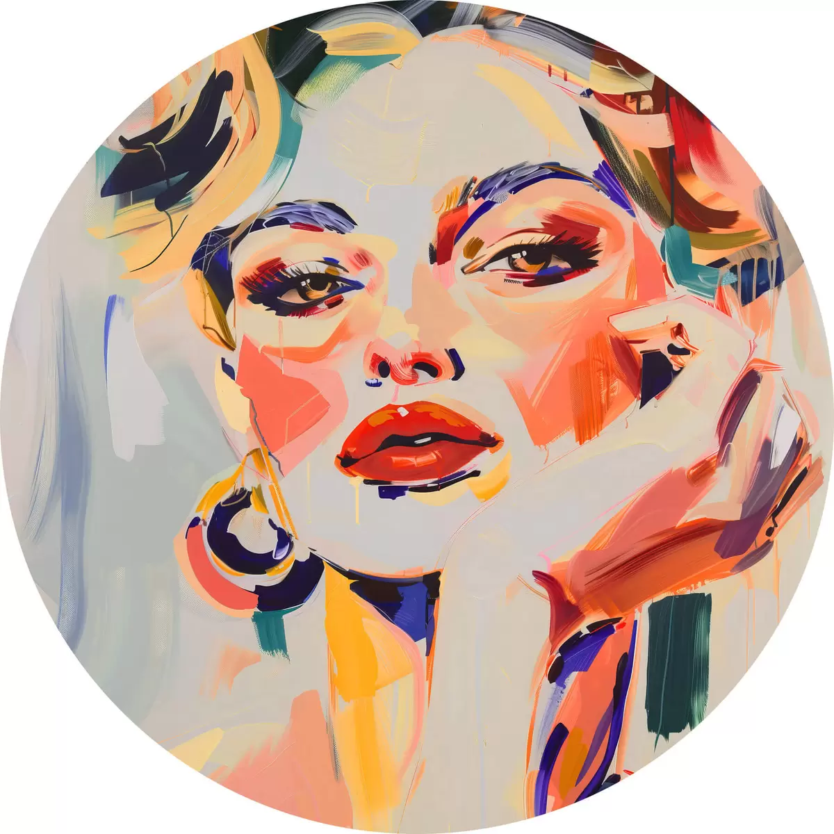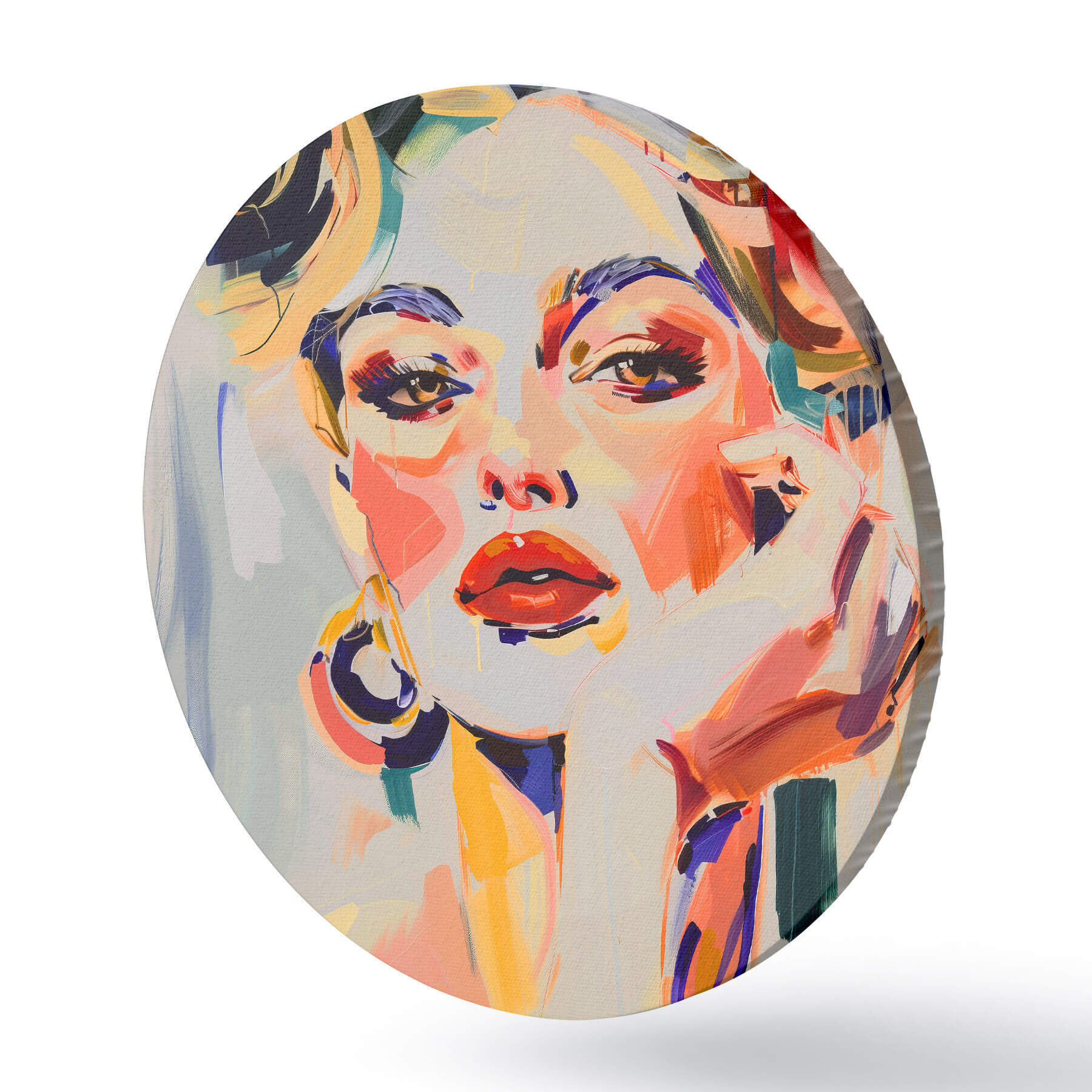 Runde Gemälde Porträt einer Frau mit mehrfarbigen Strichen r42111