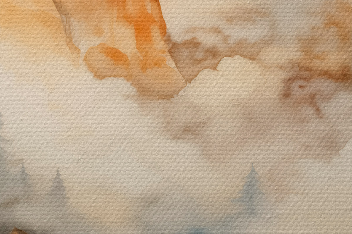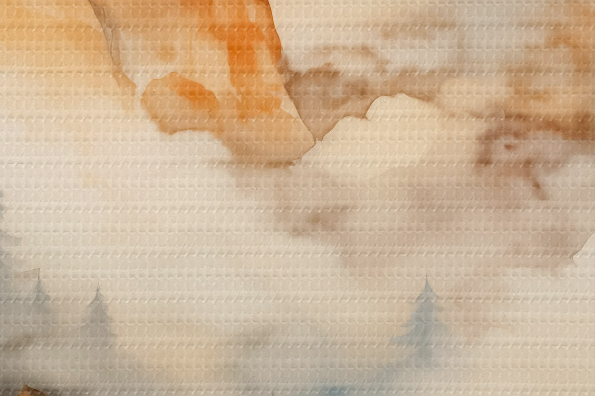 Bild Wald und Berge Nachahmung von Aquarell, orange Farbtöne Nr r42119