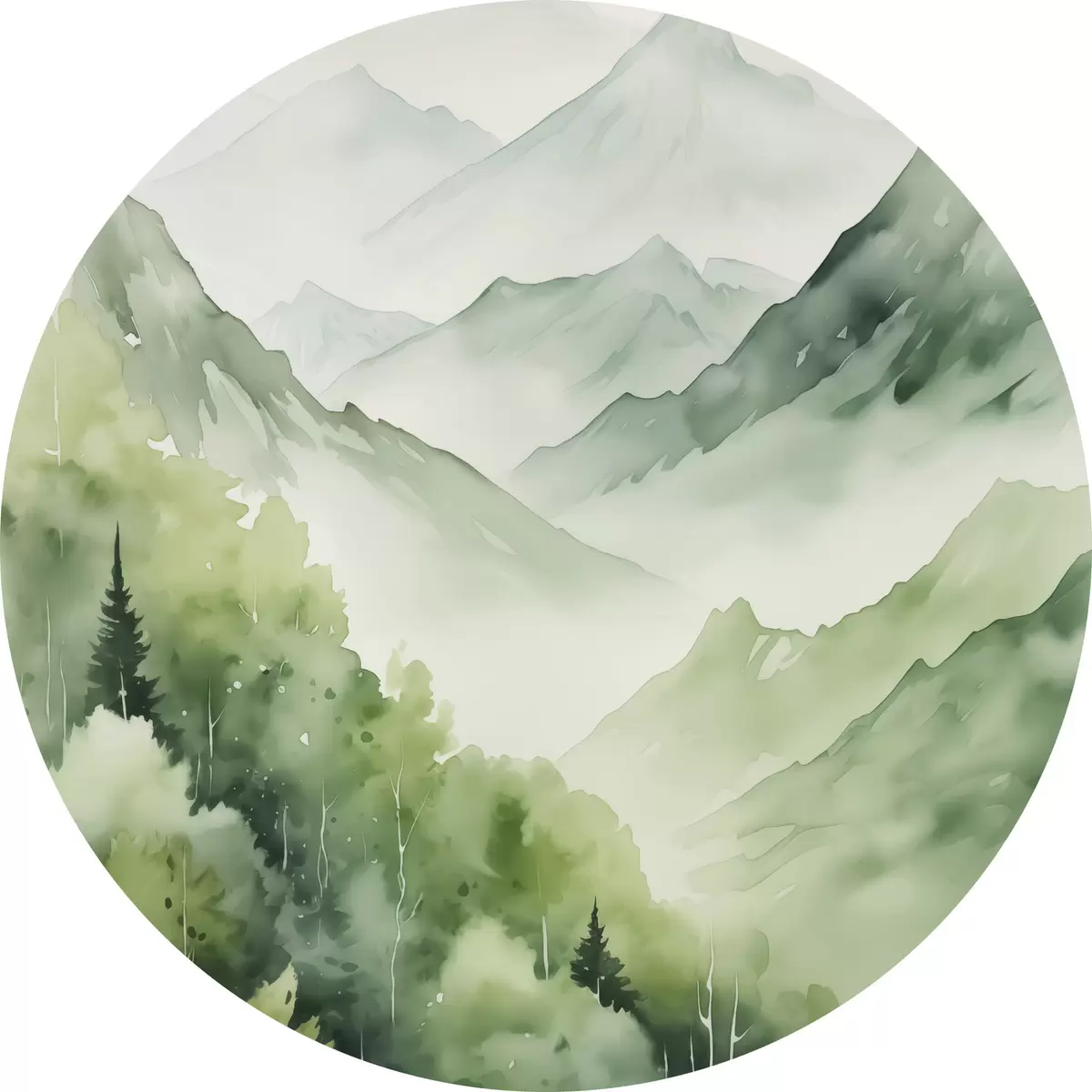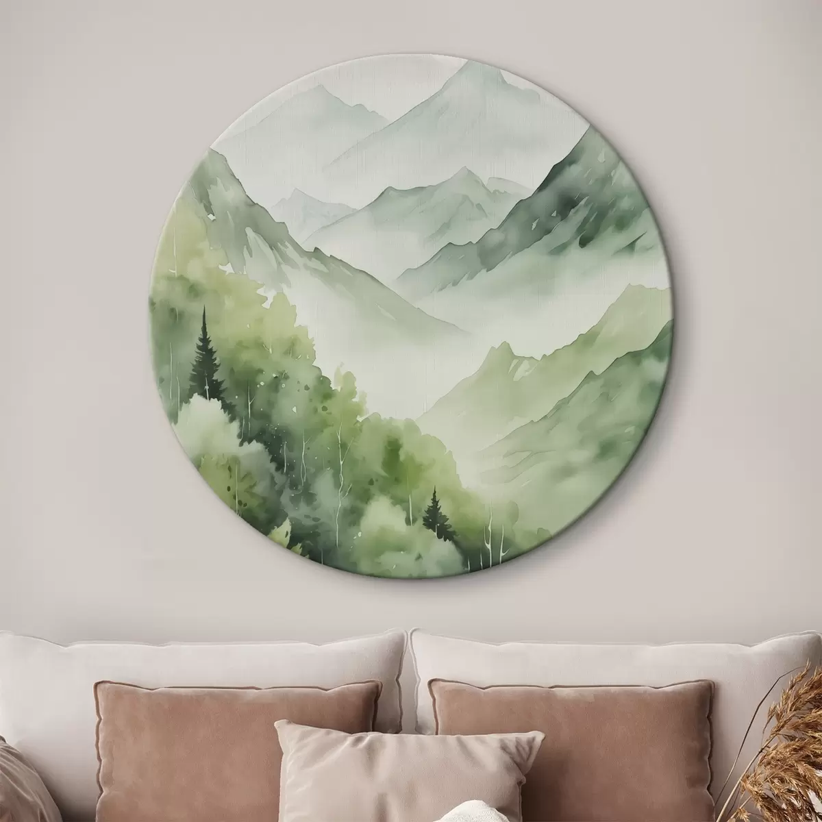 Runde Gemälde Laubwald in den Bergen Nachahmung des Aquarells r42122