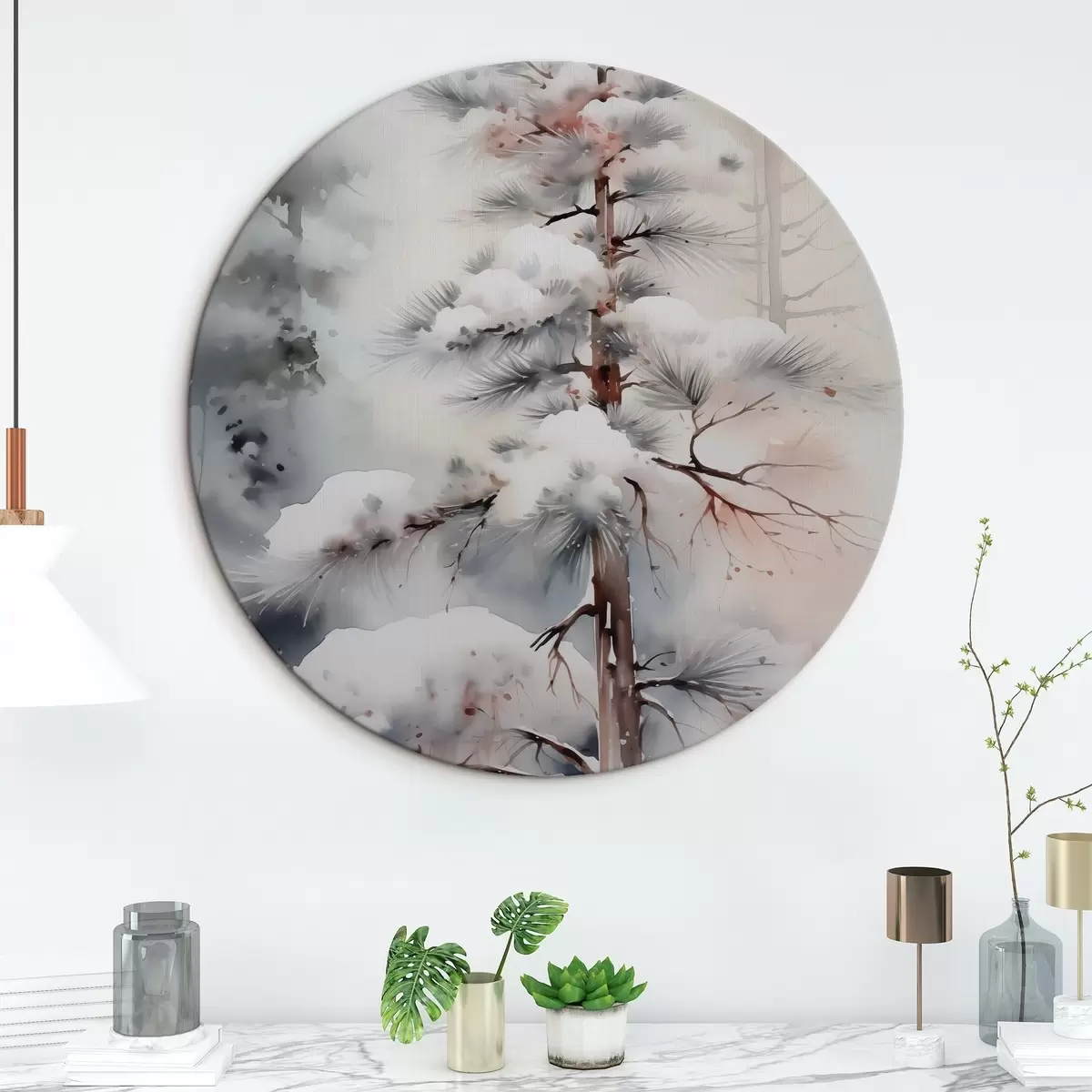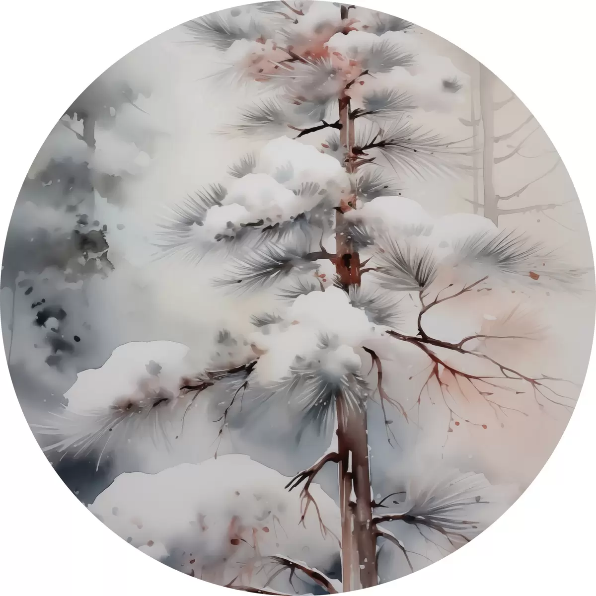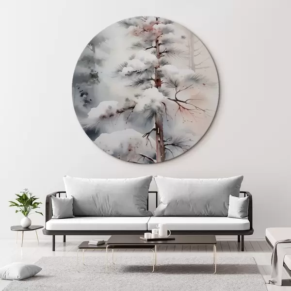 Runde Gemälde Baum in verschneitem Wald Nachahmung von Aquarell r42139