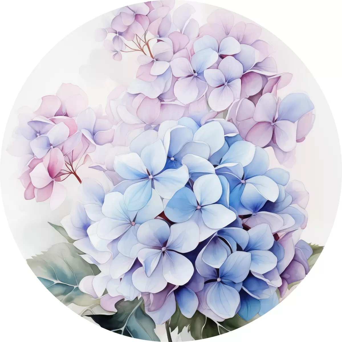 Runde Gemälde Zweig mit Hortensienblüten Nachahmung Aquarell r42143