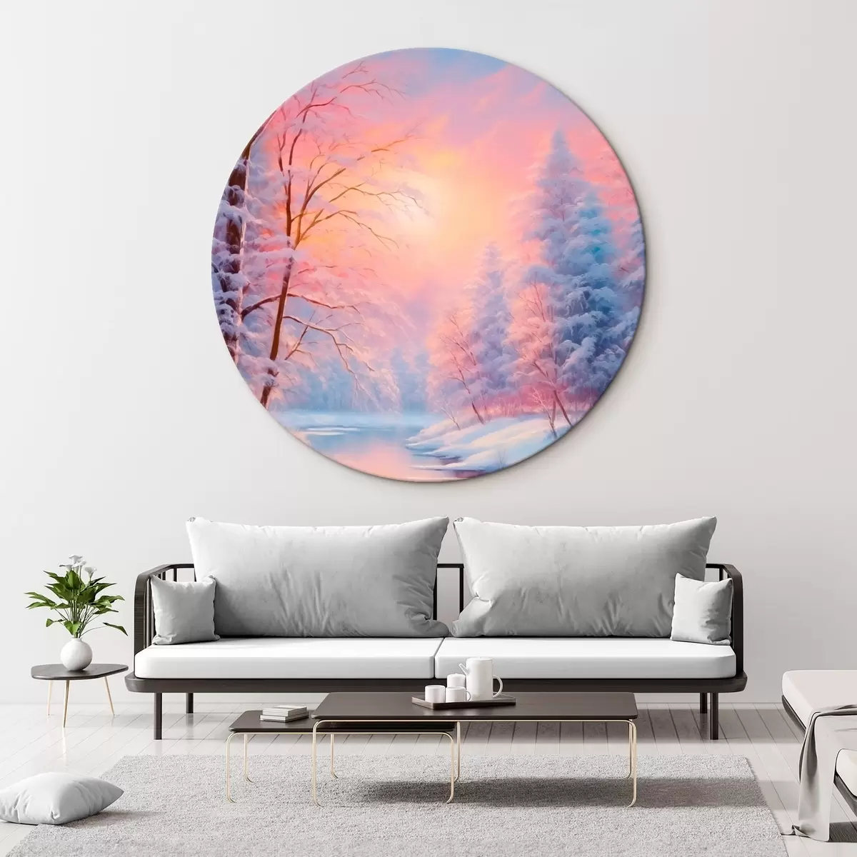 Runde Gemälde Wintermärchen am Fluss r42149
