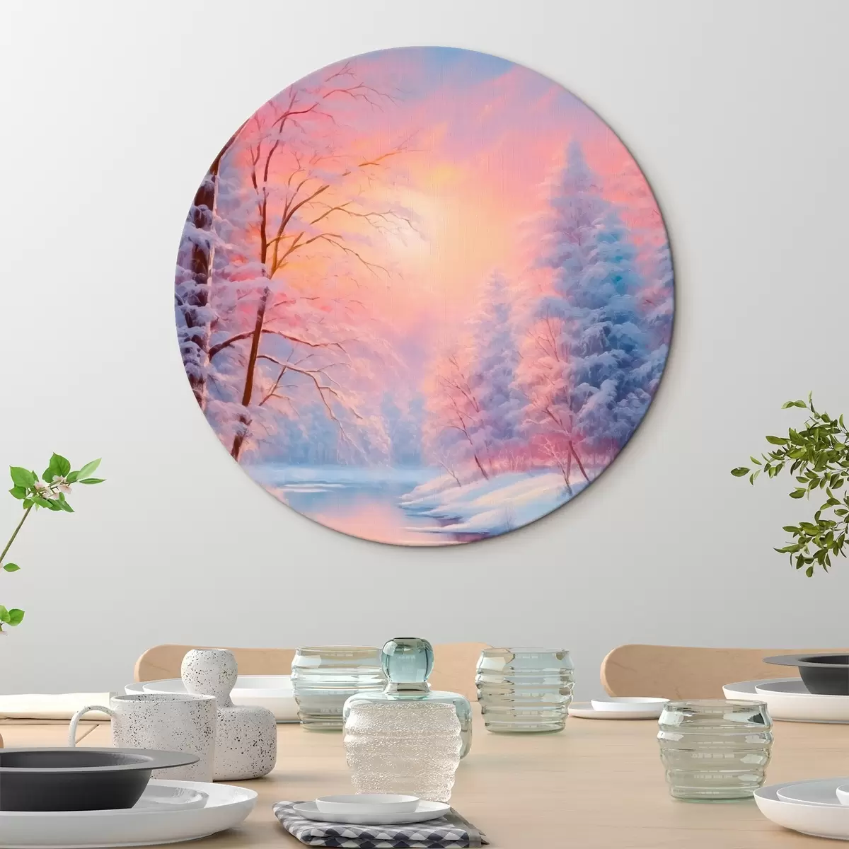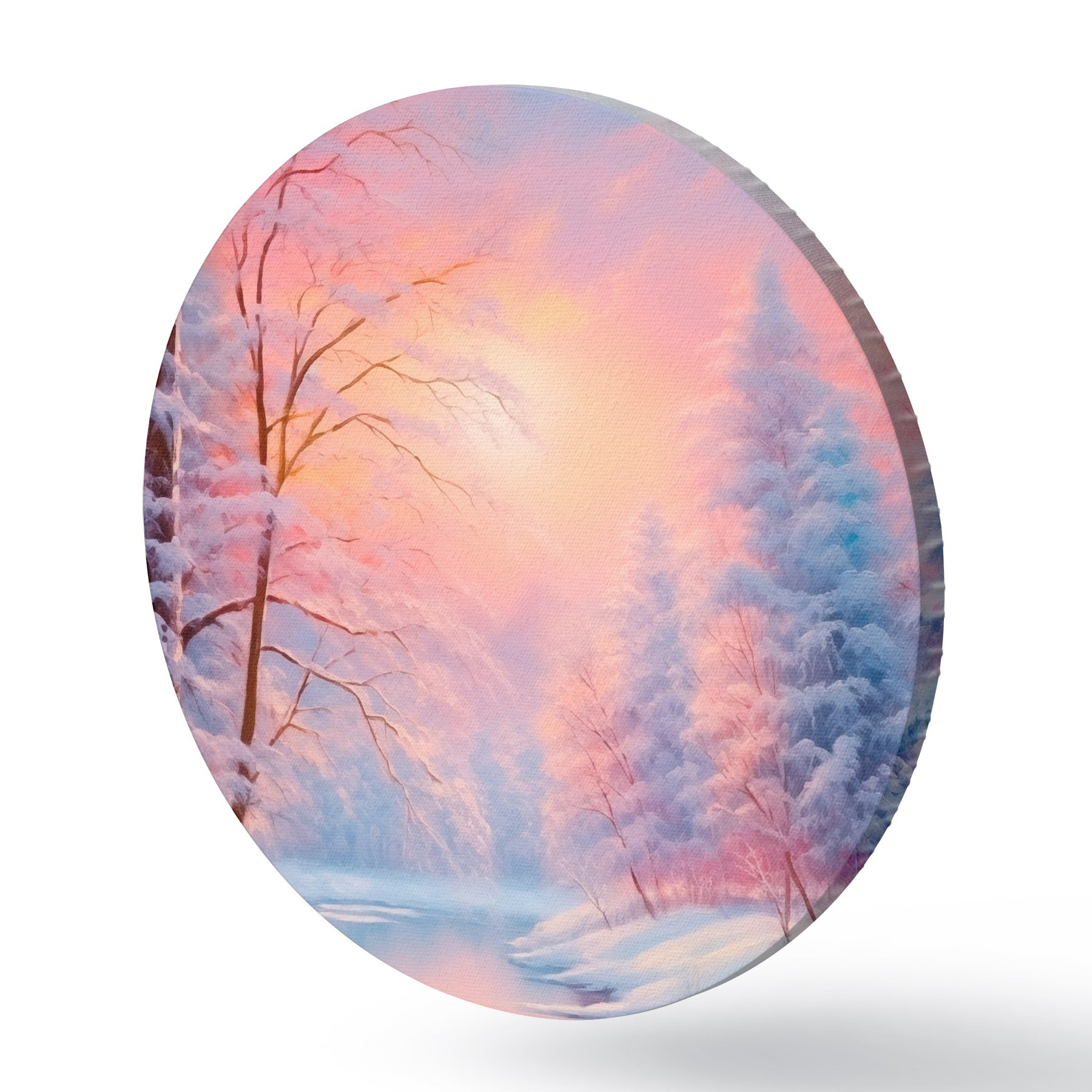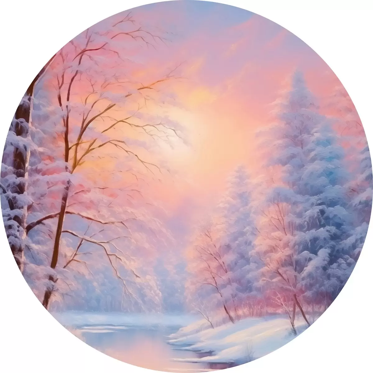 Runde Gemälde Wintermärchen am Fluss r42149
