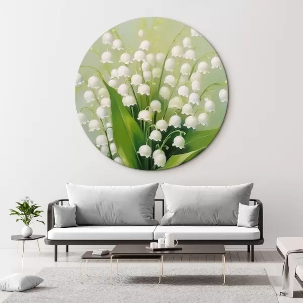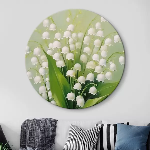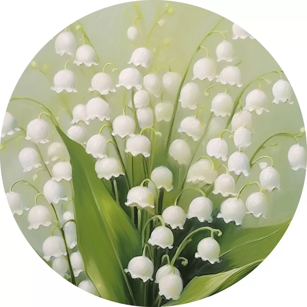 Runde Gemälde Maiglöckchen auf zartgrünem Hintergrund r42160