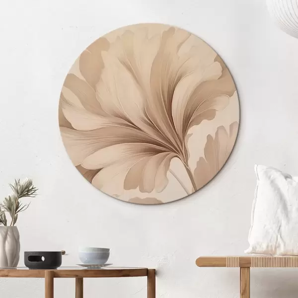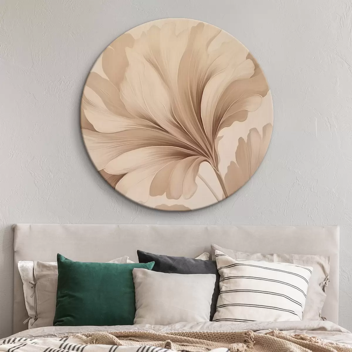 Runde Gemälde Beige Blätter mit sanften Kurven r42161