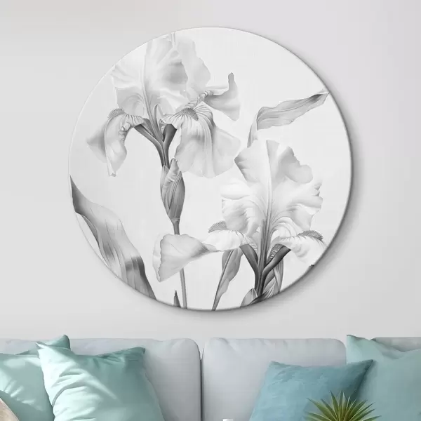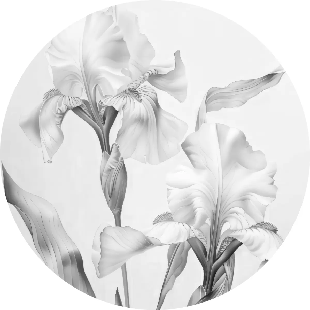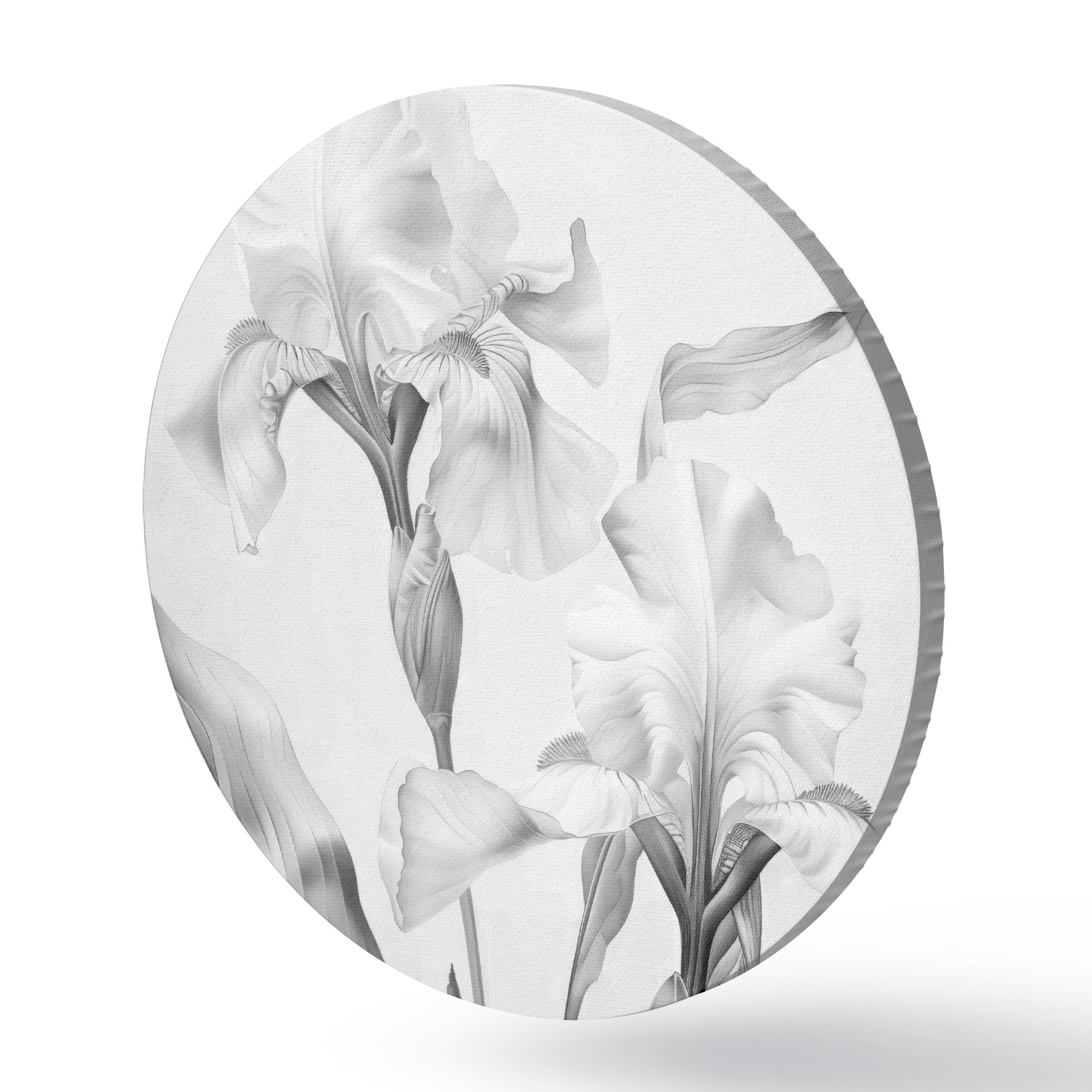 Runde Gemälde Elegante Schwertlilien in Schwarz und Weiß r42171