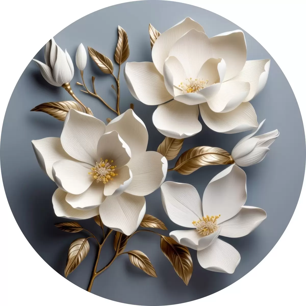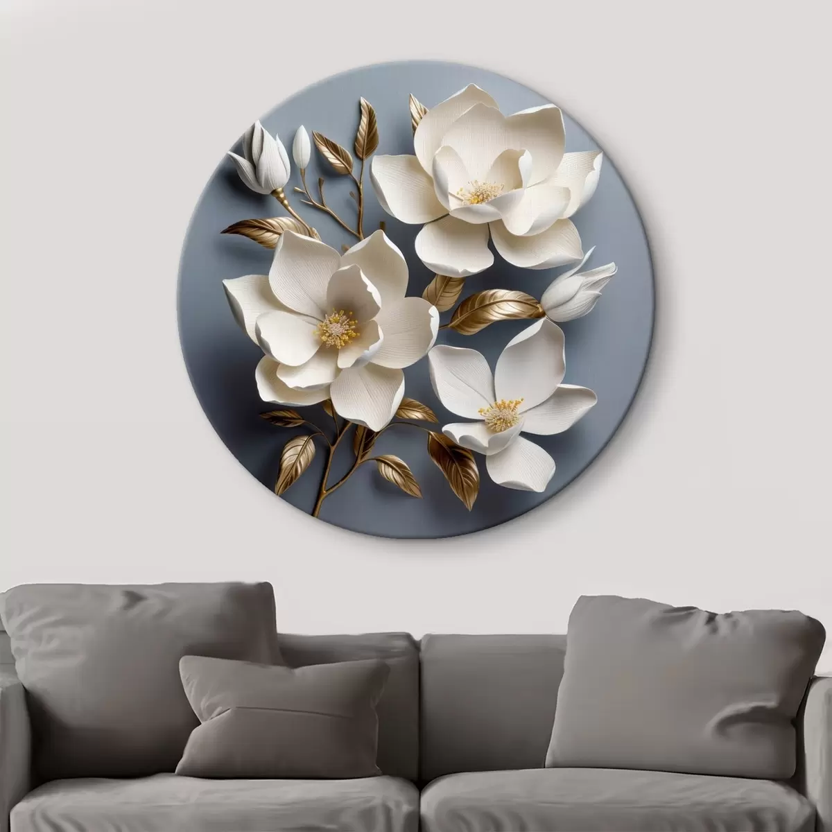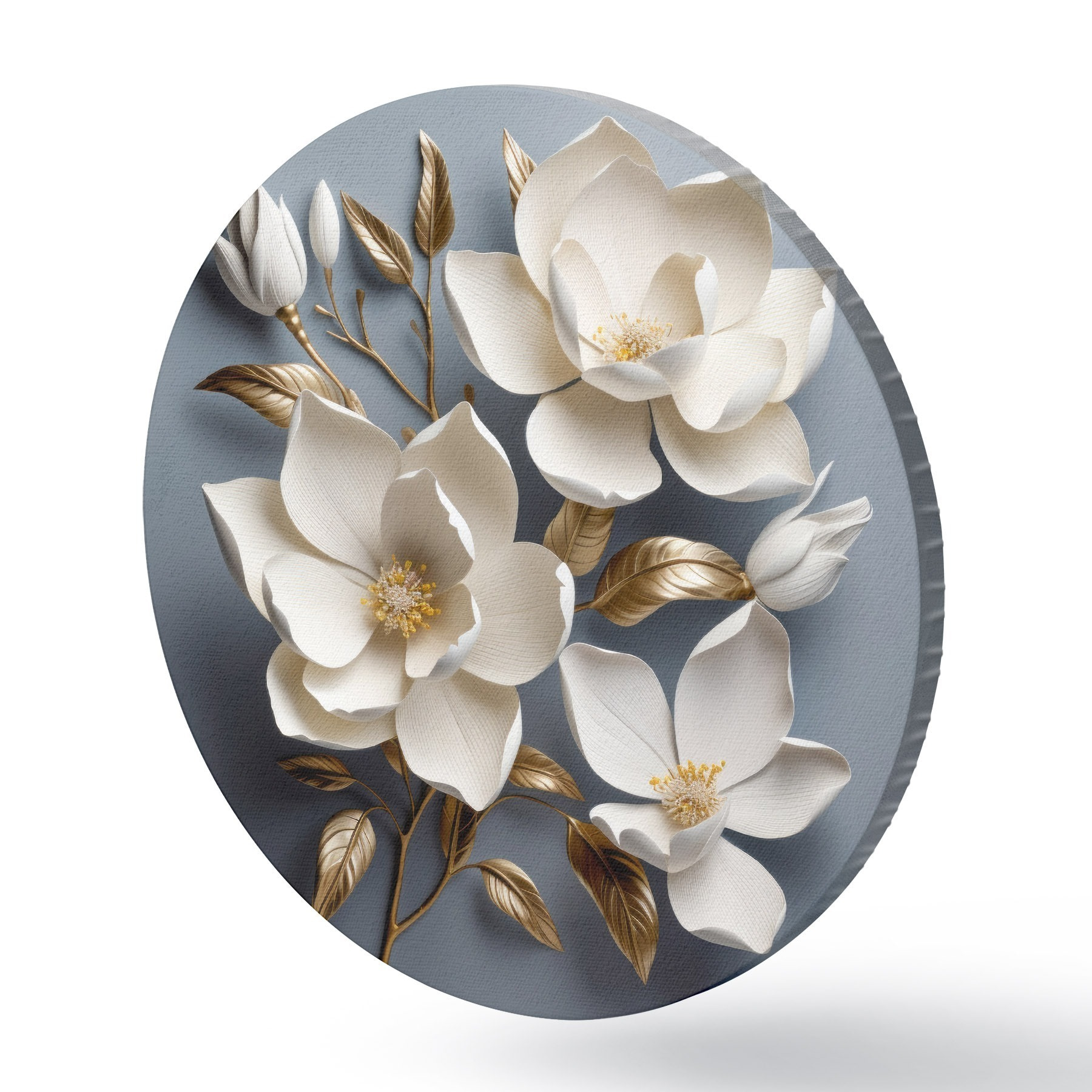 Runde Gemälde Große Blumen auf hellgrauem Hintergrund r42174