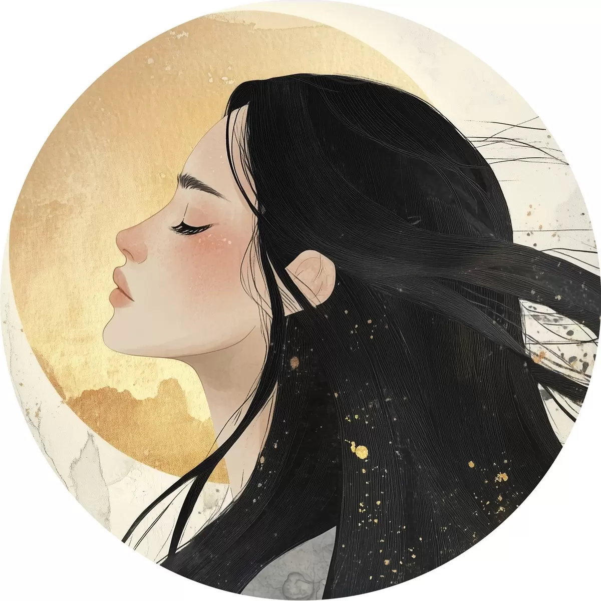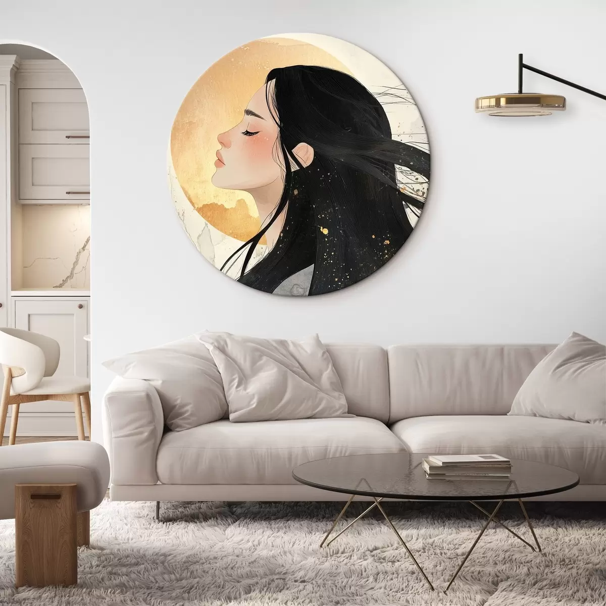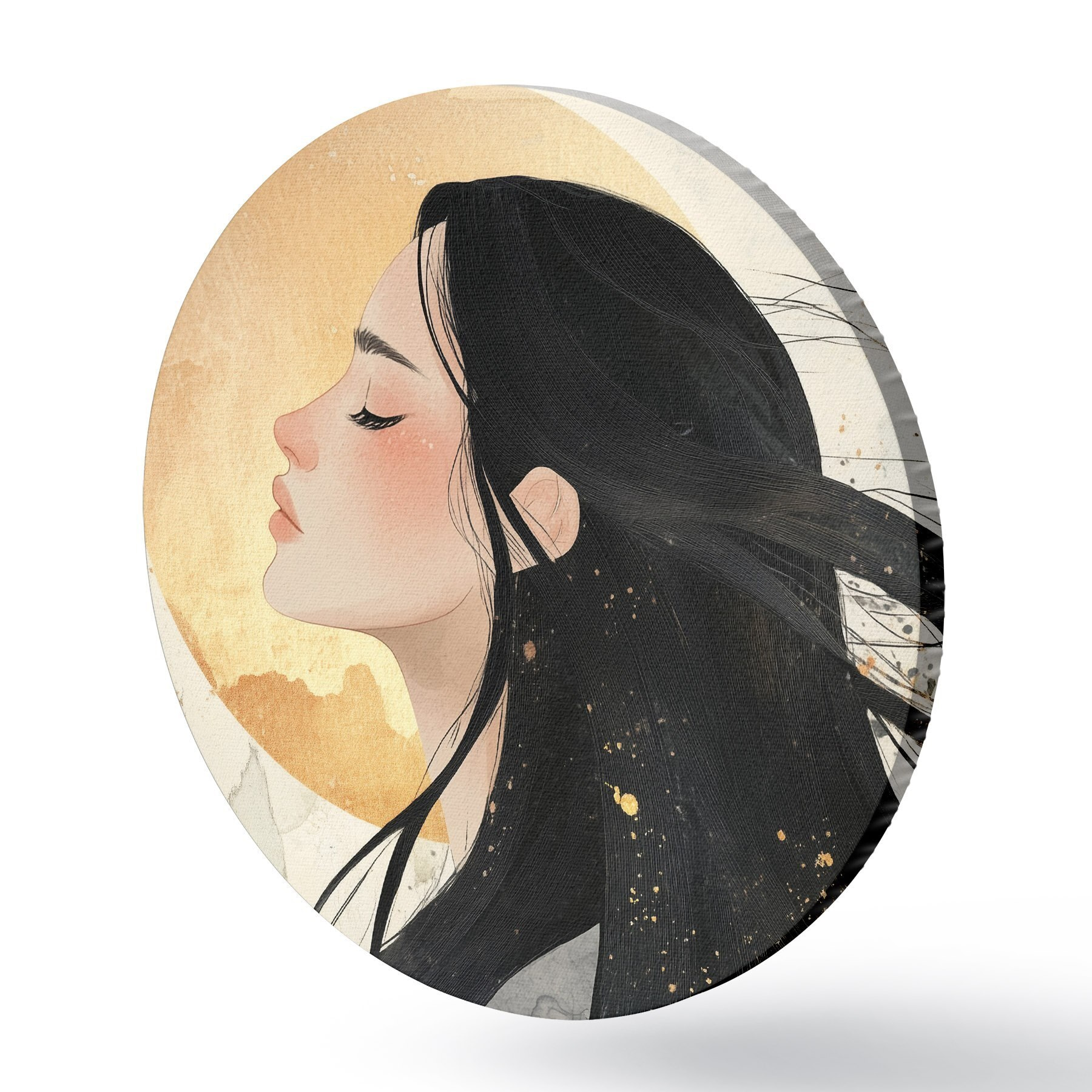 Runde Gemälde Schönes Mädchen mit dunklem Haar, orientalischer Stil, Sonne r42194