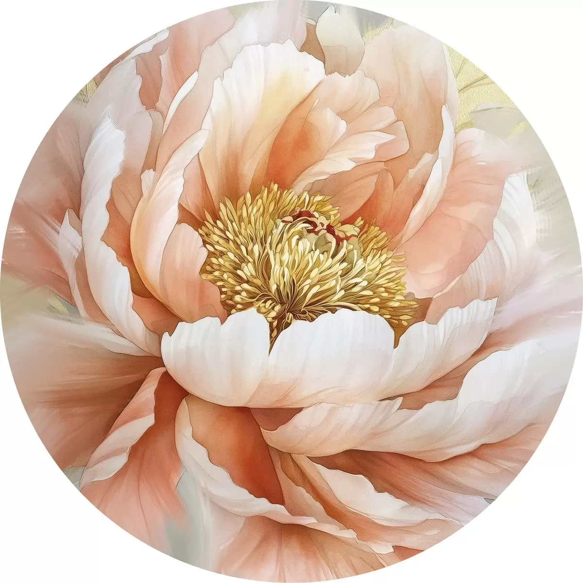 Runde Gemälde Acryl-Stil Pfingstrose Blume, rosa Farben, Pinselstriche r42199
