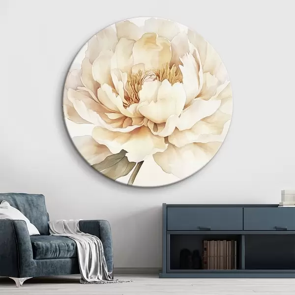 Runde Gemälde Schöne Pfingstrose Blume, weichen cremigen Farben, Aquarell-Stil r42201