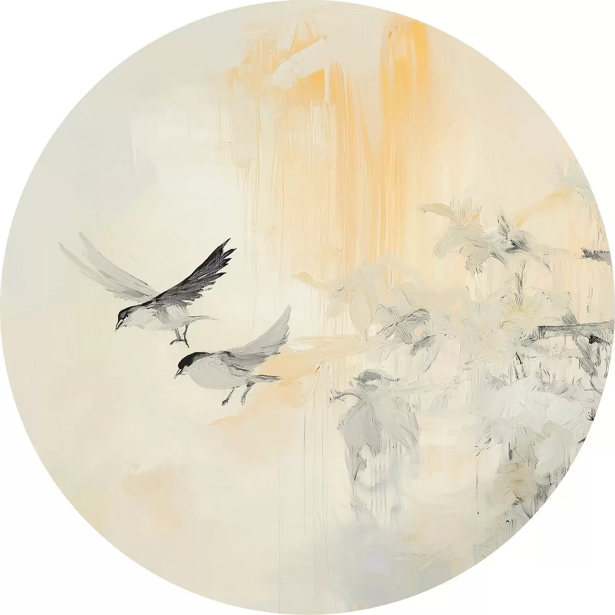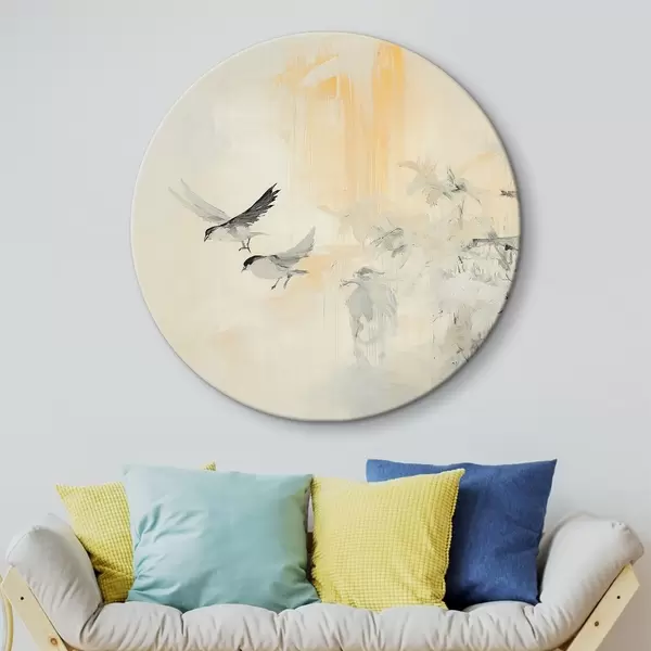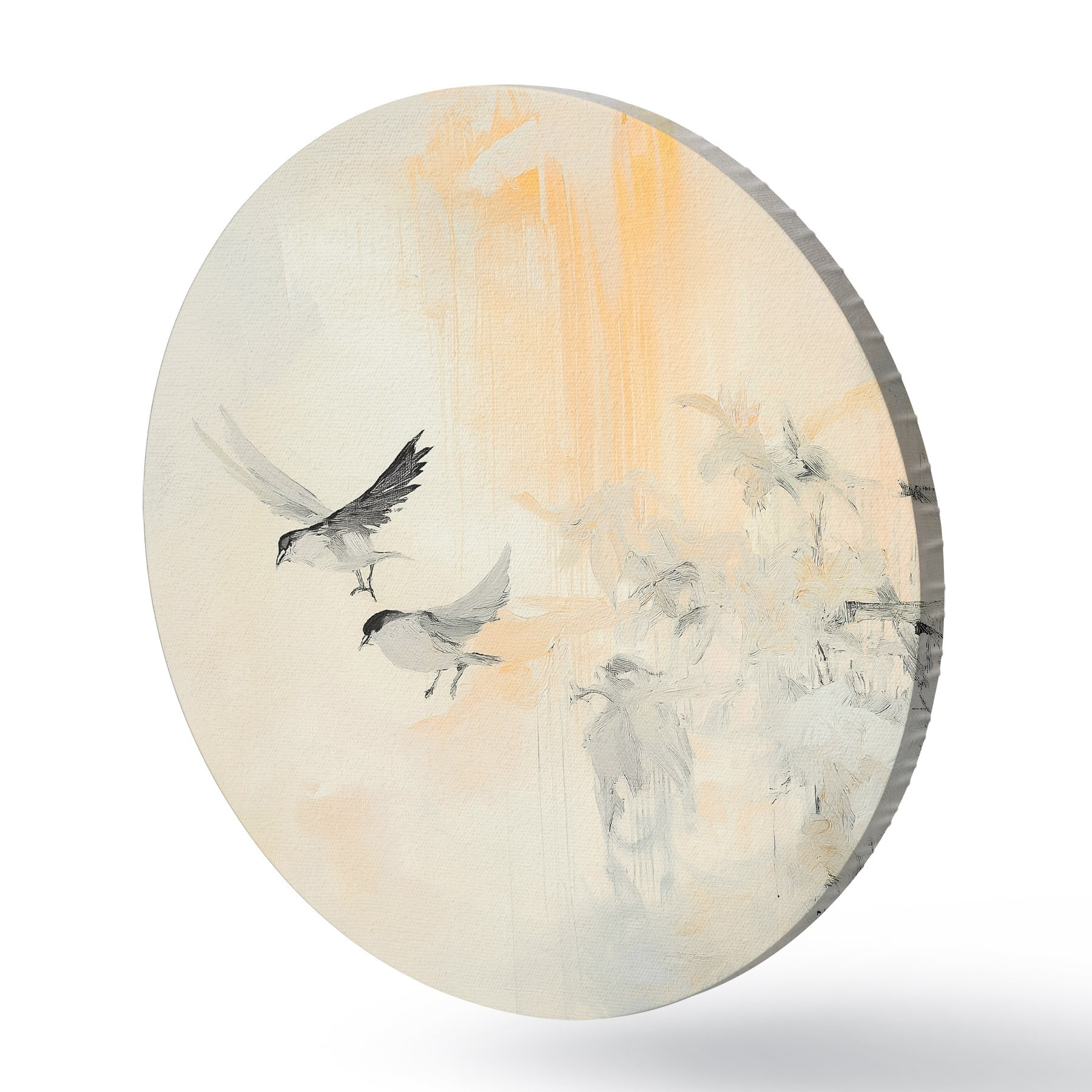 Runde Gemälde Abstraktion mit Vögeln, Acrylstil, graue und beige Farben r42206