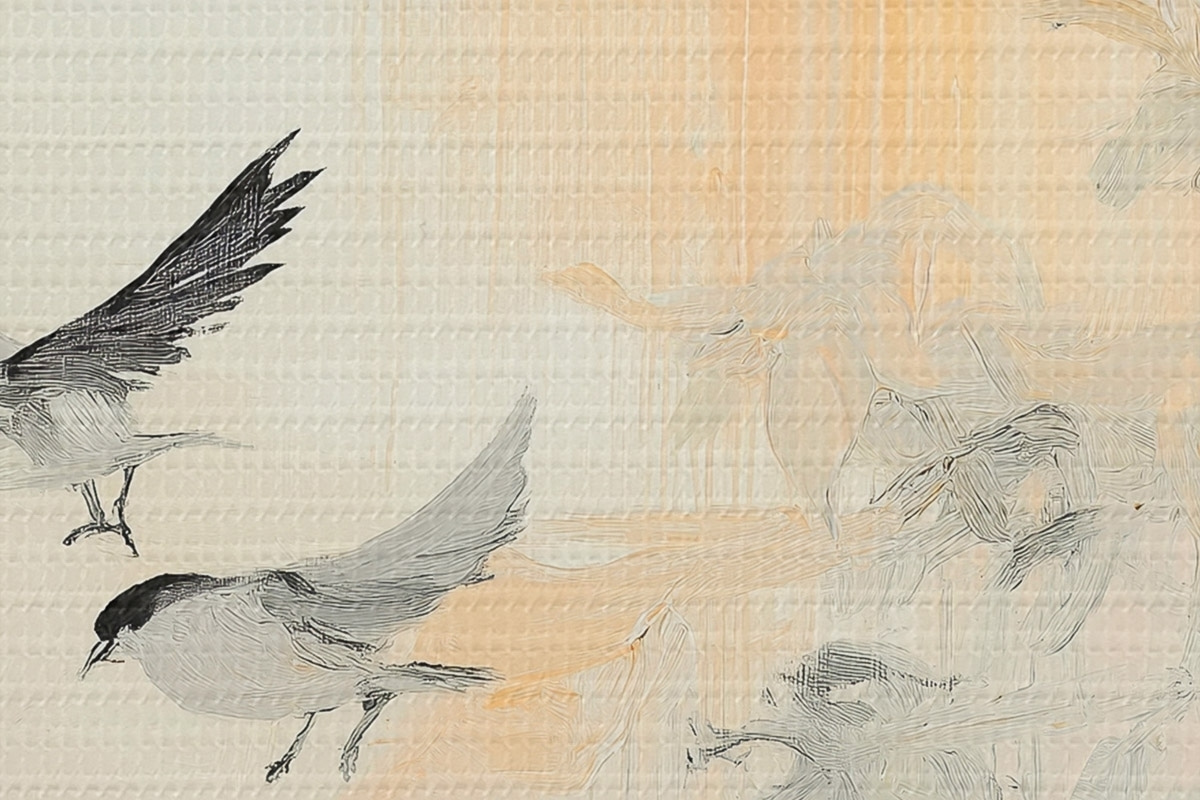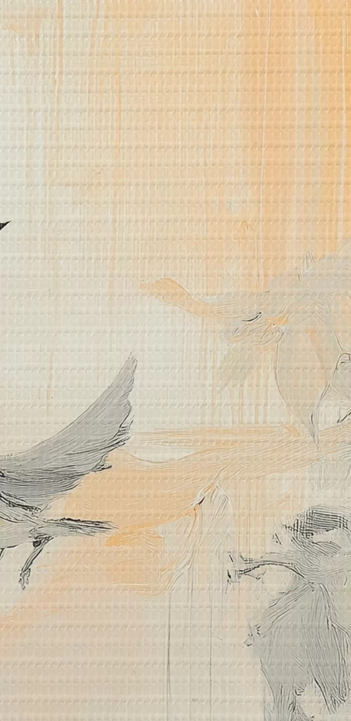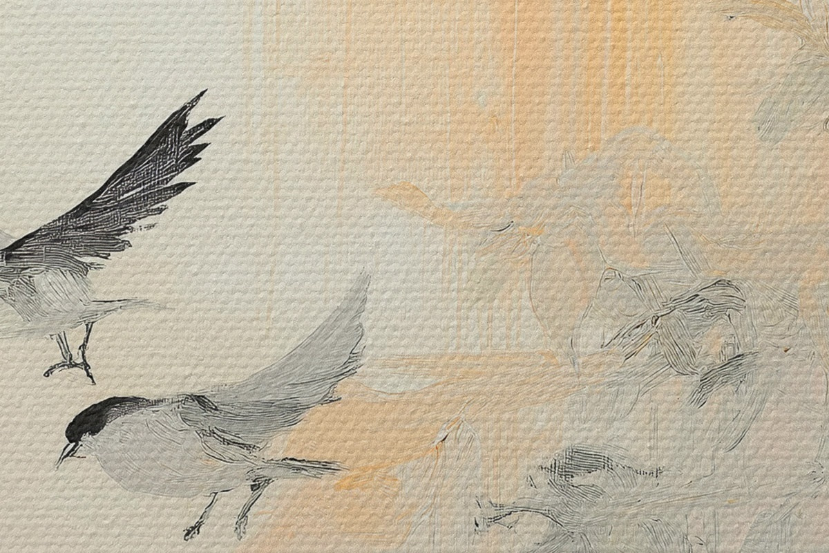 Bild Abstraktion mit Vögeln, Acrylstil, graue und beige Farben Nr r42206