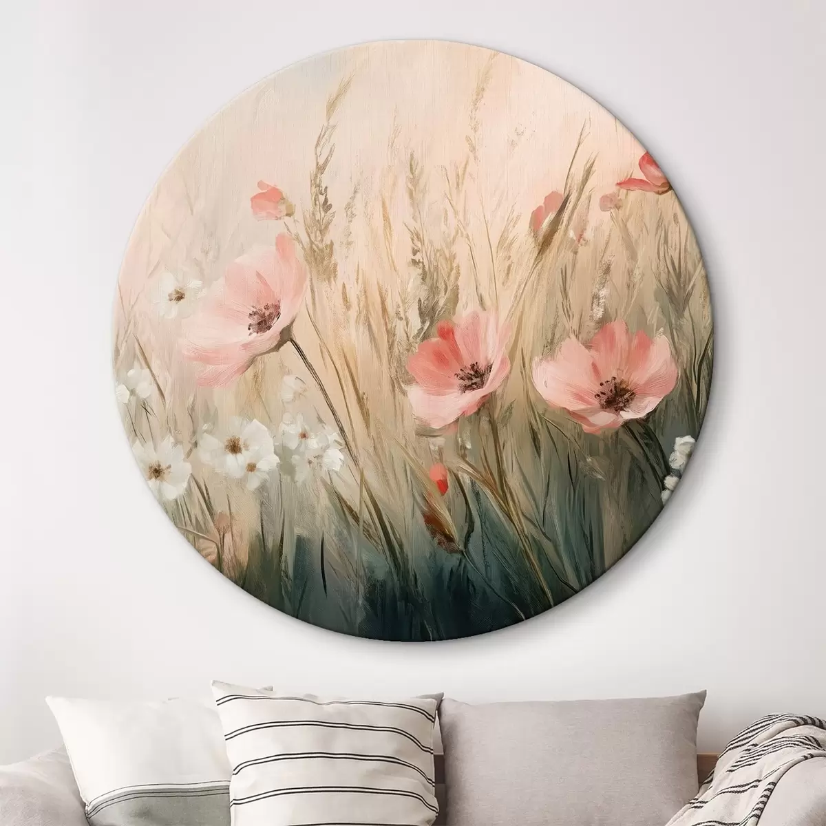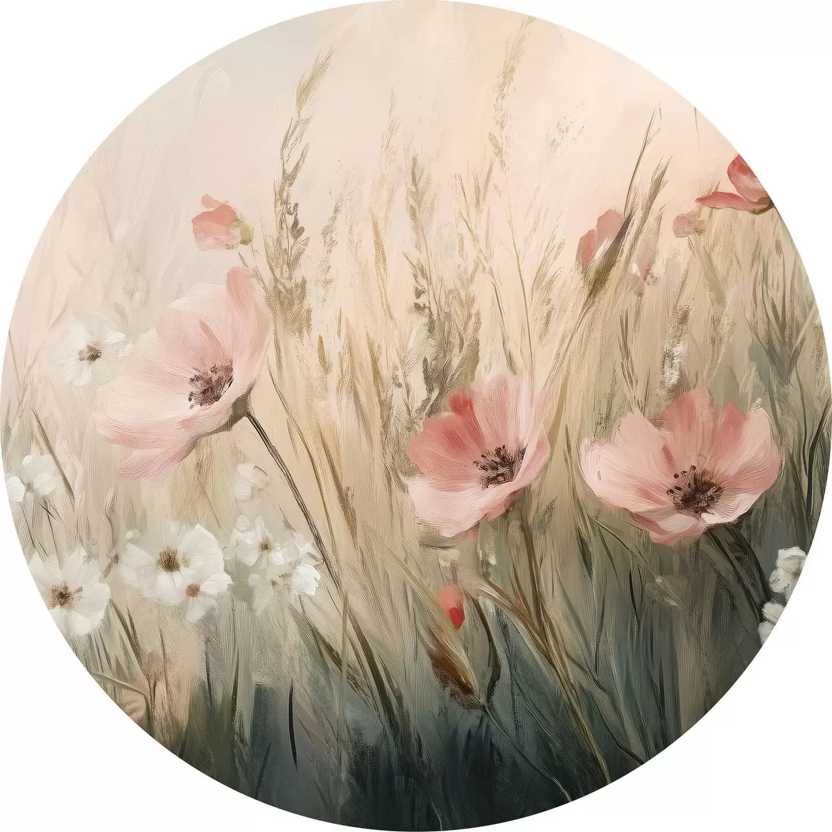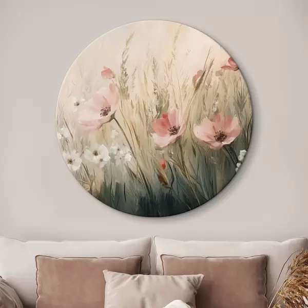Runde Gemälde Blumen auf der Wiese, rustikal, Acryl-Stil r42209