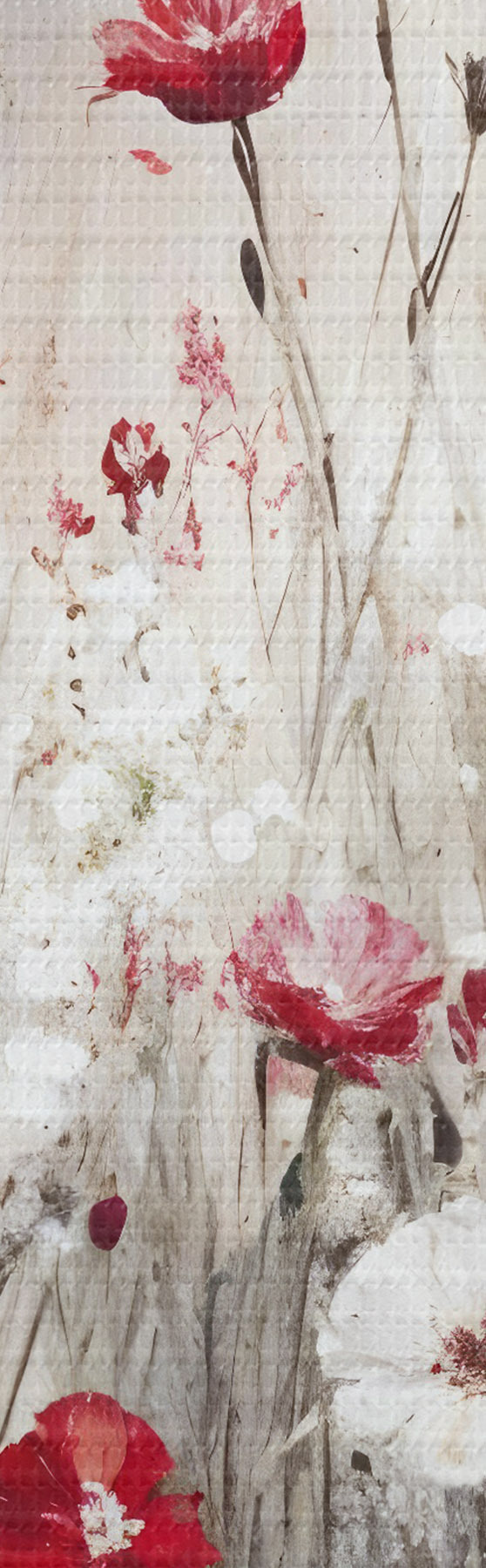 Bild Abstrakte Nachahmung der Ölmalerei ein Feld von roten und weißen Mohnblumen und Gänseblümchen vor einem grauen strukturierten Hintergrund Nr r42213