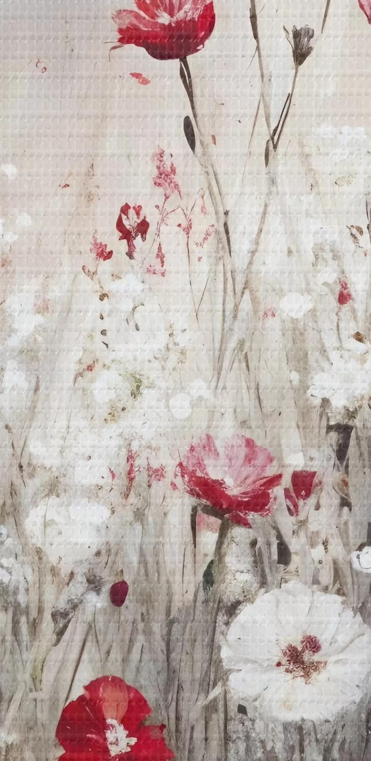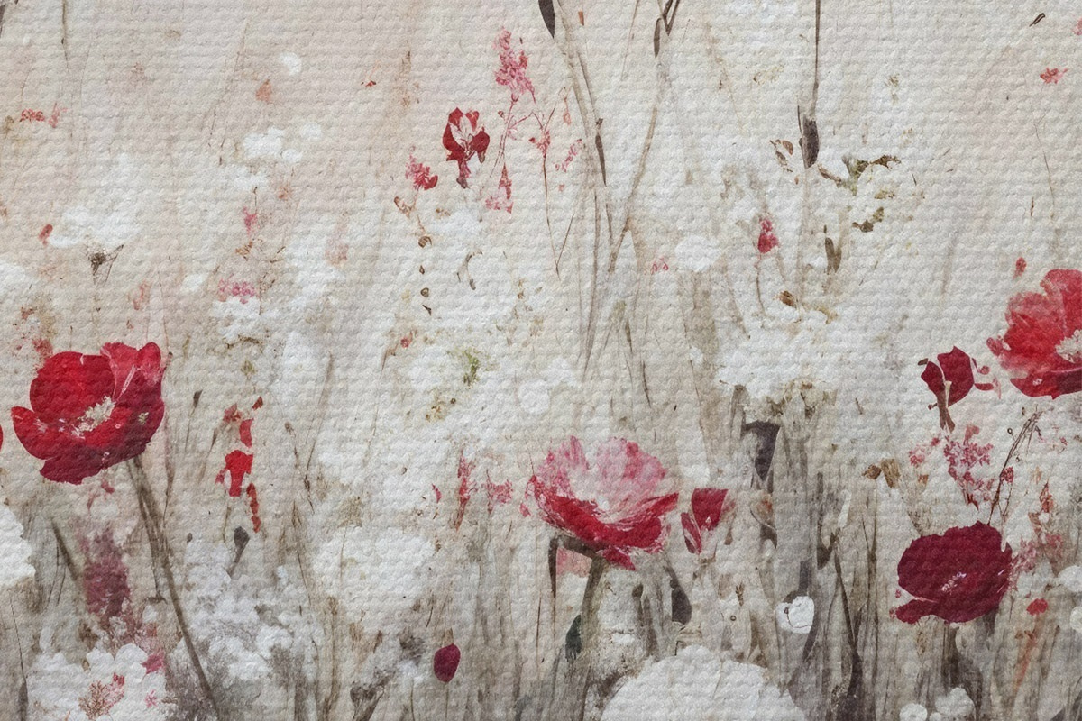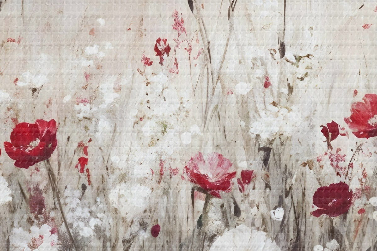 Bild Abstrakte Nachahmung der Ölmalerei ein Feld von roten und weißen Mohnblumen und Gänseblümchen vor einem grauen strukturierten Hintergrund Nr r42213